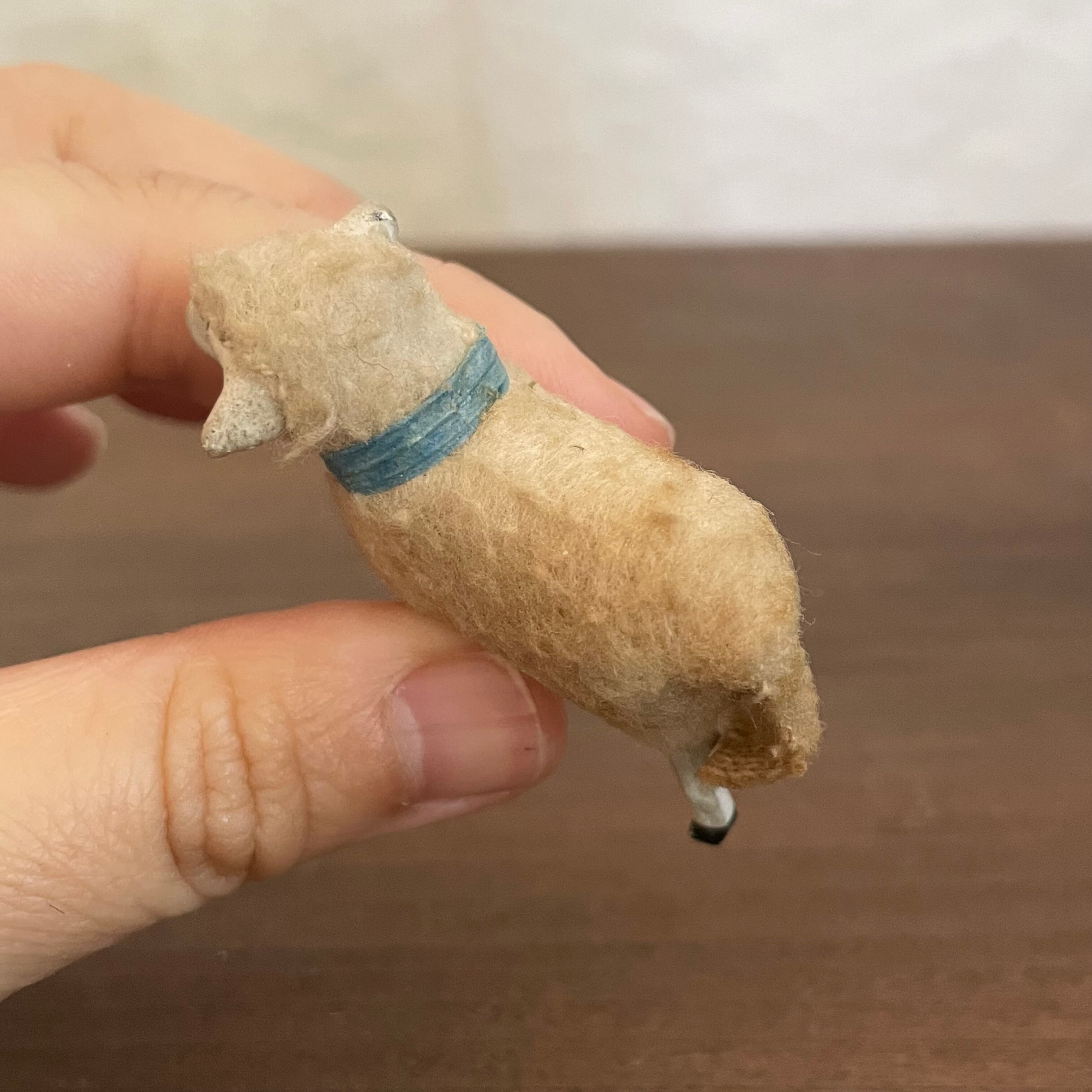 顔と体は石膏製、胴体にはウールが巻かれていて、足は木製、首のリボンは紙製です。