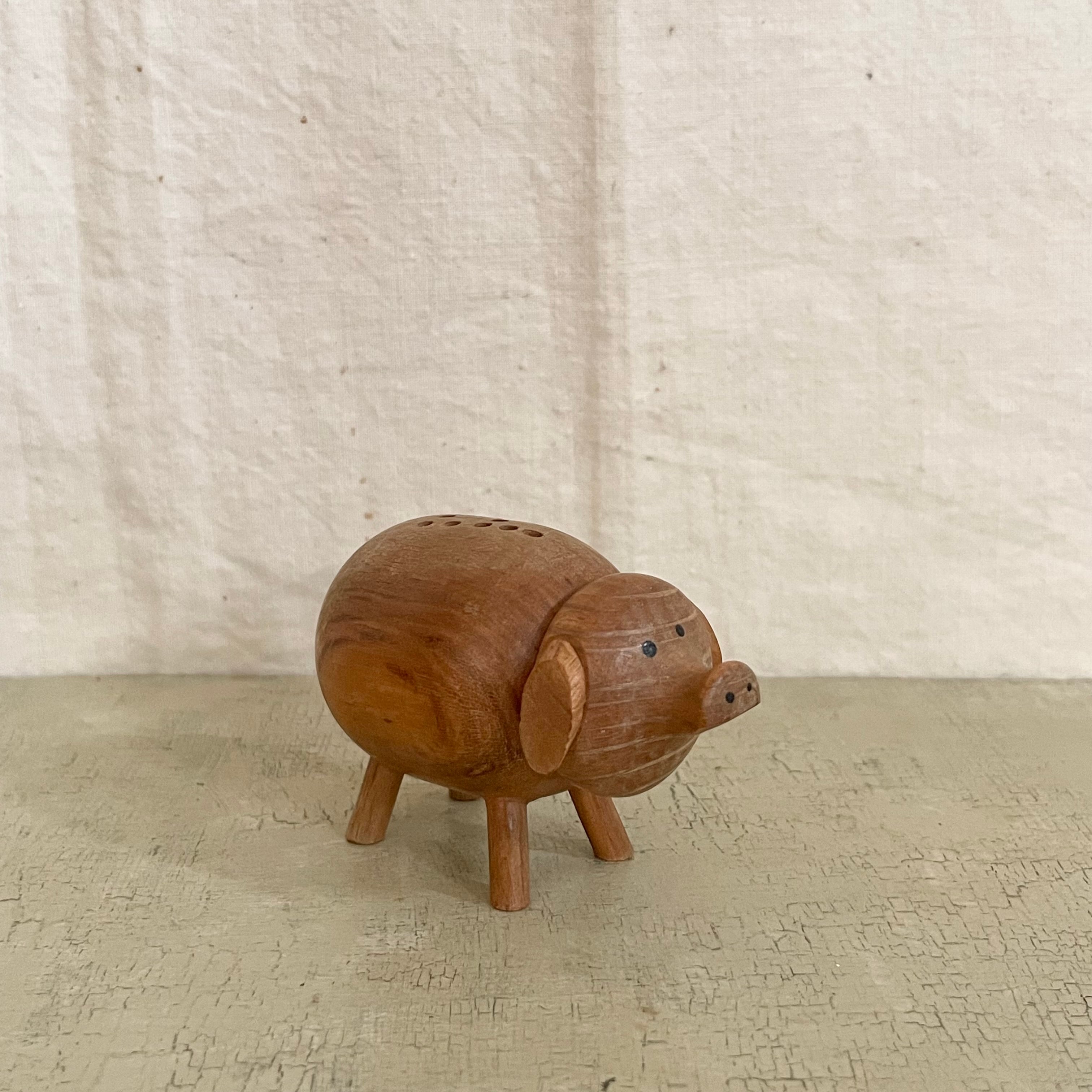 少しくすんだ木のブタさんは、背中にPと刻まれています。