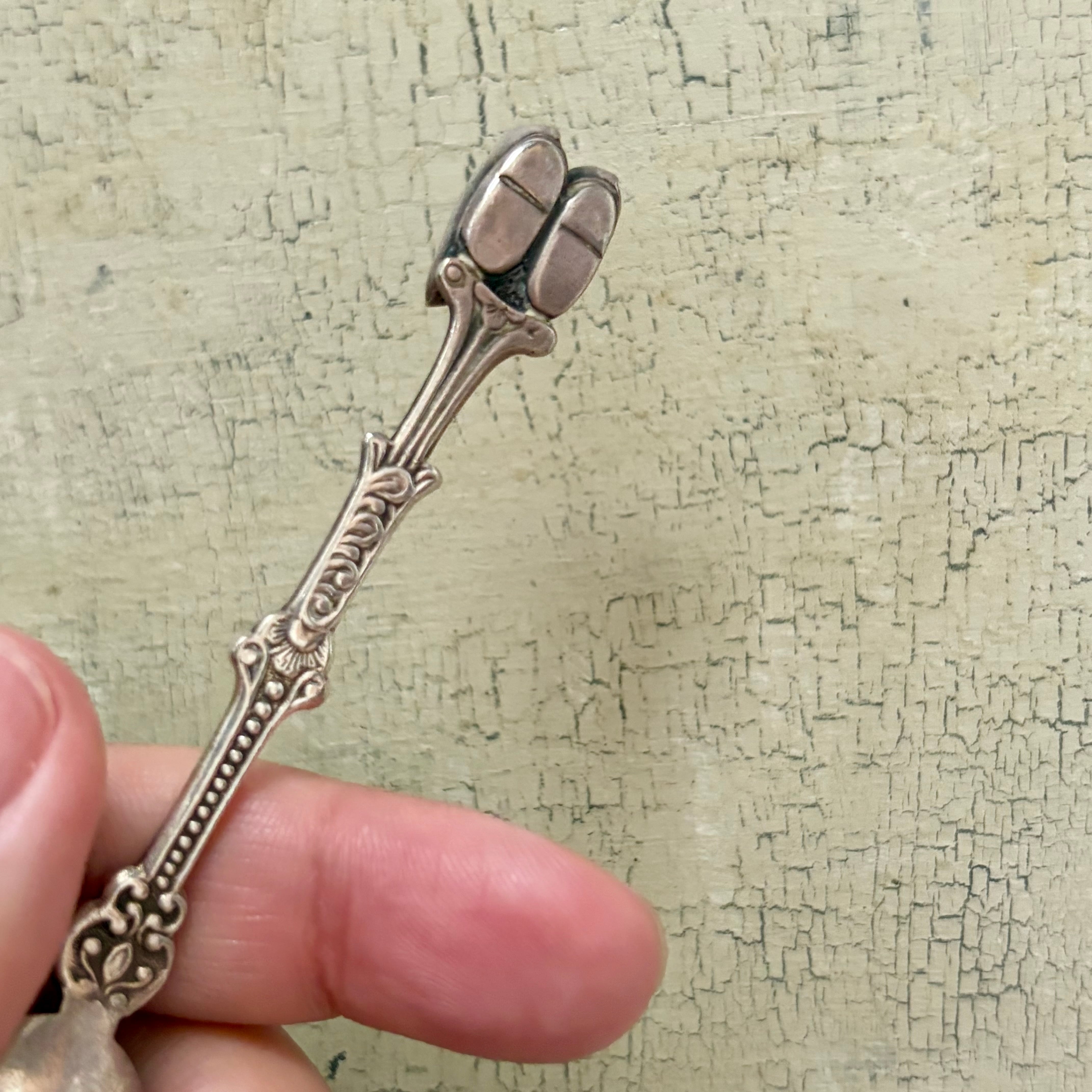 立体的な木靴モチーフと、華やかな柄の部分、すくう部分には家と木々、全体的に華やかだけどまとまりがあり、すごくステキです。