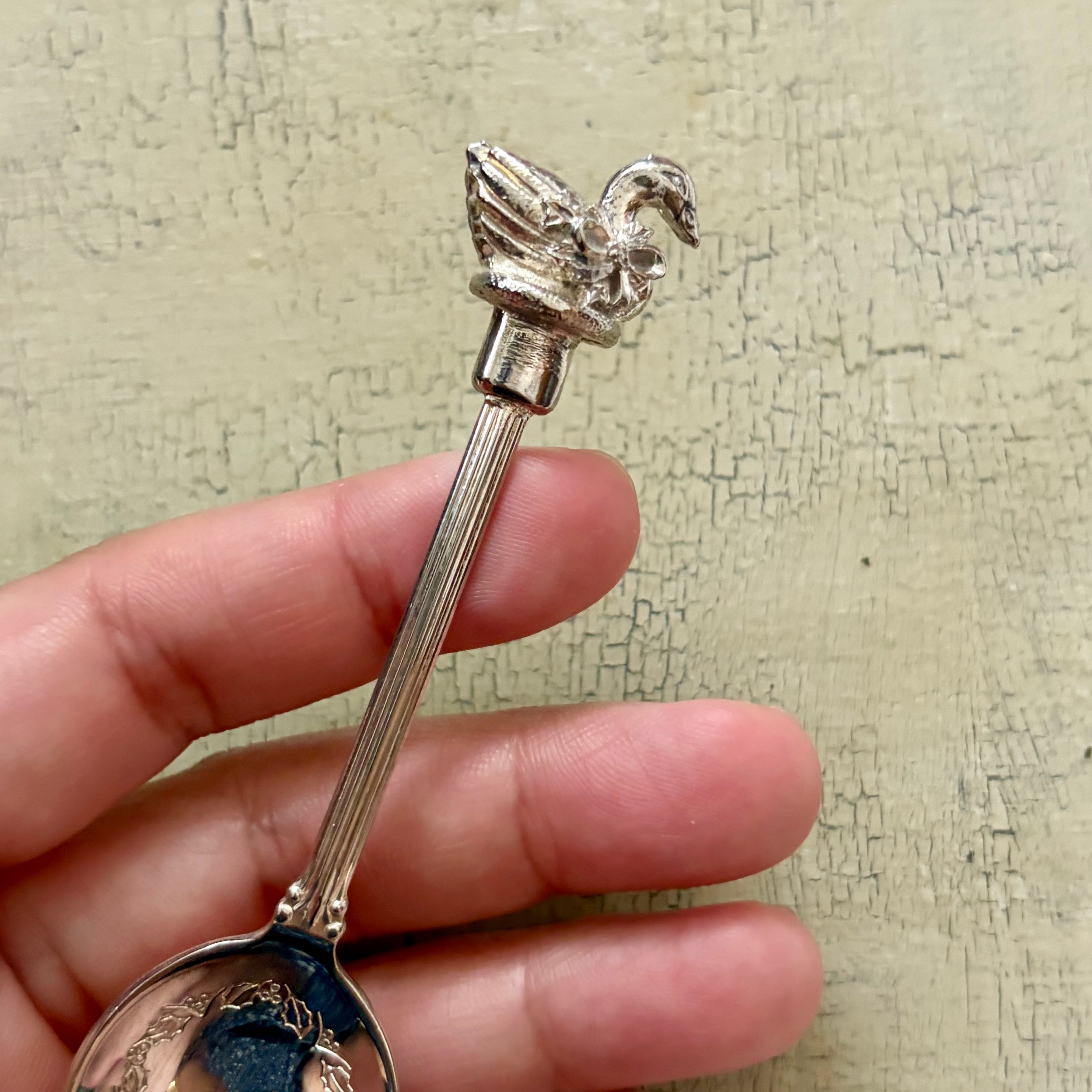 首元に可愛いリボンをつけた立体的な白鳥が表現されています。