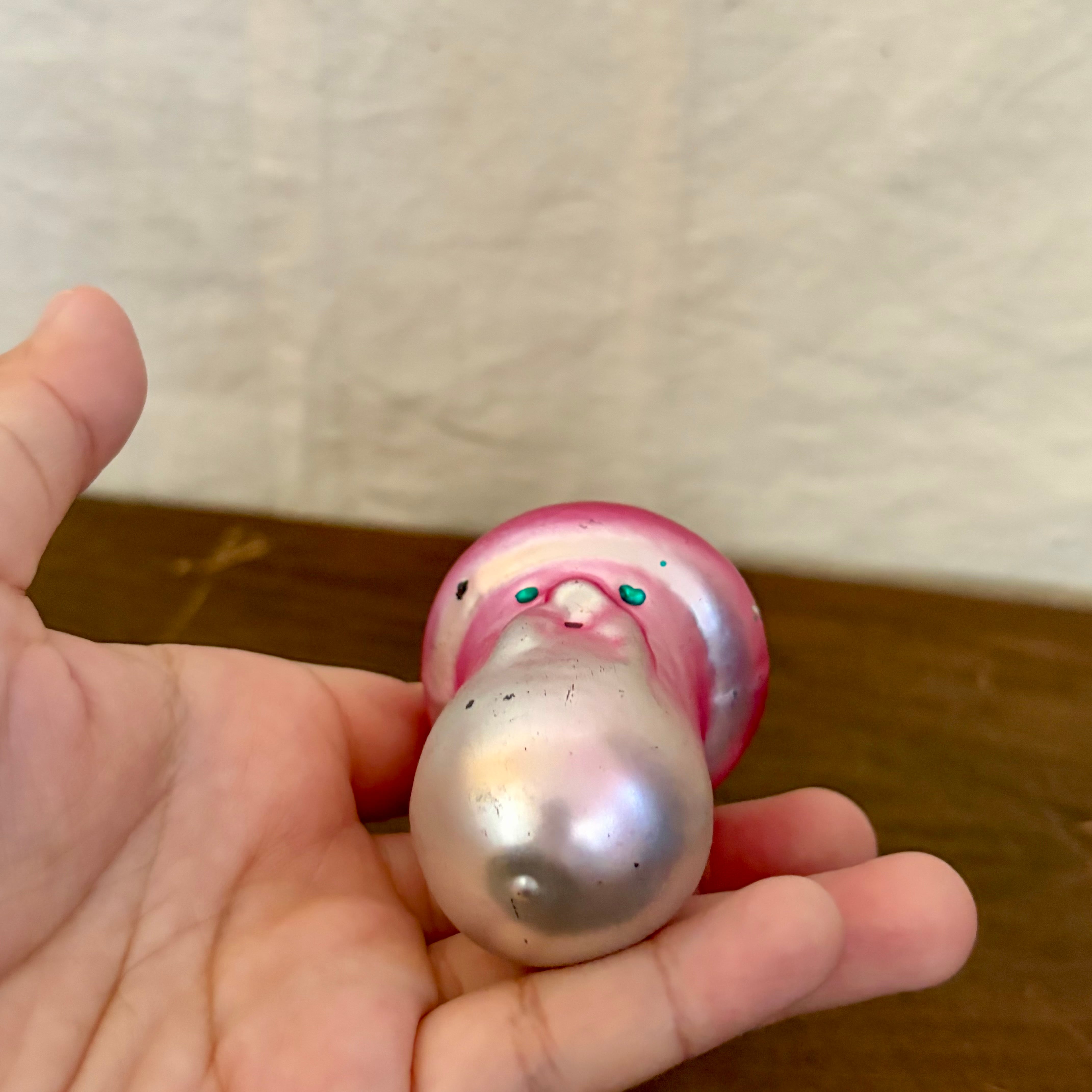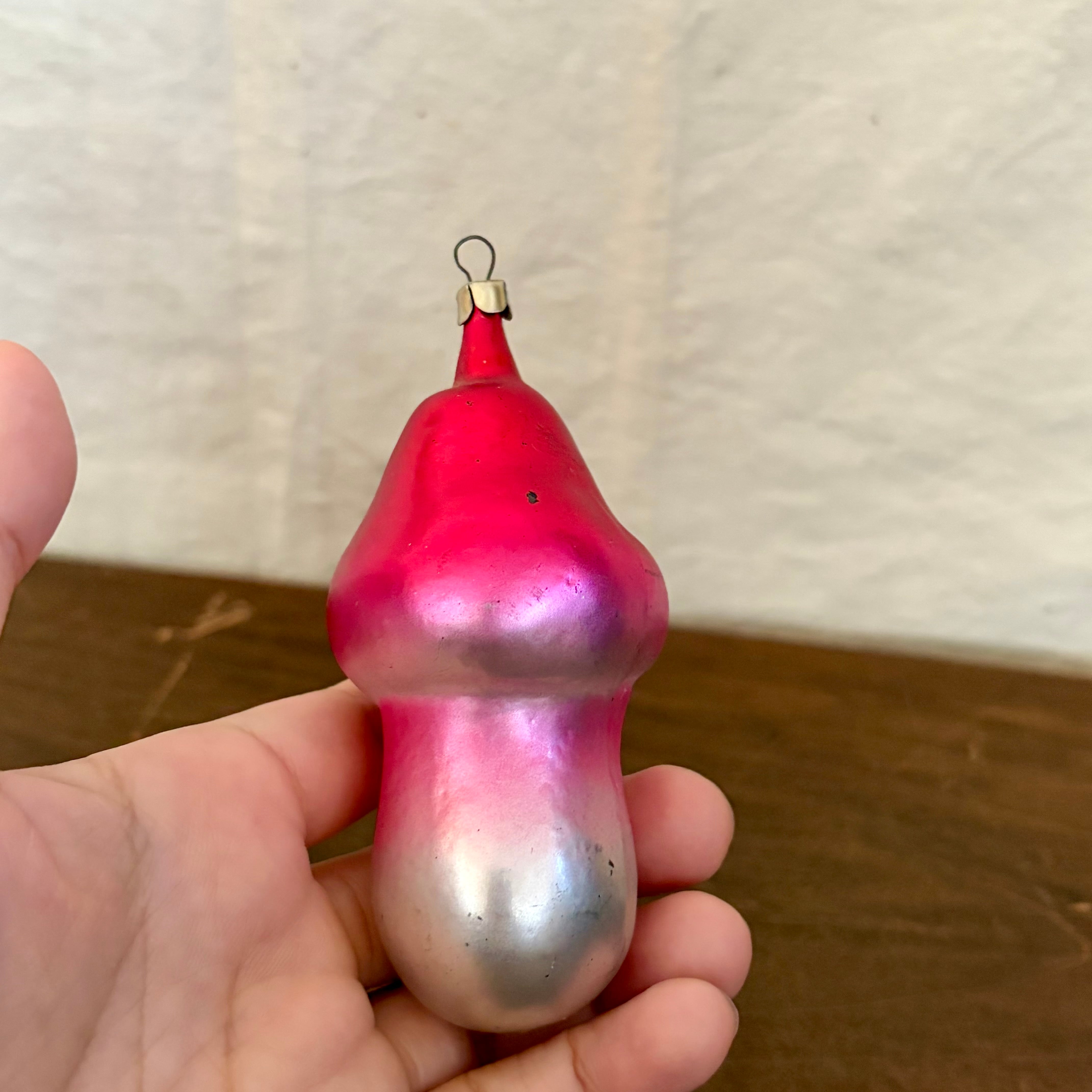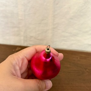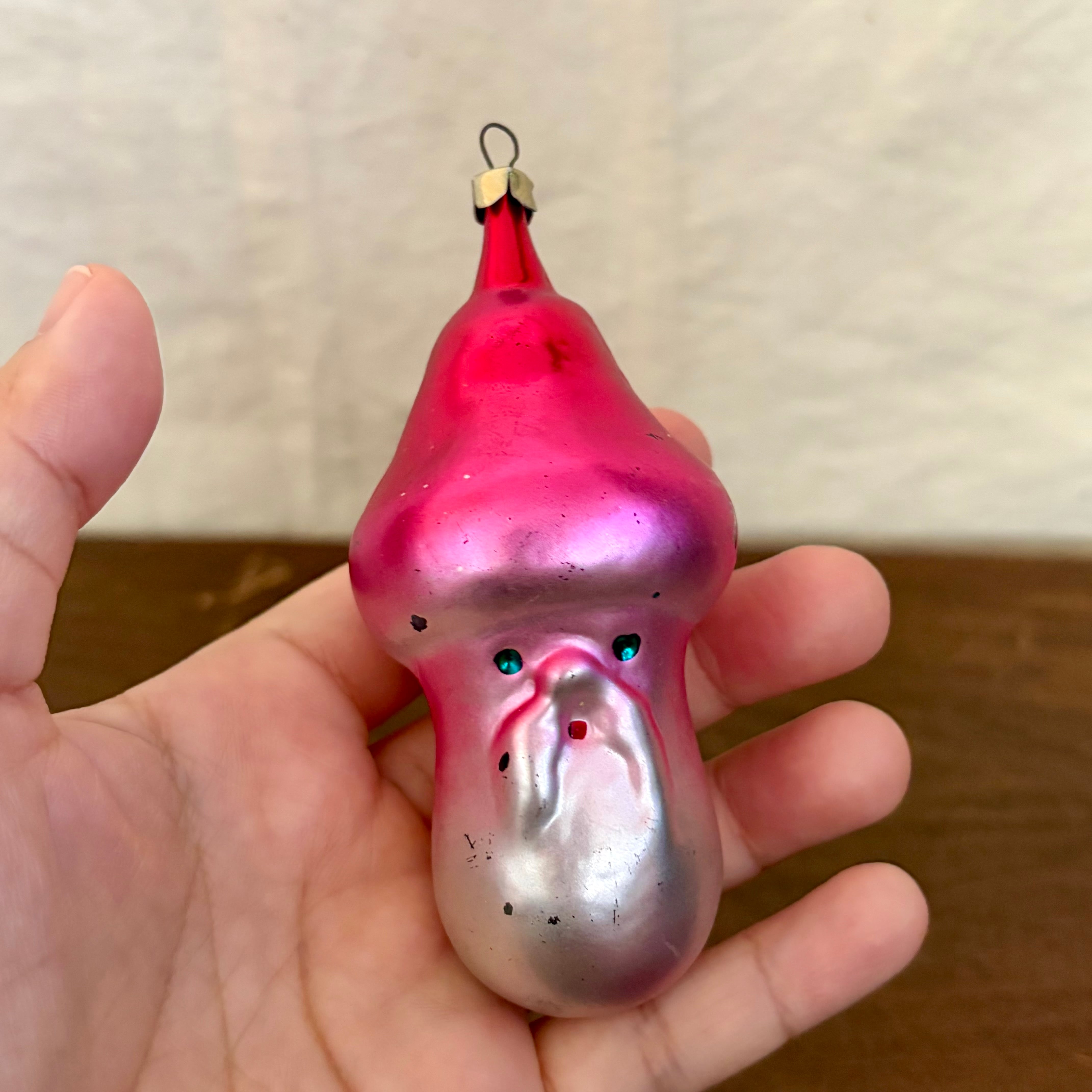 赤のグラデ―ションがきれいなオーナメントはキノコのようなサンタのような、ゆるいフォルムをしています。