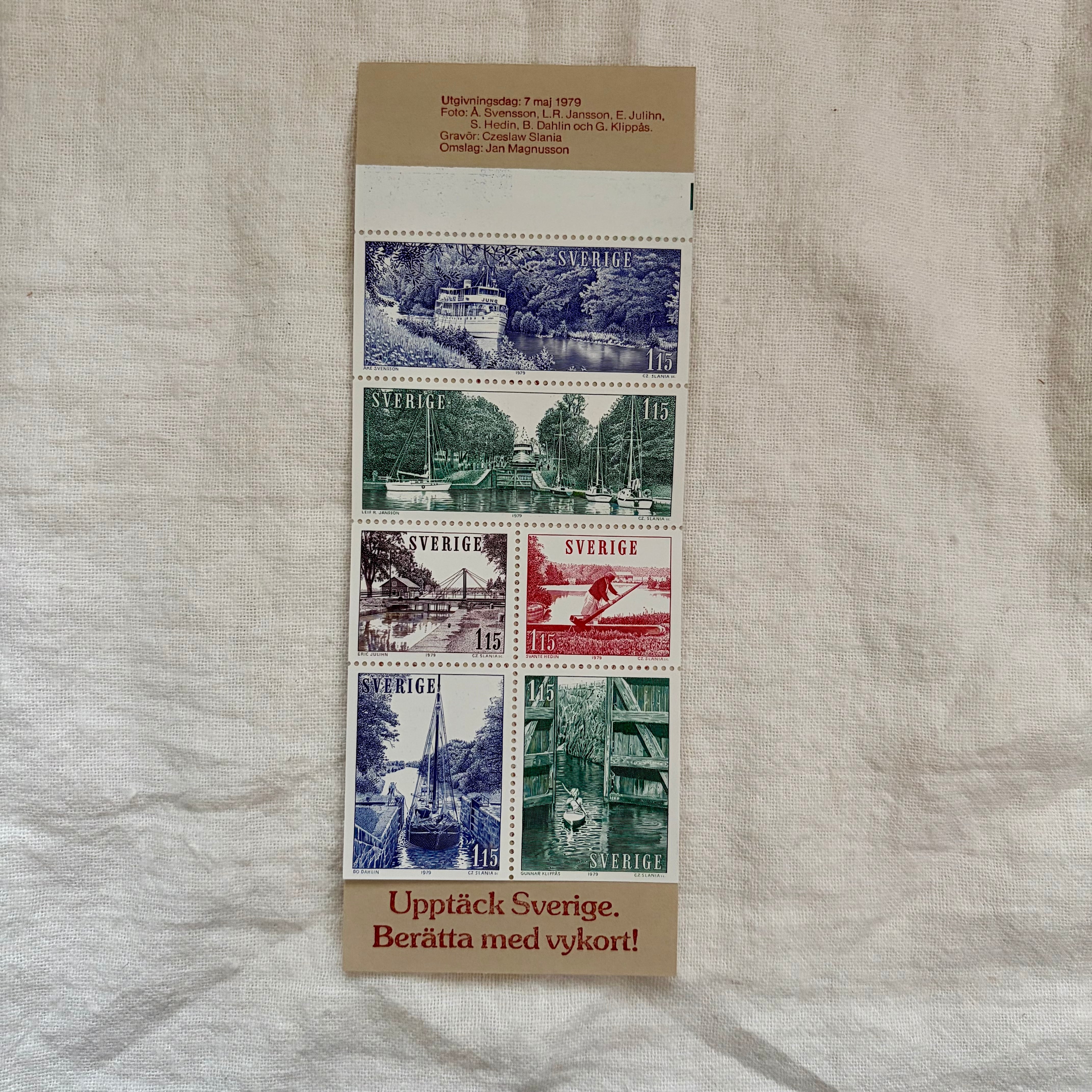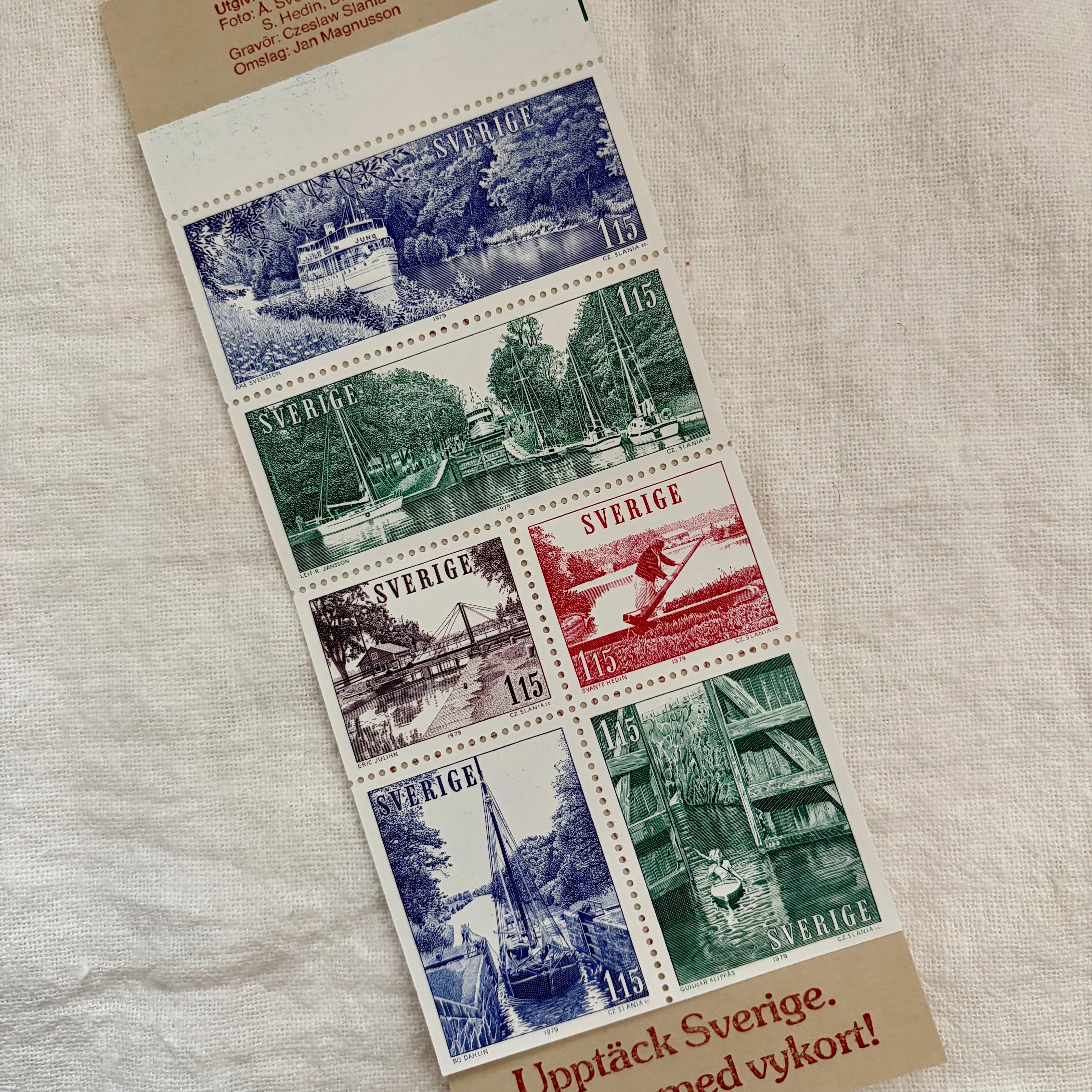 運河のある景色が単色で繊細に表現された切手が6種のシートです。