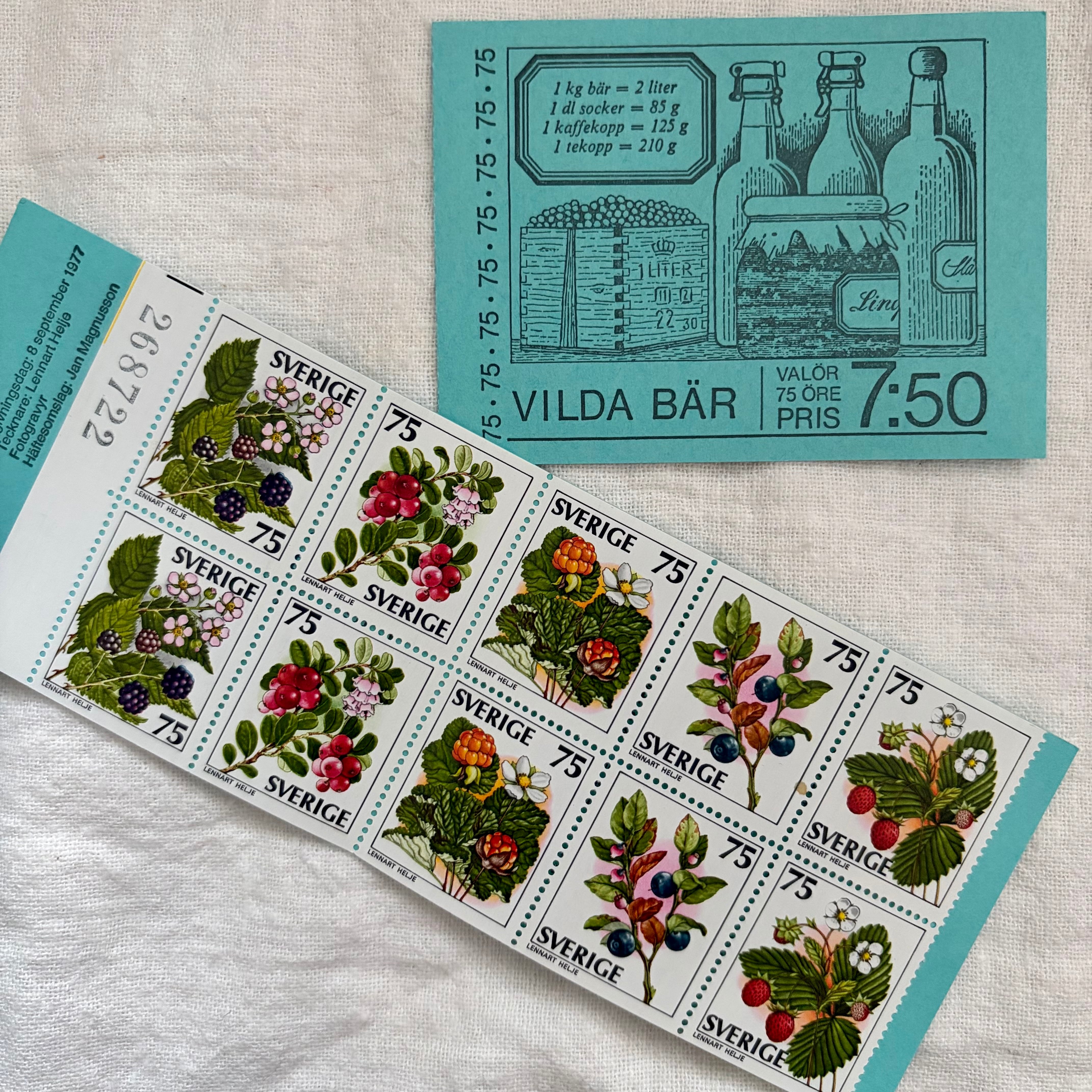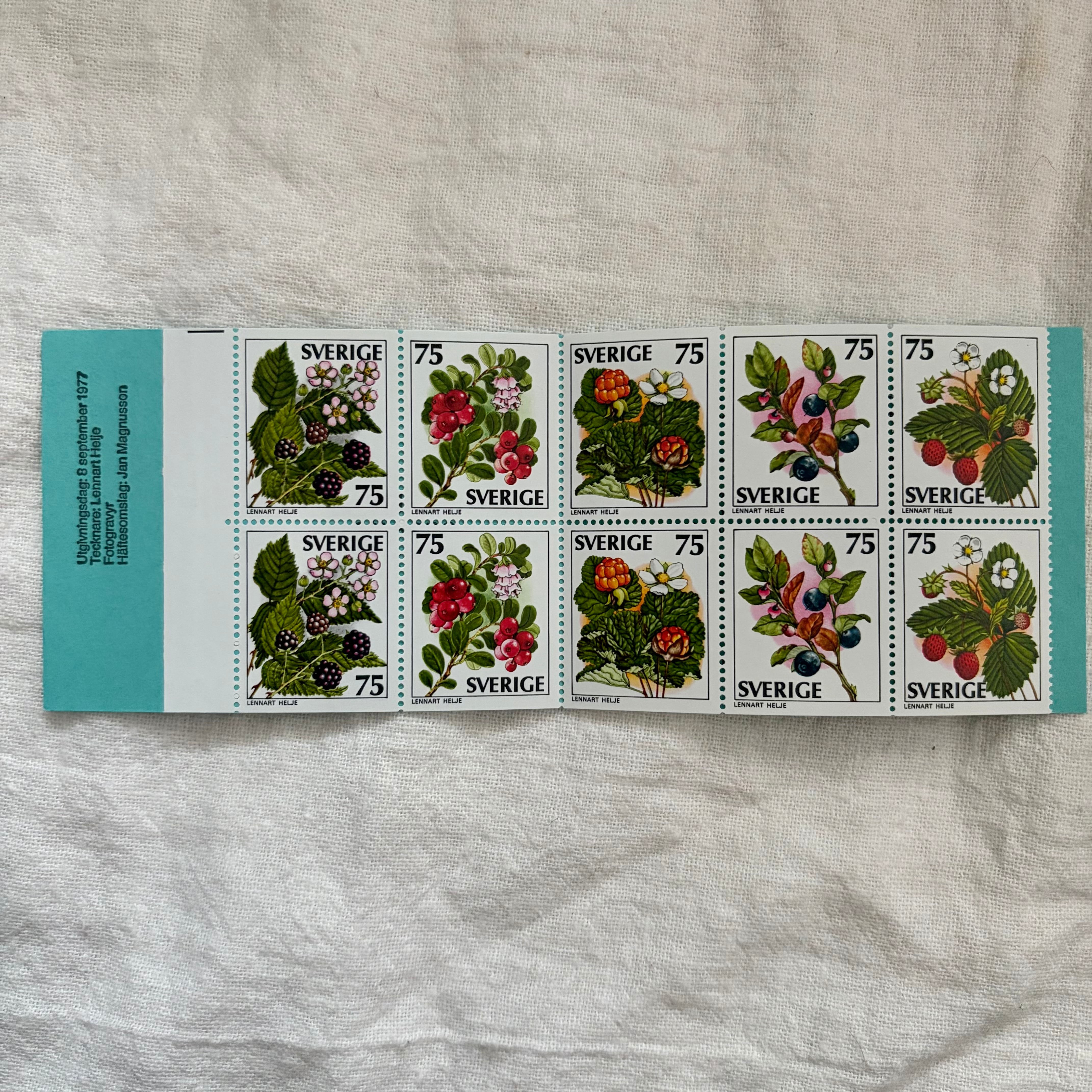 様々な種類のベリーの実や花がデザインされた切手が5種×2=10枚のシートです。