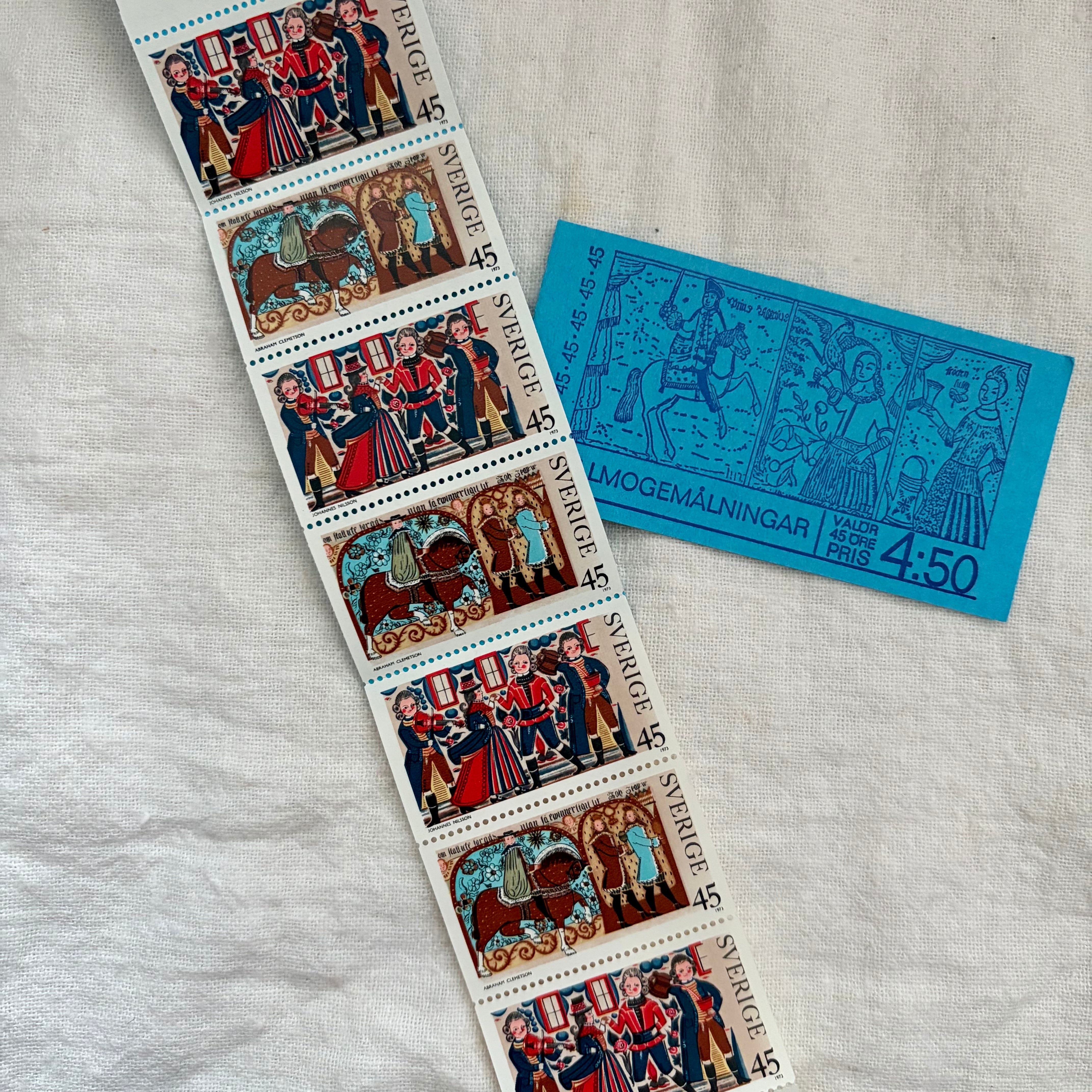 翻訳したら民族絵画と出てきたので、民族絵画と書きましたが、カラフルで可愛らしい絵が描かれた切手2種×5=10枚のシートです。