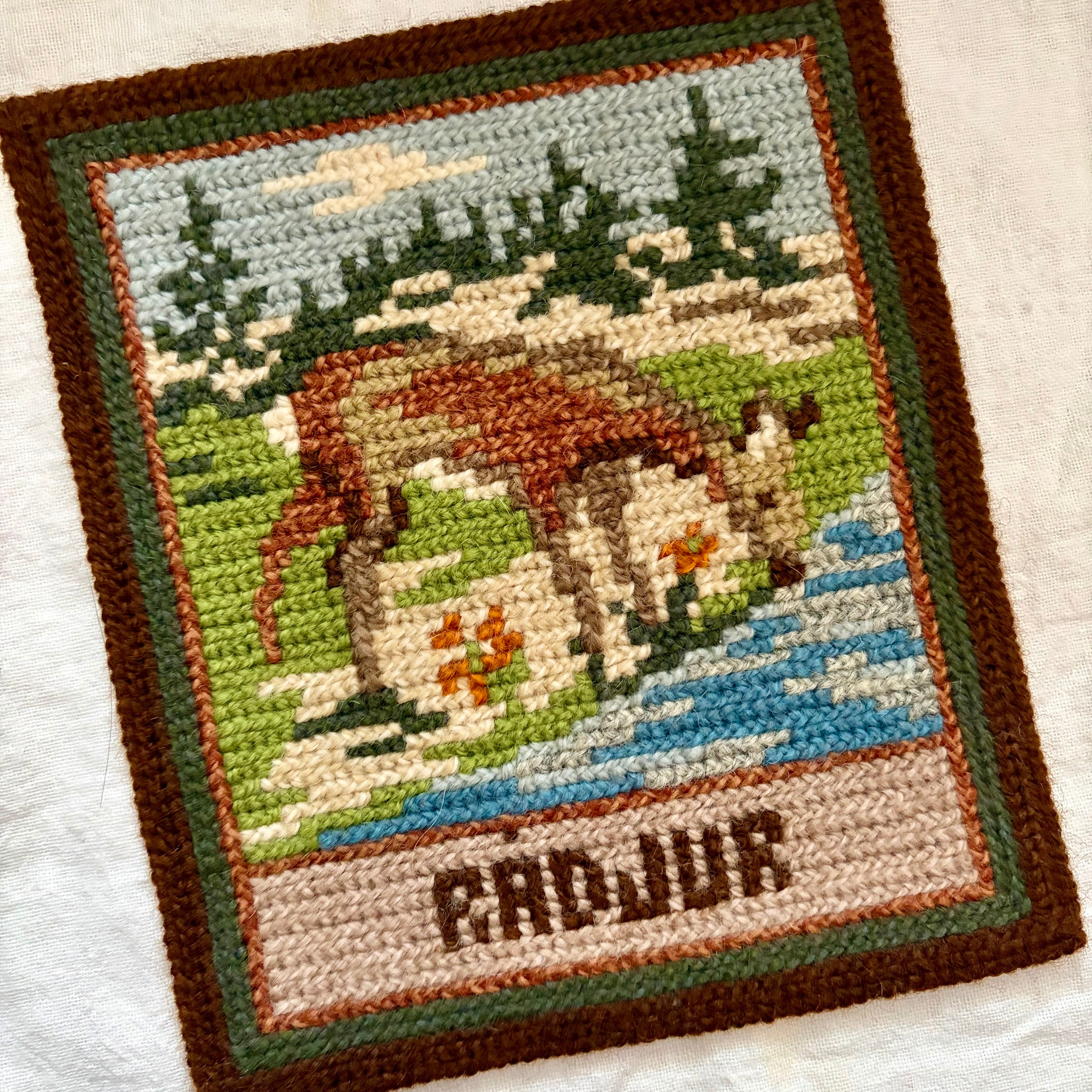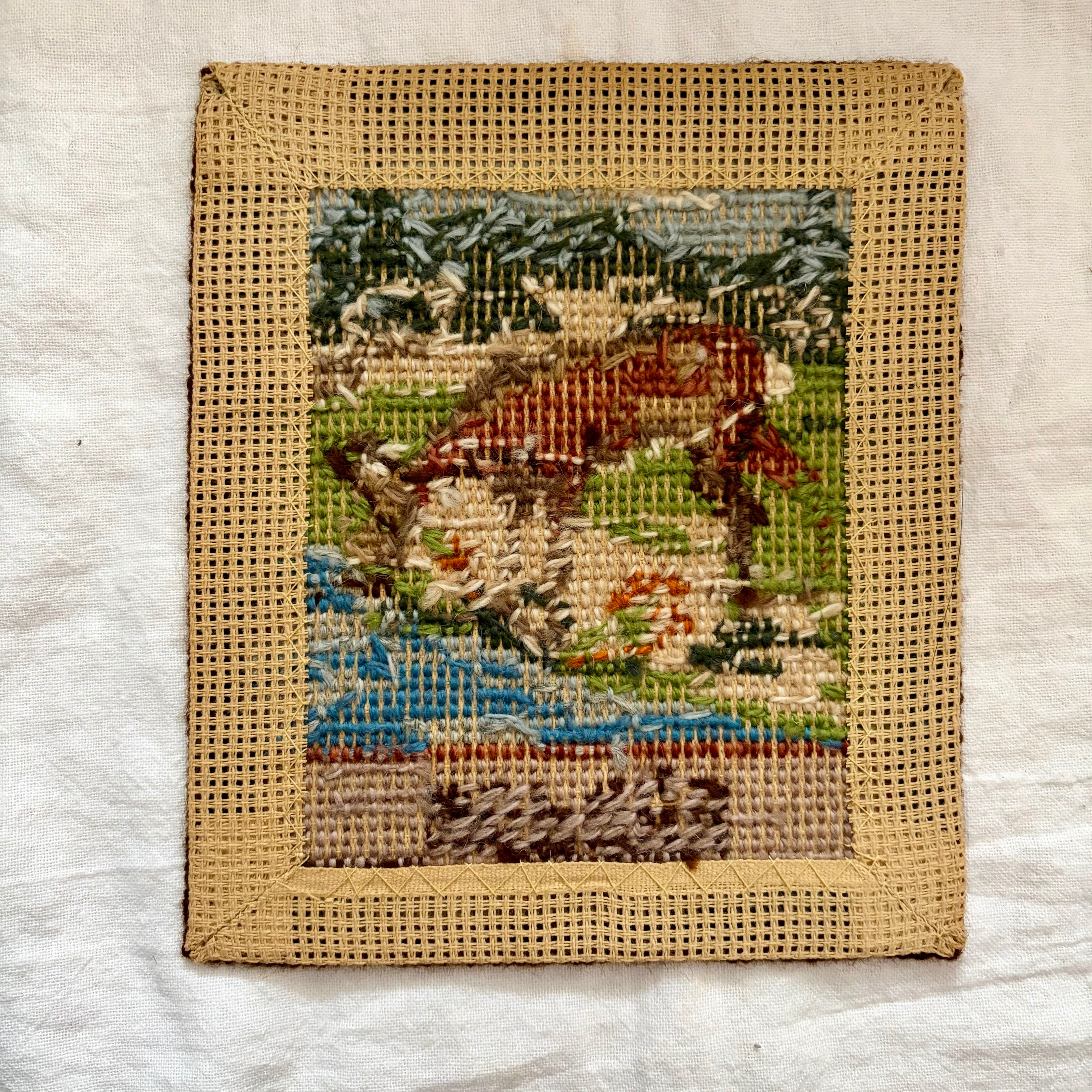 スウェーデンで見つけたツヴィスト刺繡の鹿模様の壁飾りです。