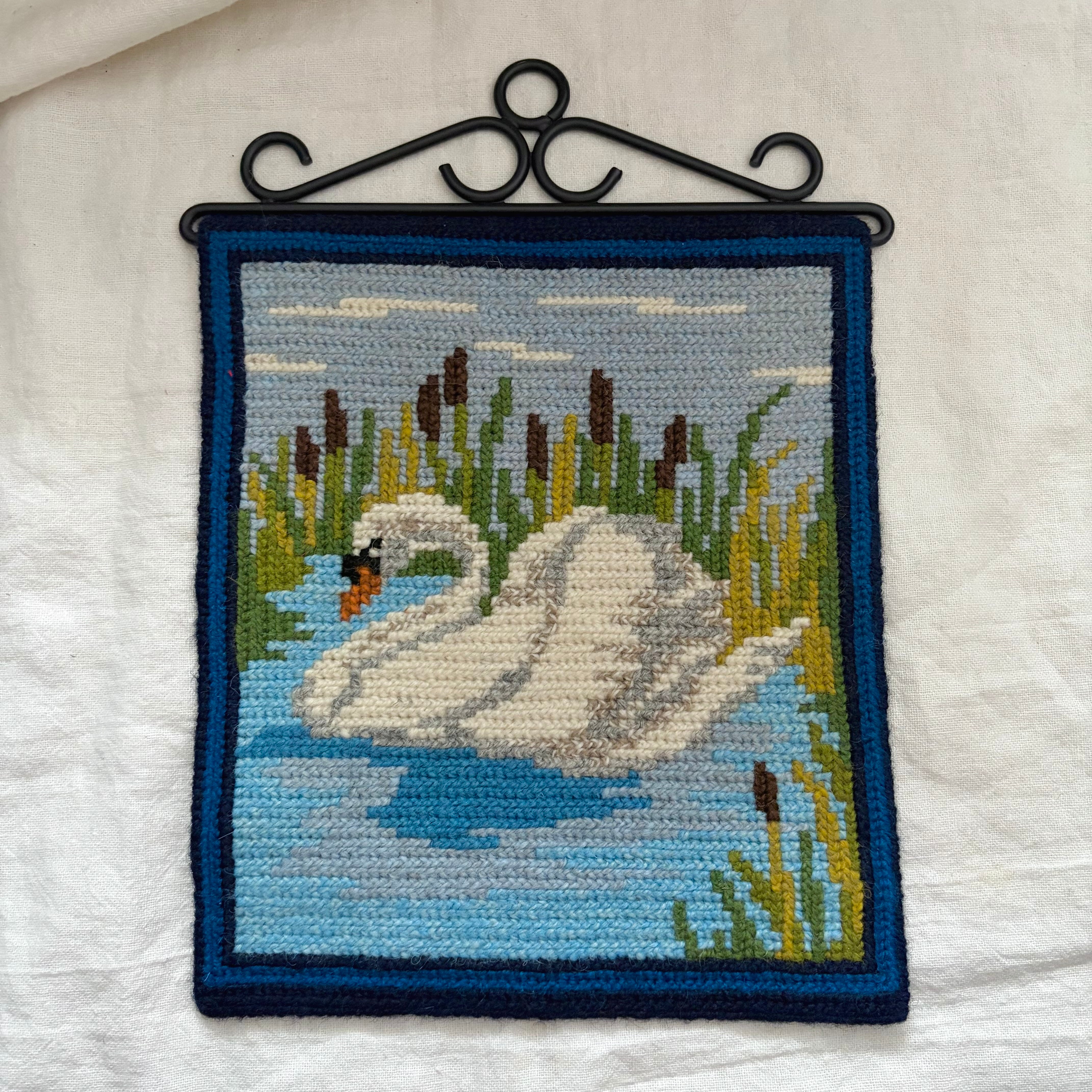 スウェーデンで見つけた白鳥のツヴィスト刺繍の壁飾りです。