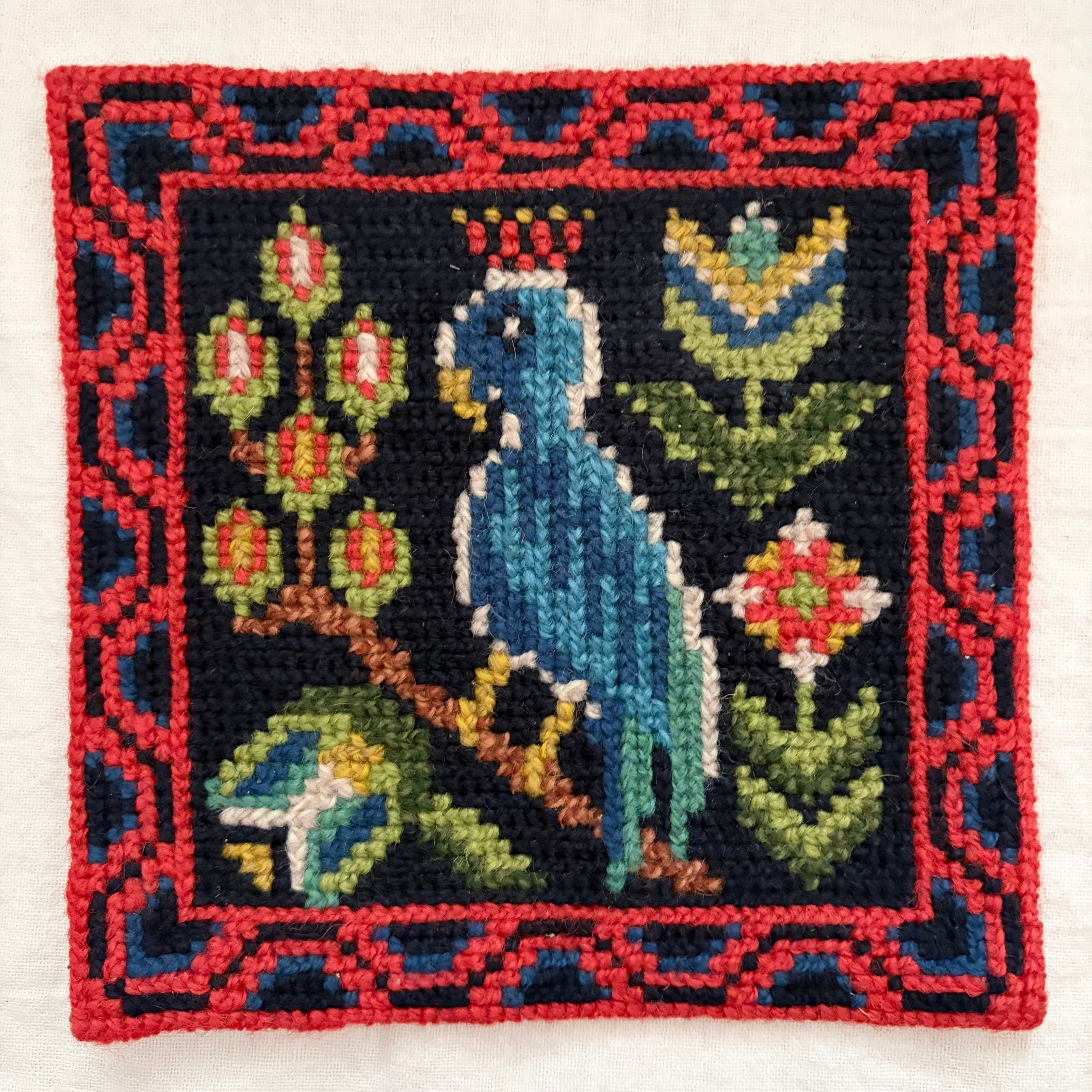 ツヴィスト刺繡の青い鳥の壁飾り