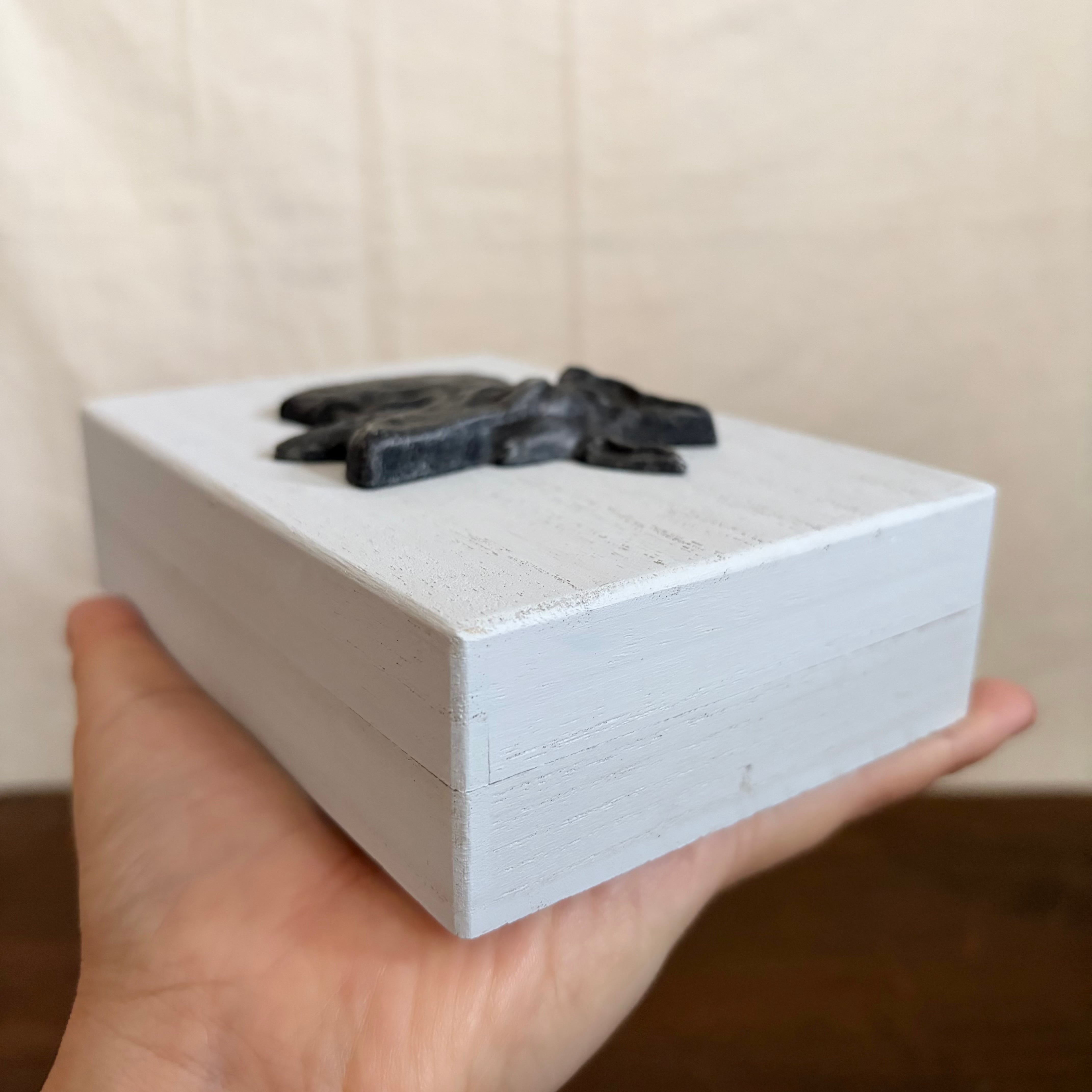 tsuitachiの可愛い置物たちを使って新しい何かを作りたいと思い生まれた木箱です。