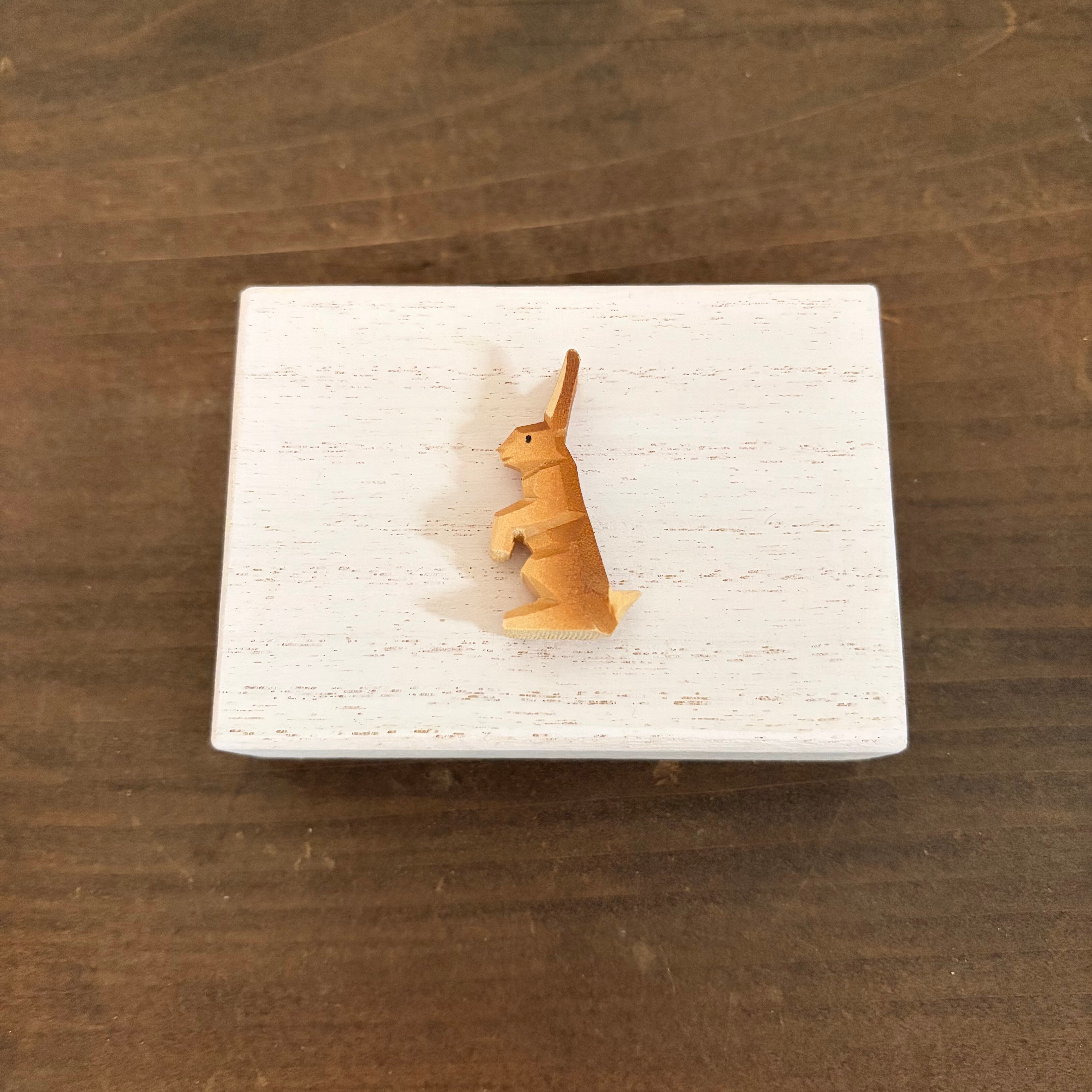 桐製の箱にさくら色を塗り、その上にドイツで見つけた木製のウサギを乗せました。