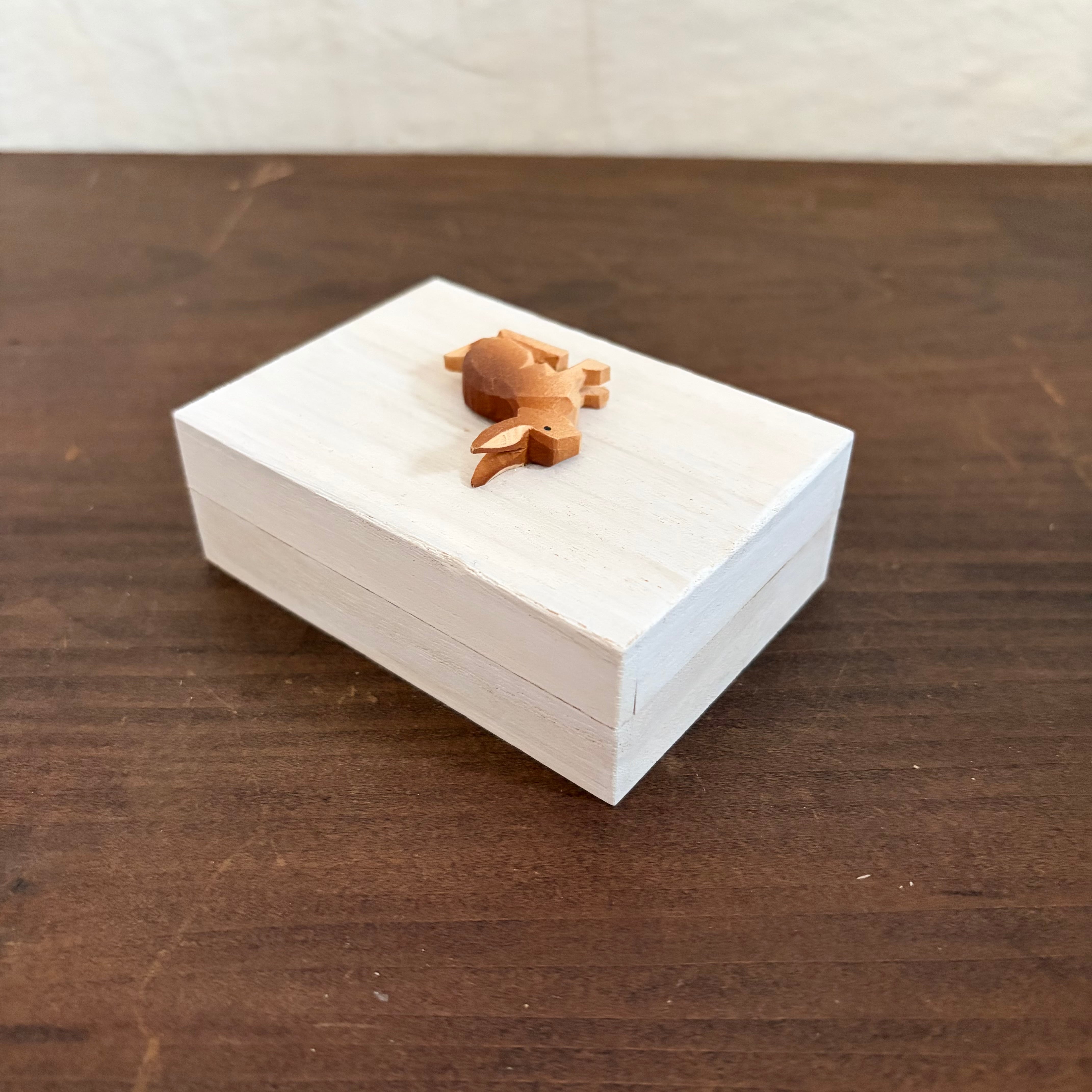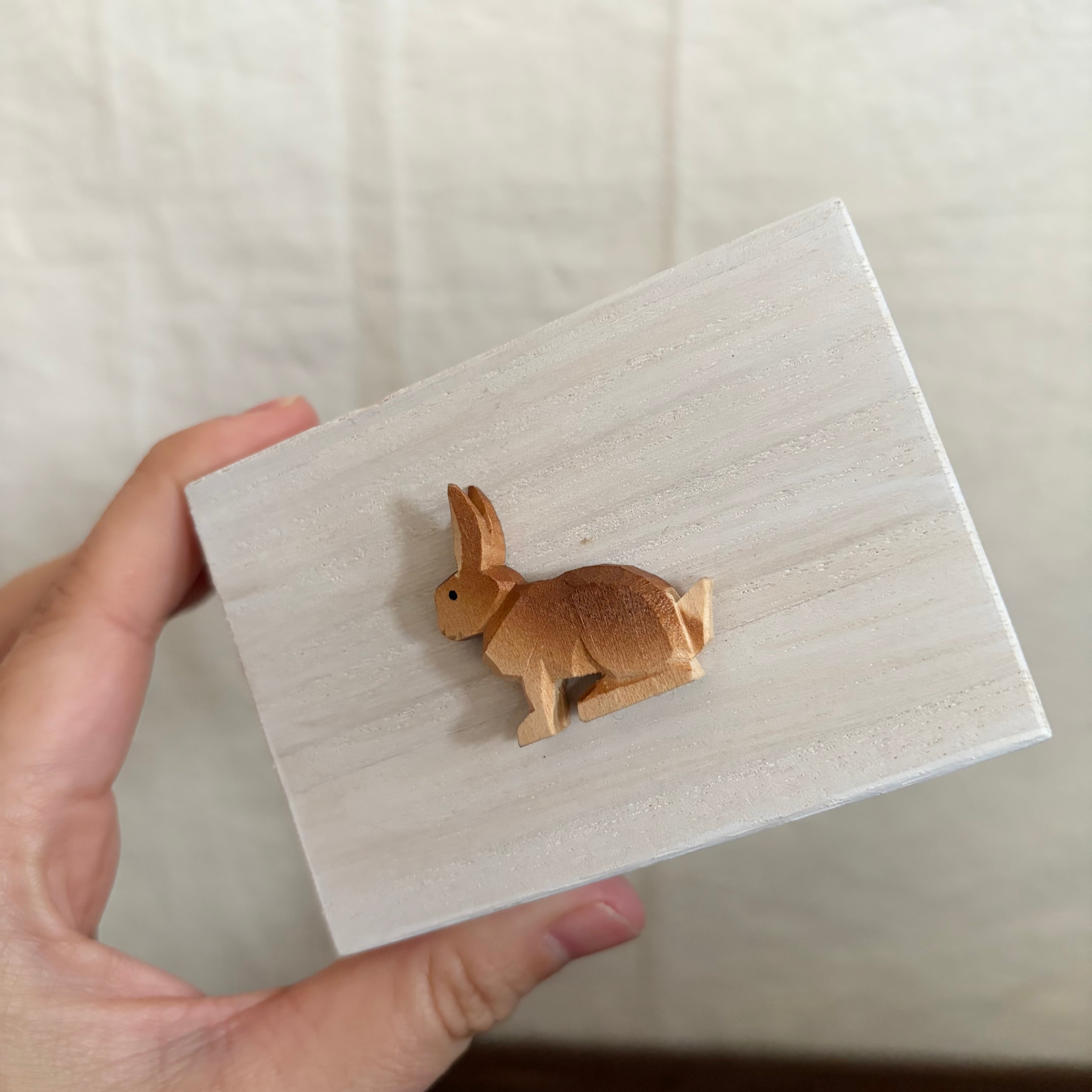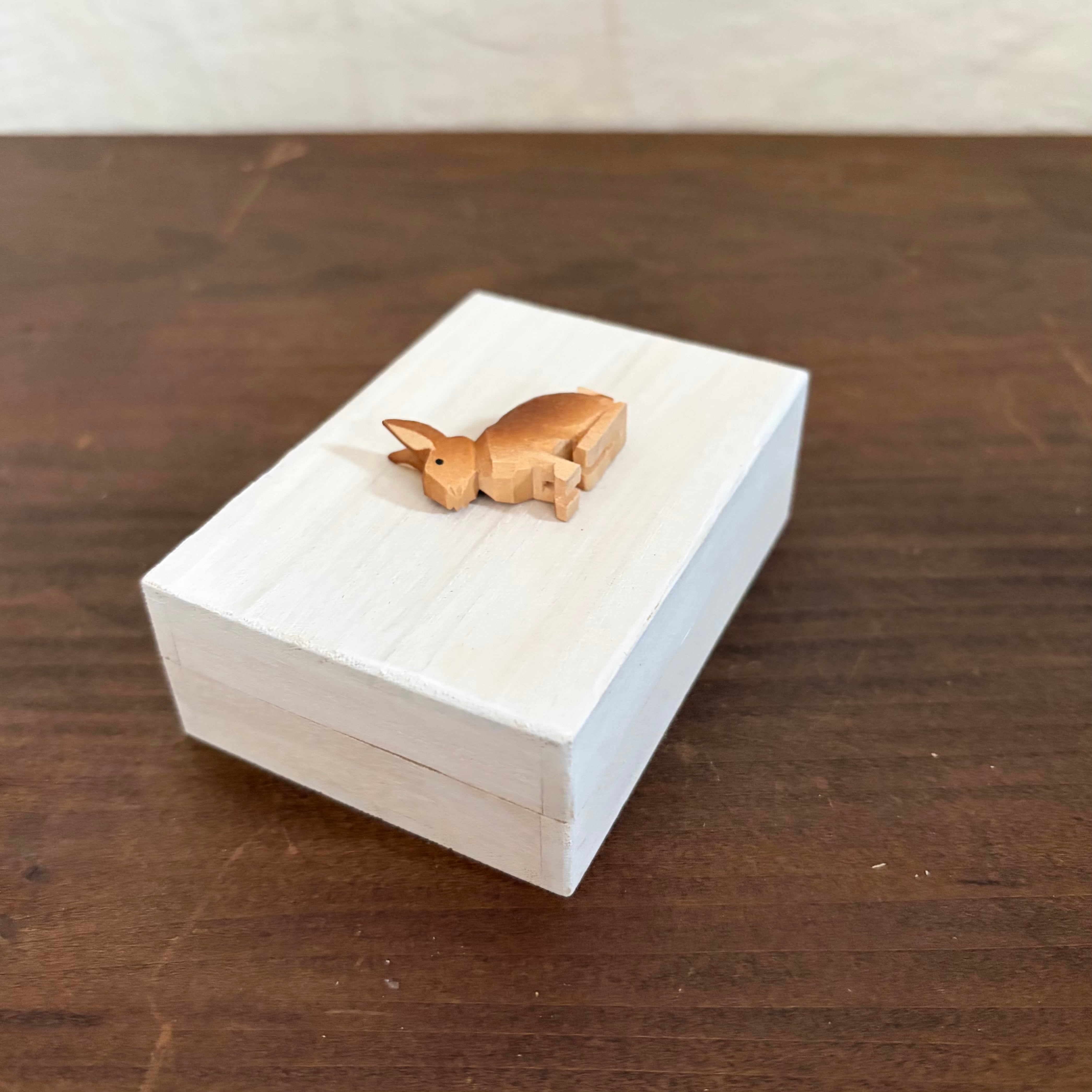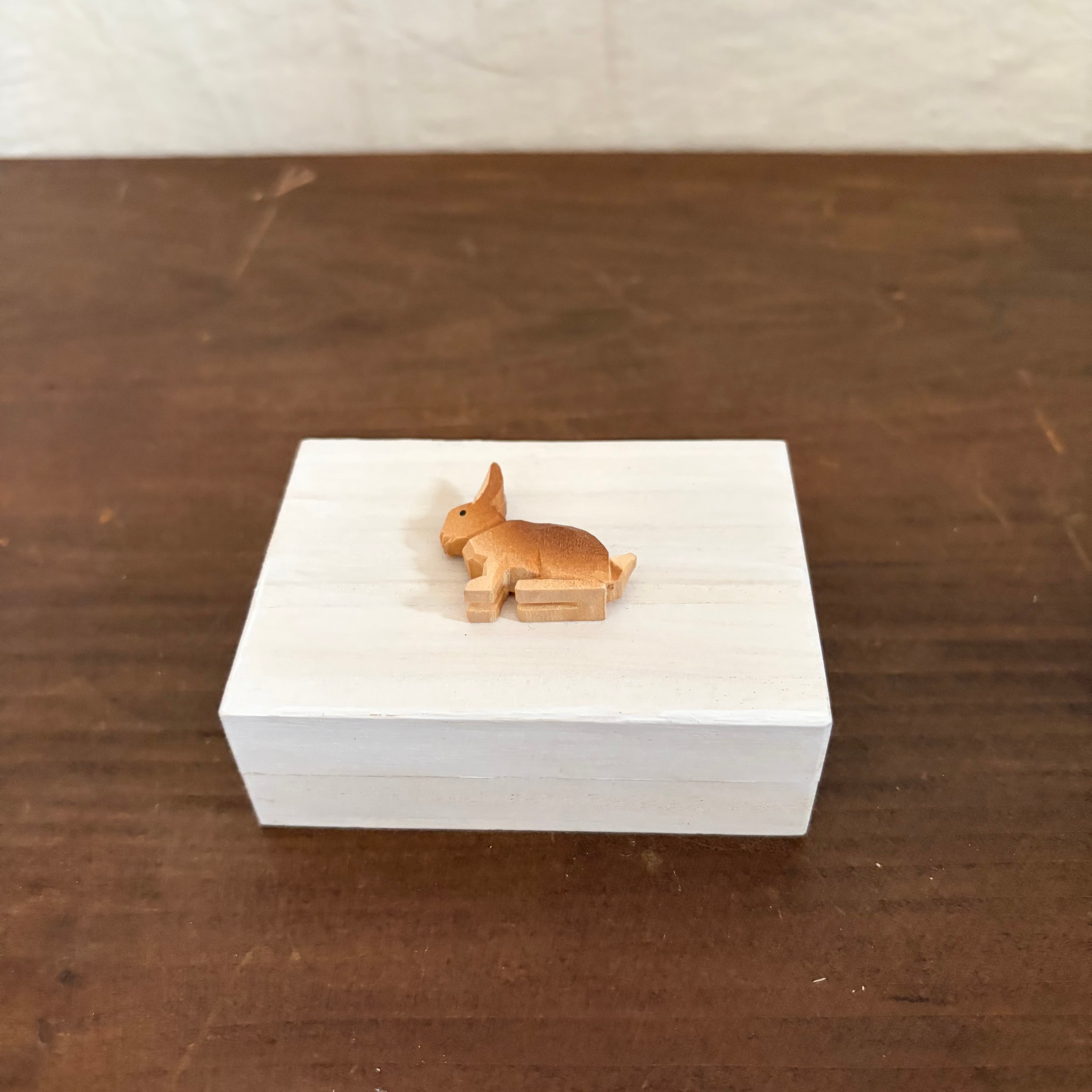 桐製の箱に白色を塗り、その上にドイツで見つけた木製のウサギを乗せました。
