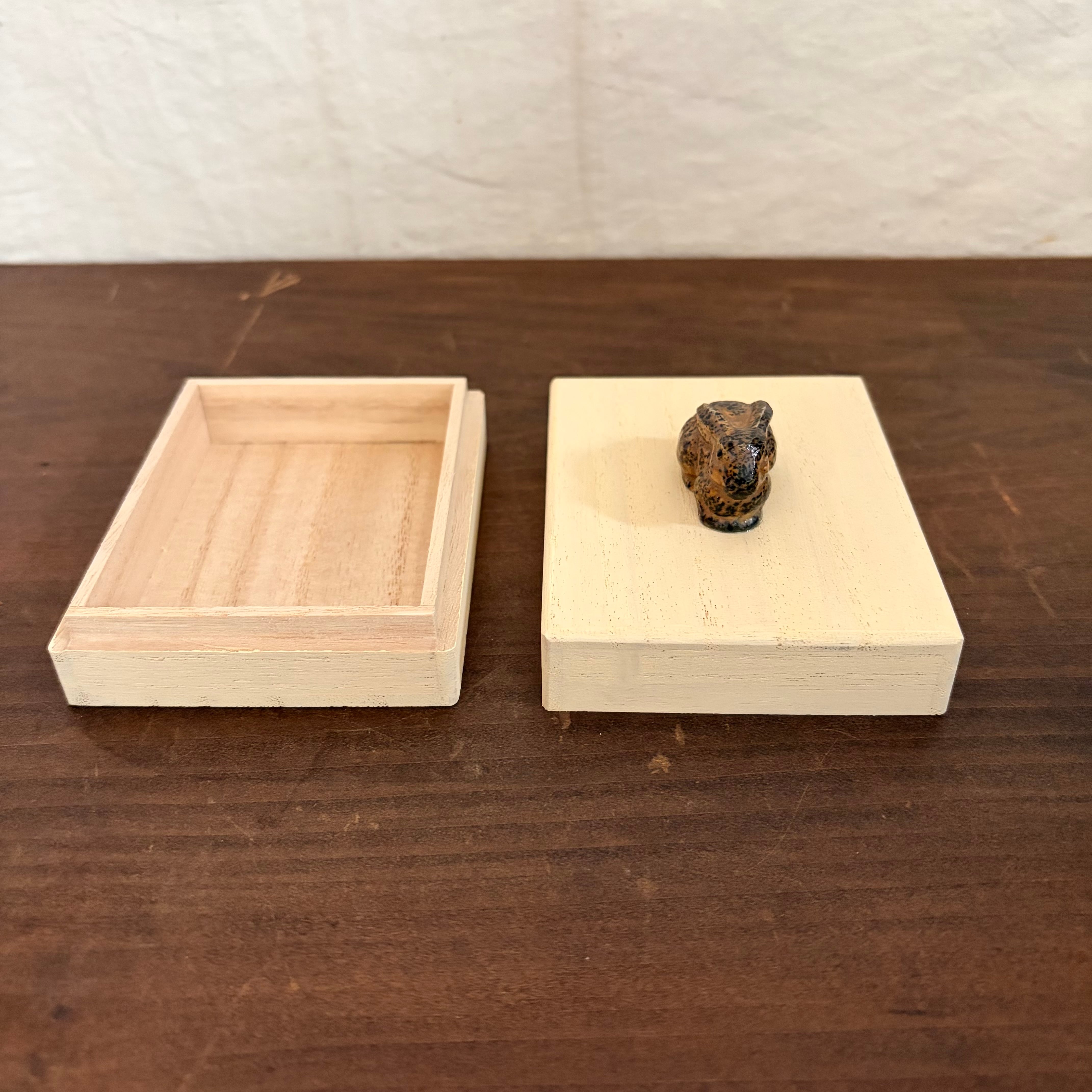 tsuitachiの可愛い置物たちを使って新しい何かを作りたいと思い生まれた木箱です。