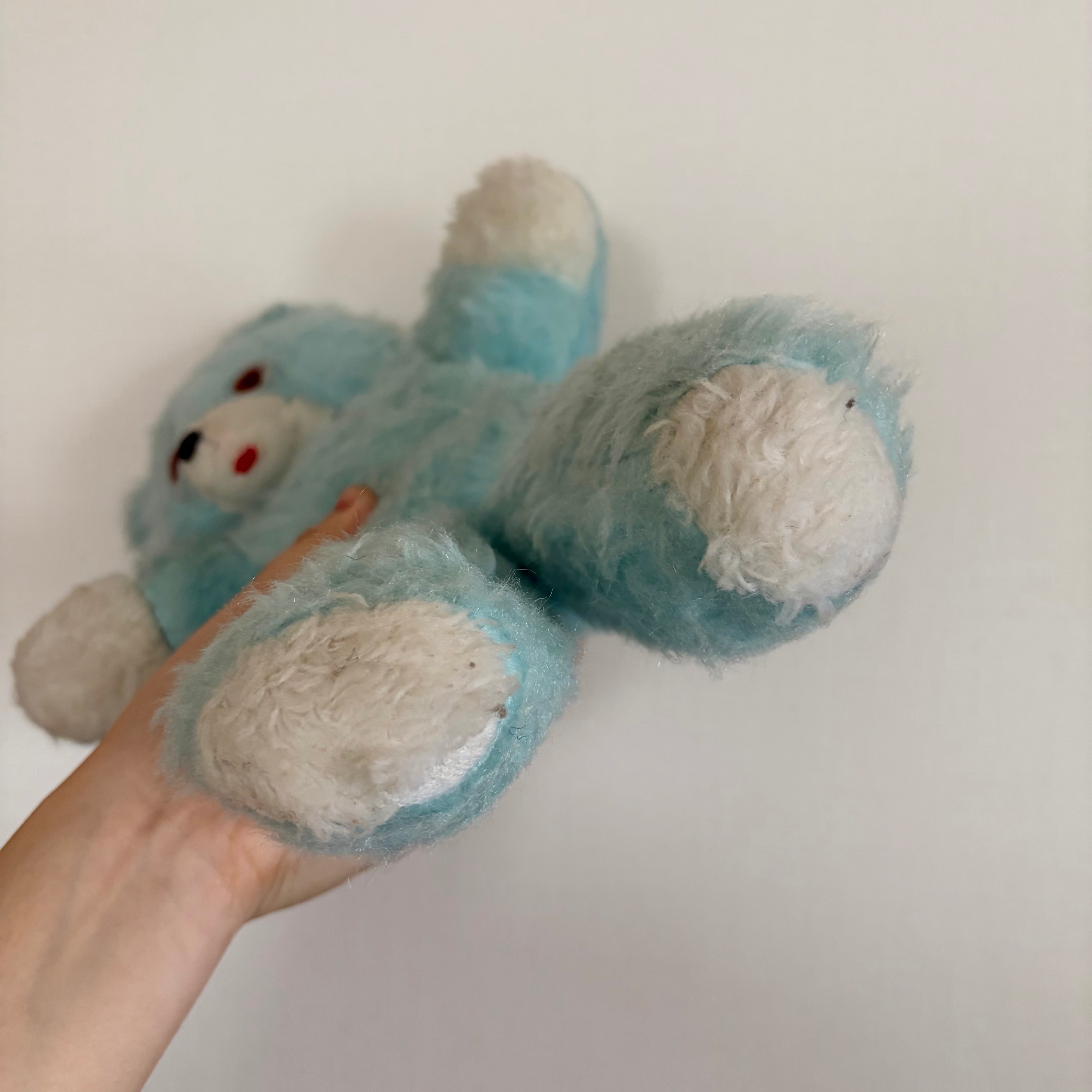 珍しいきれいな空色のくまは、鼻と口が少し曲がっているのがチャームポイントです。