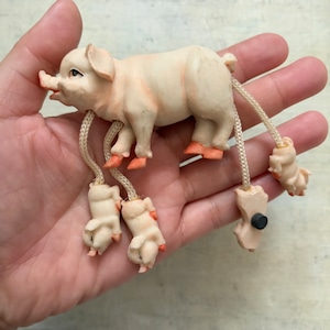 親ブタと紐でつながった子ブタが4匹と、可愛さとシュールさがひしめき合ったマグネットです。