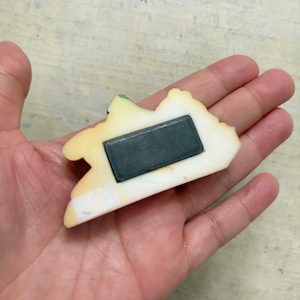 プラスチック製で、少し立体的なクマが赤い何かの上で寝そべっています。