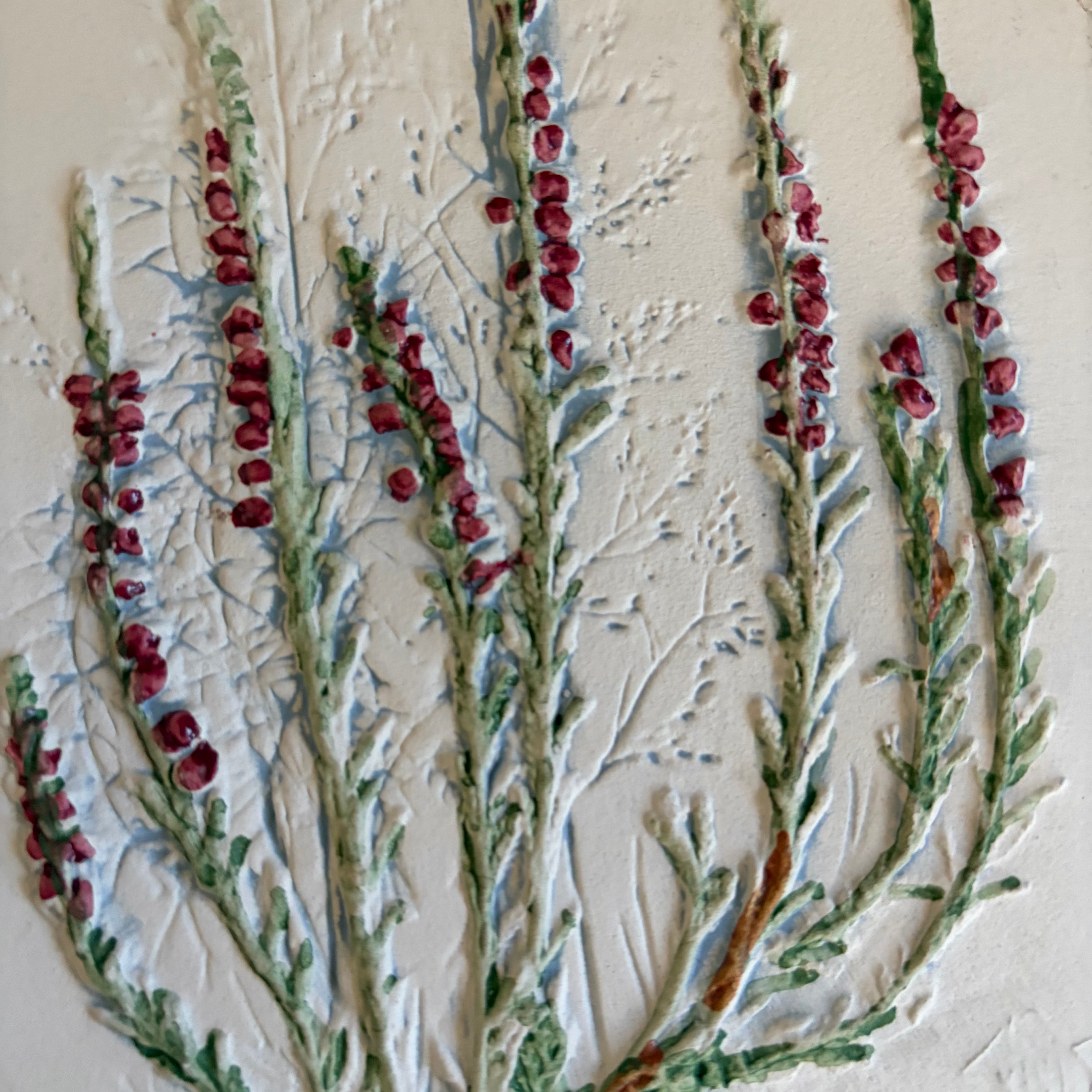 スウェーデンで見つけたjie gantoftaのヘザーの花の陶板になります。