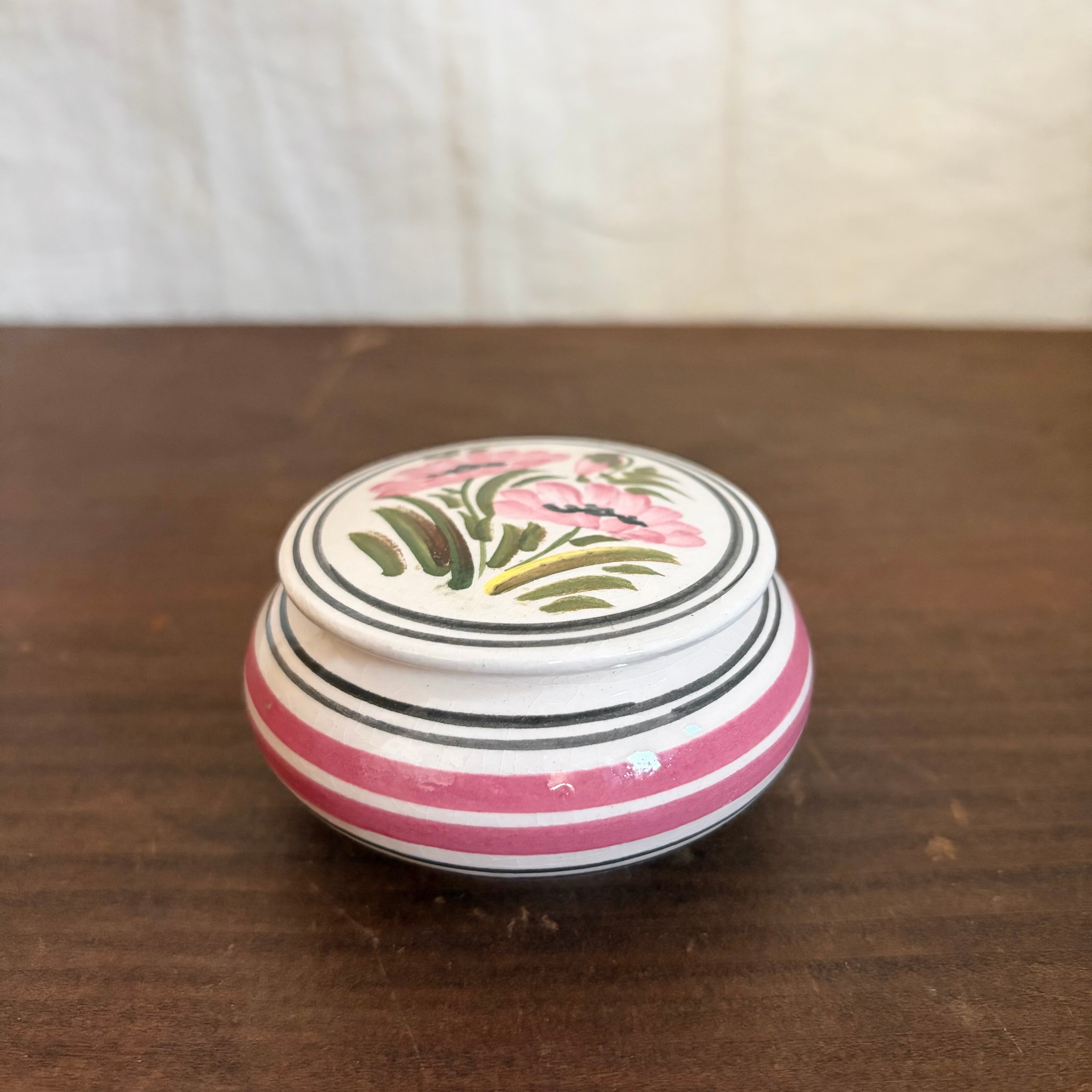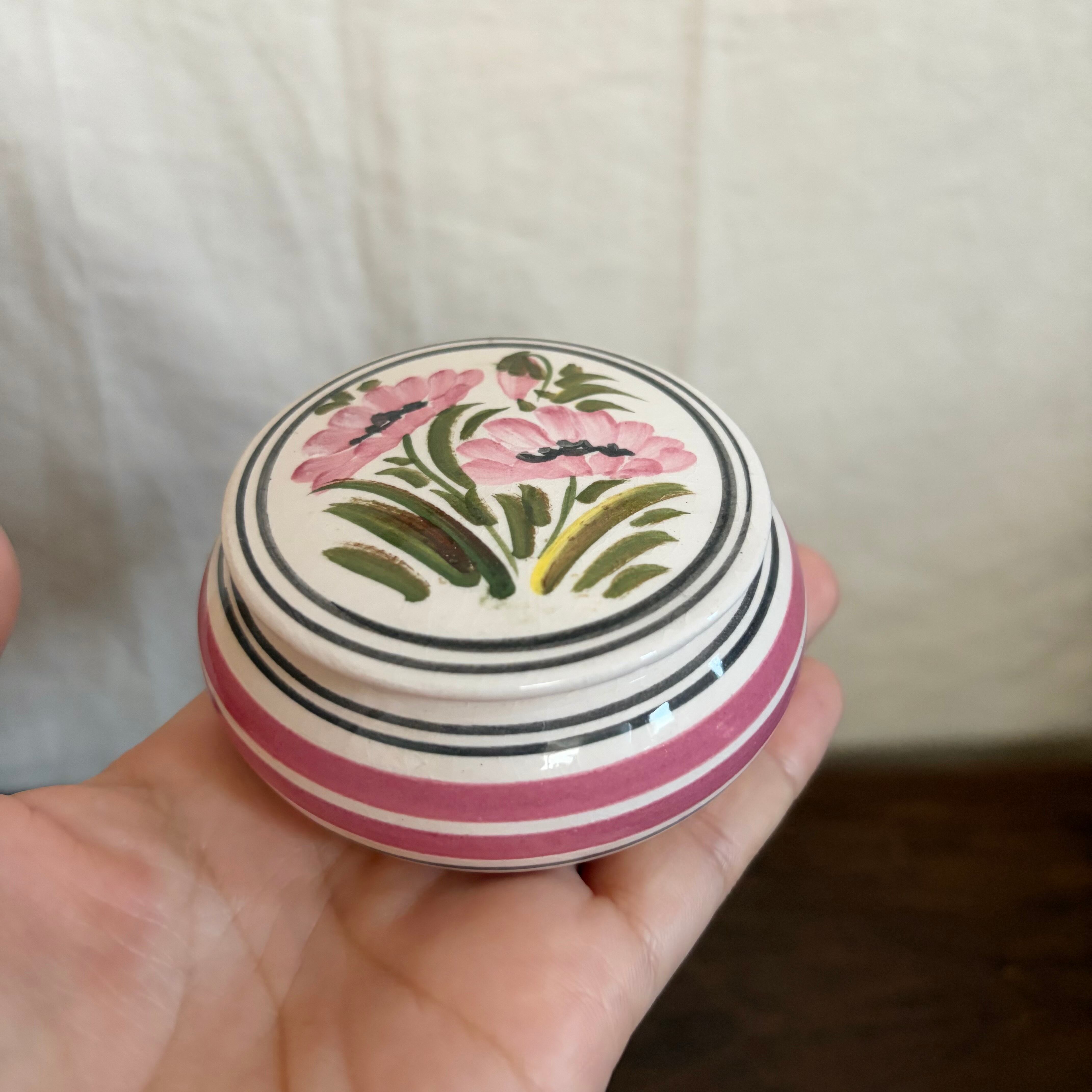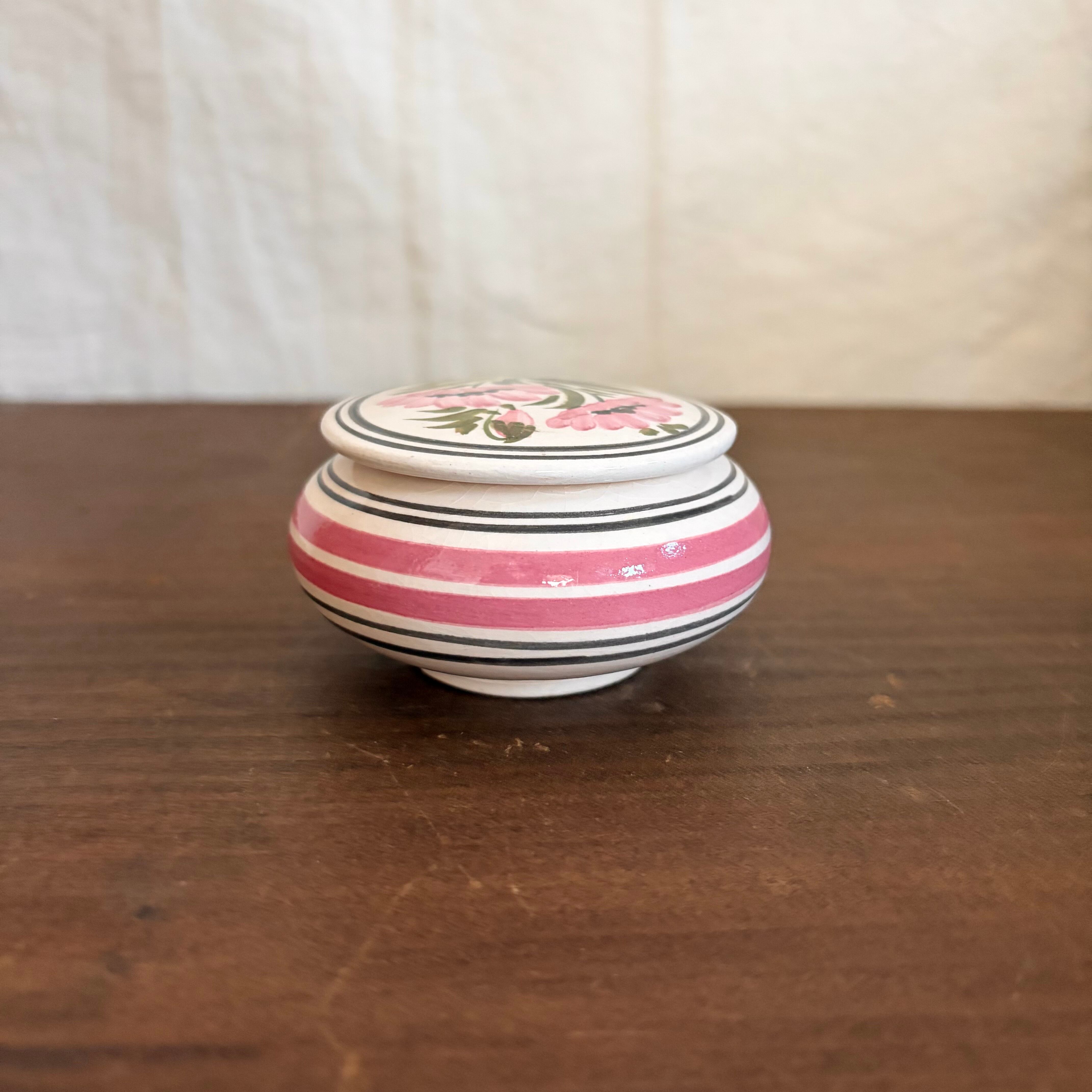 ピンクを基調に作られたいれものは、手描きのもつ優しい雰囲気が溢れています。
