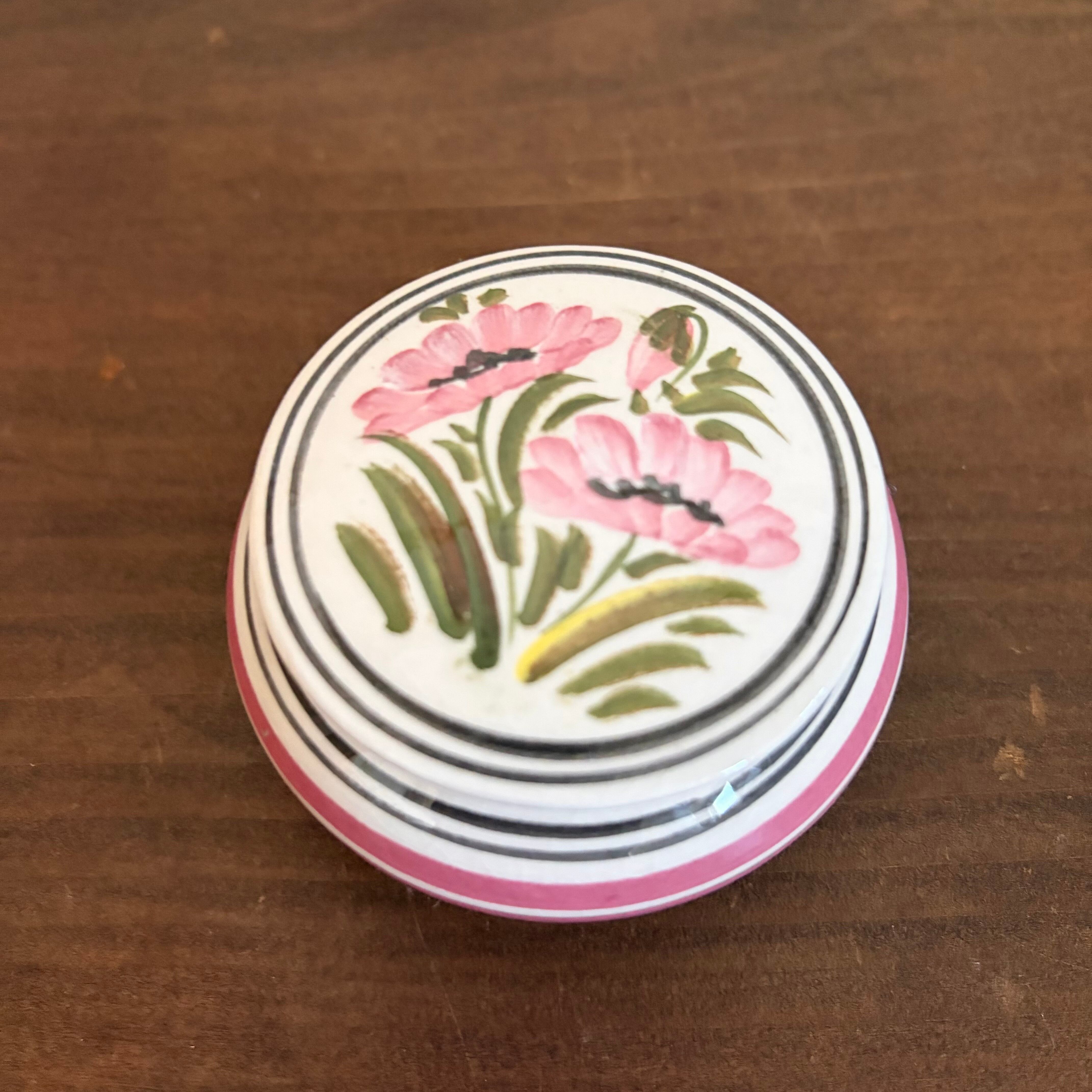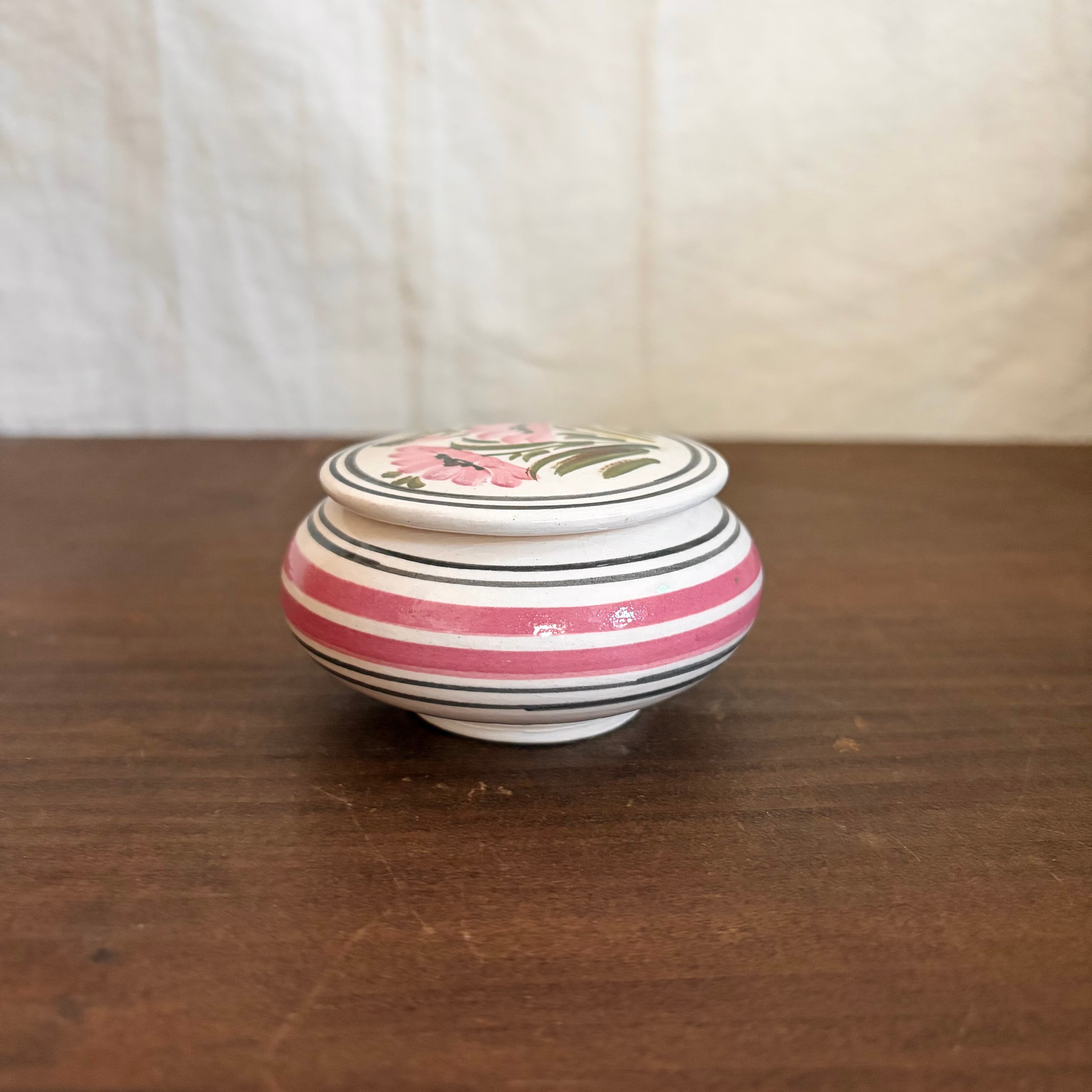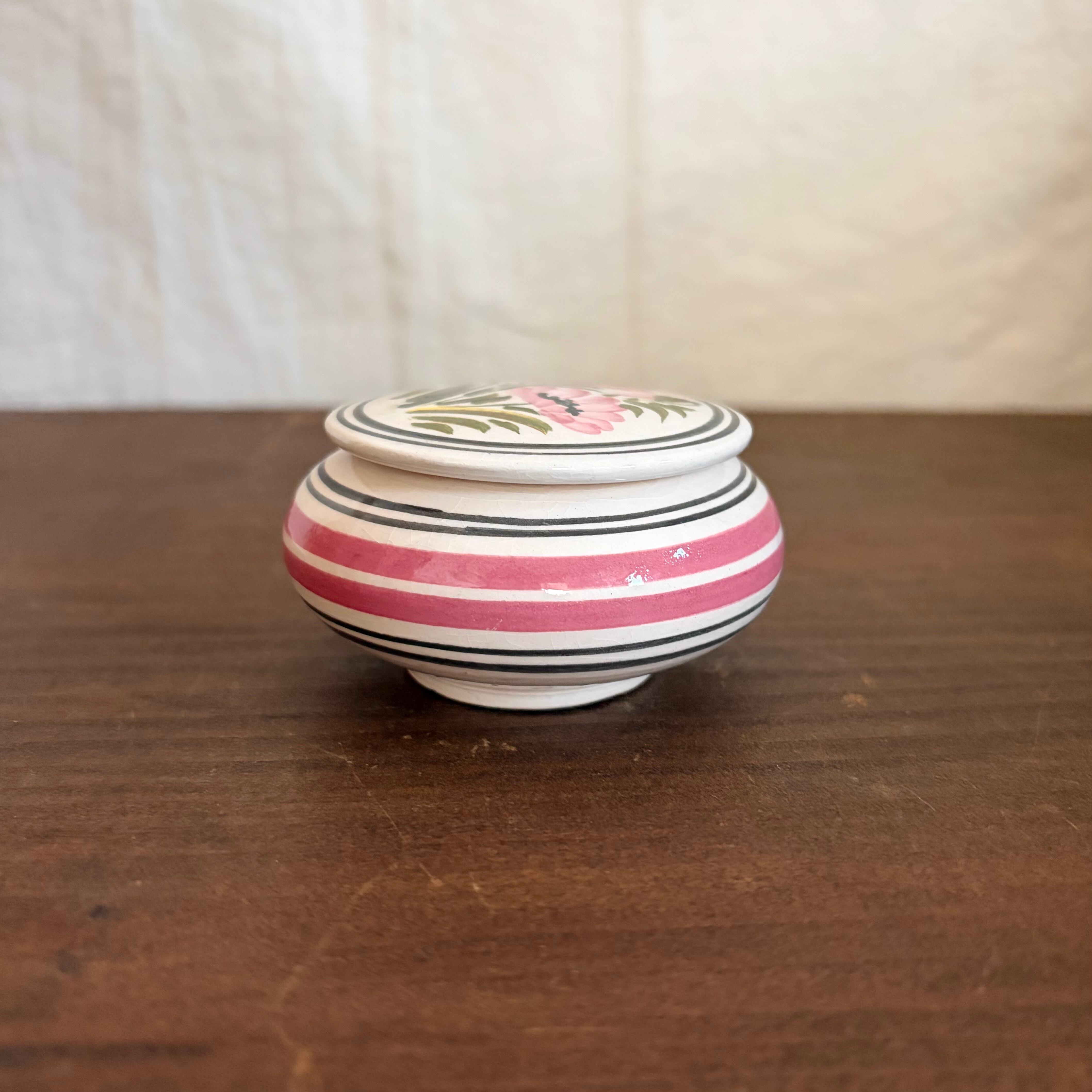 ピンクを基調に作られたいれものは、手描きのもつ優しい雰囲気が溢れています。
