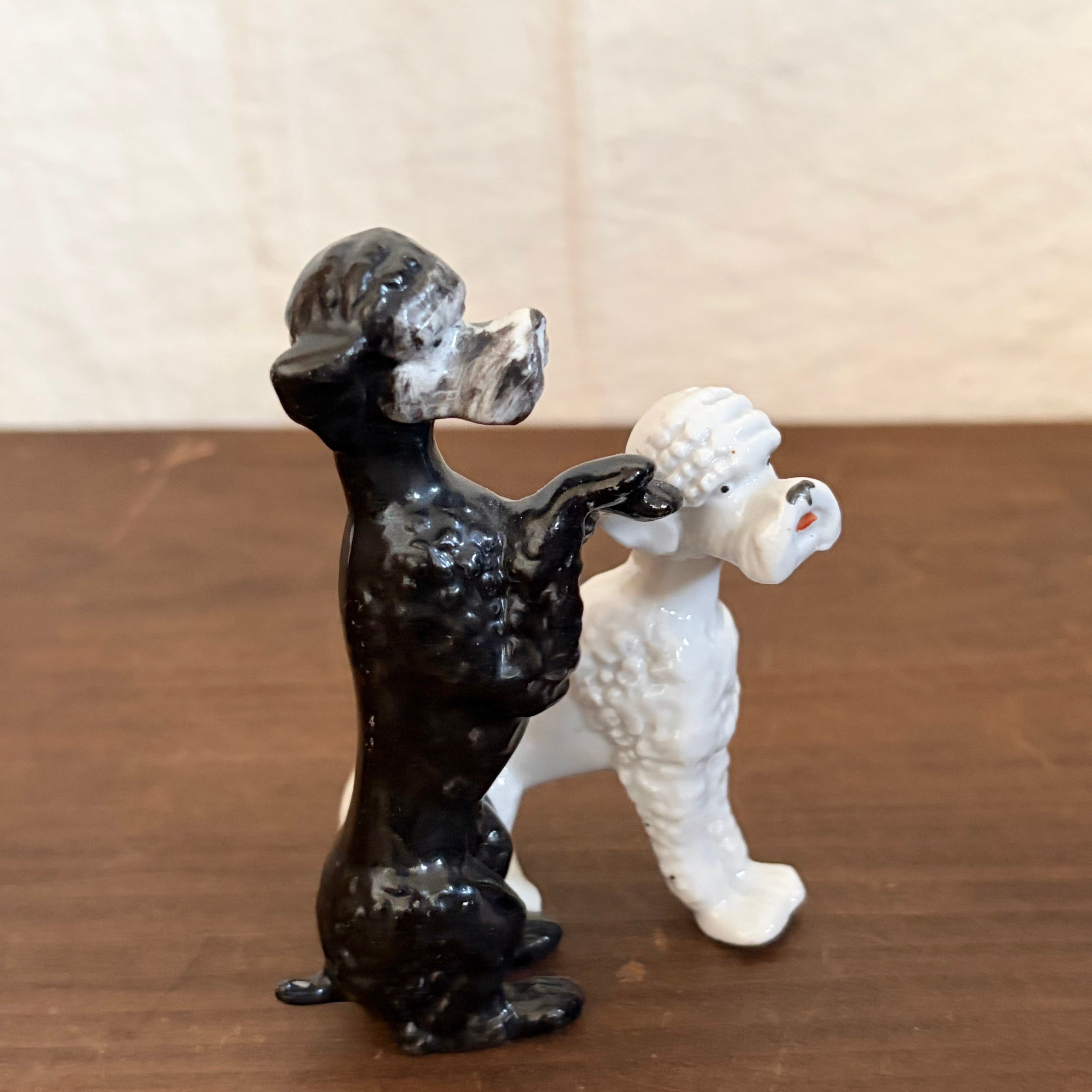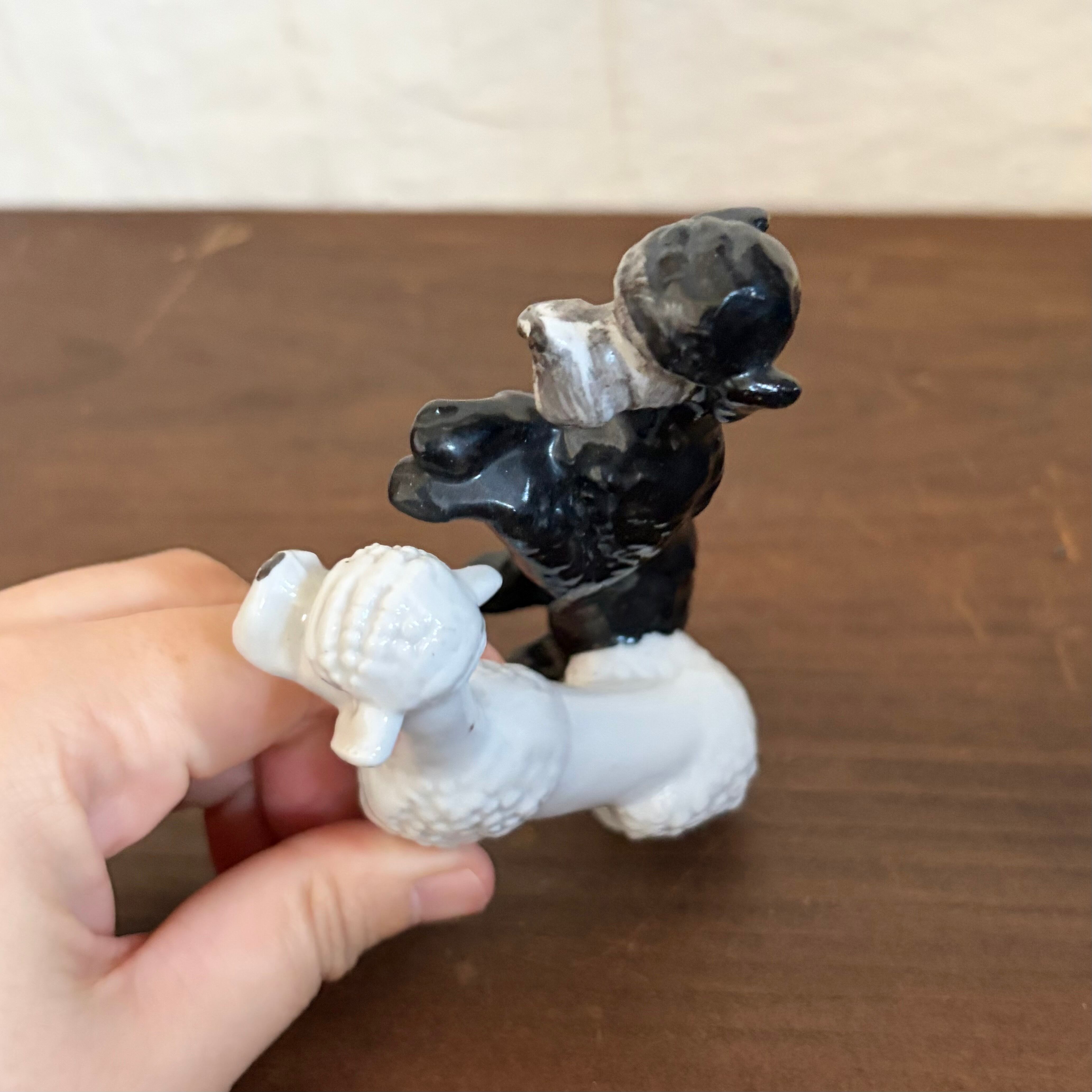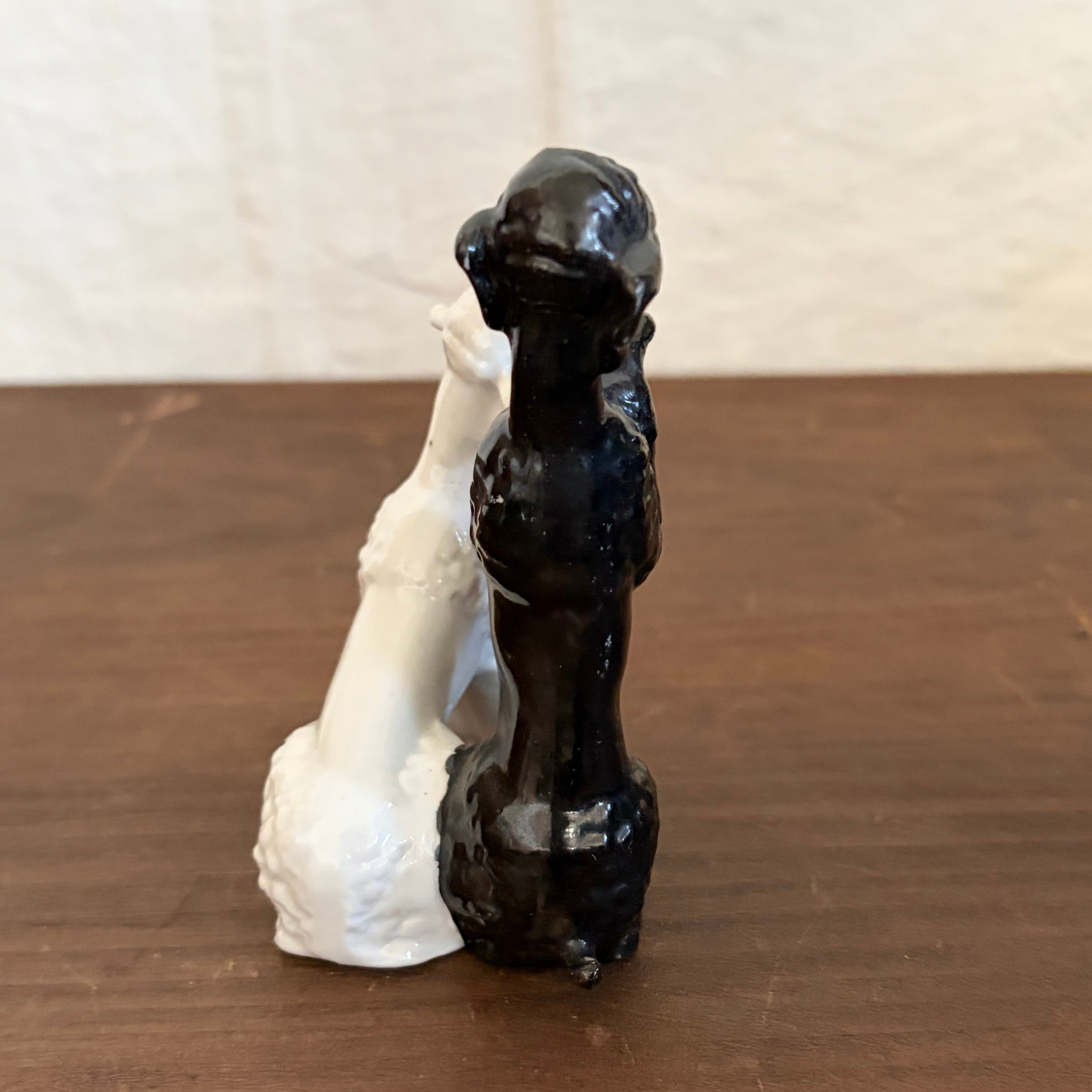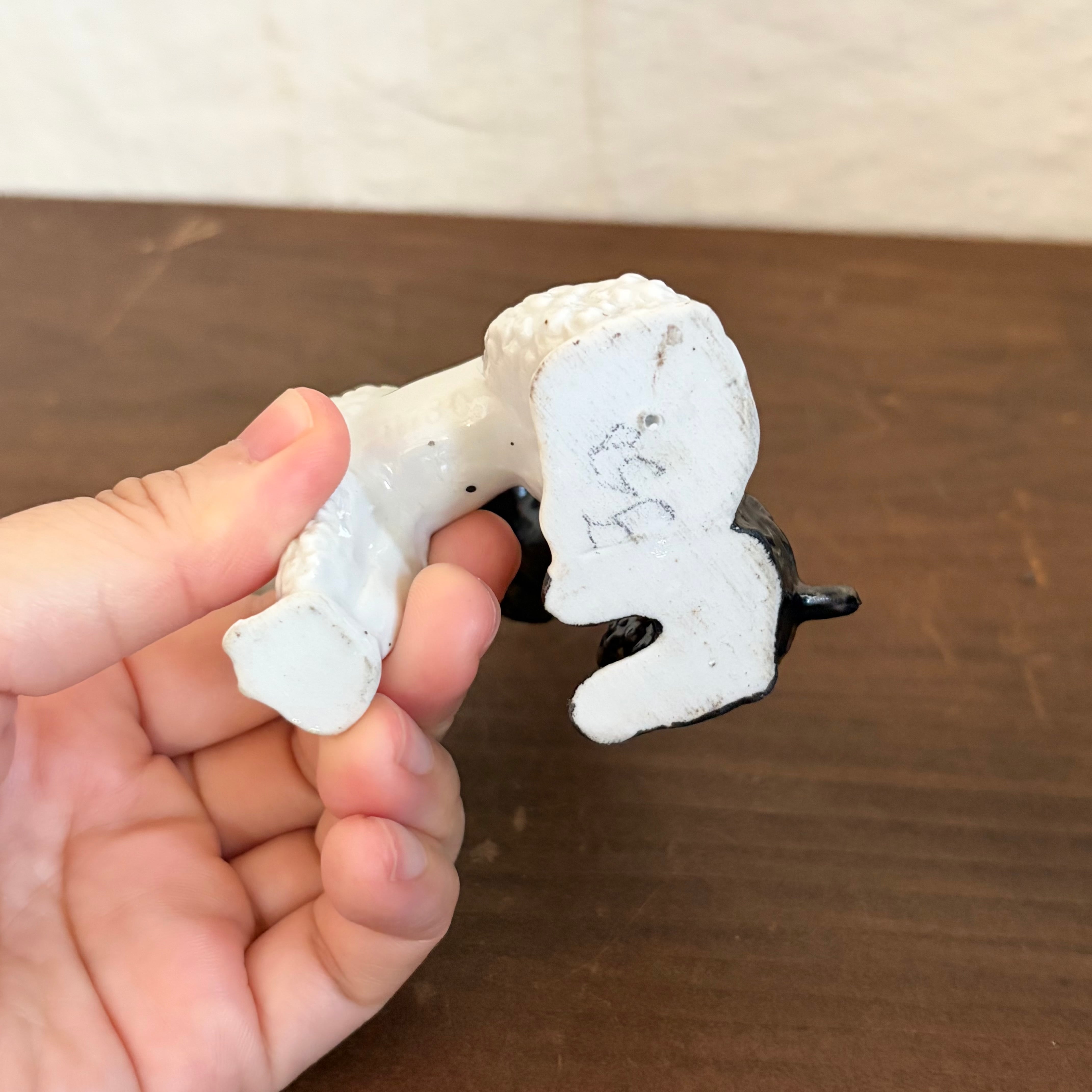 白プードルの前足が一部欠けていますが、上から釉薬がかかっているので、制作時から欠けていたものだと思います。