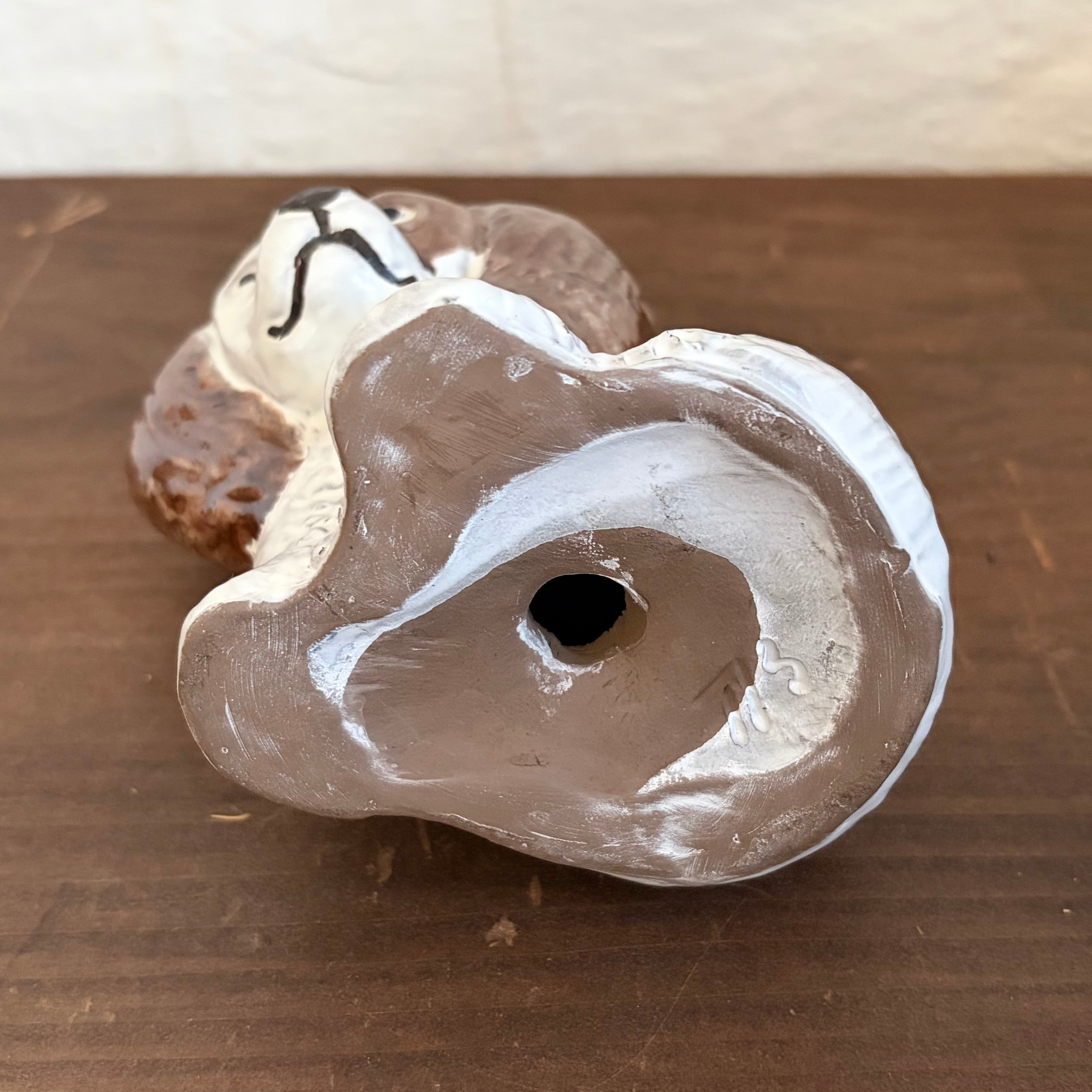 大き目で陶器のずっしり感を感じる犬は、すこっしうつむきがちですが、可愛らし顔をしています。