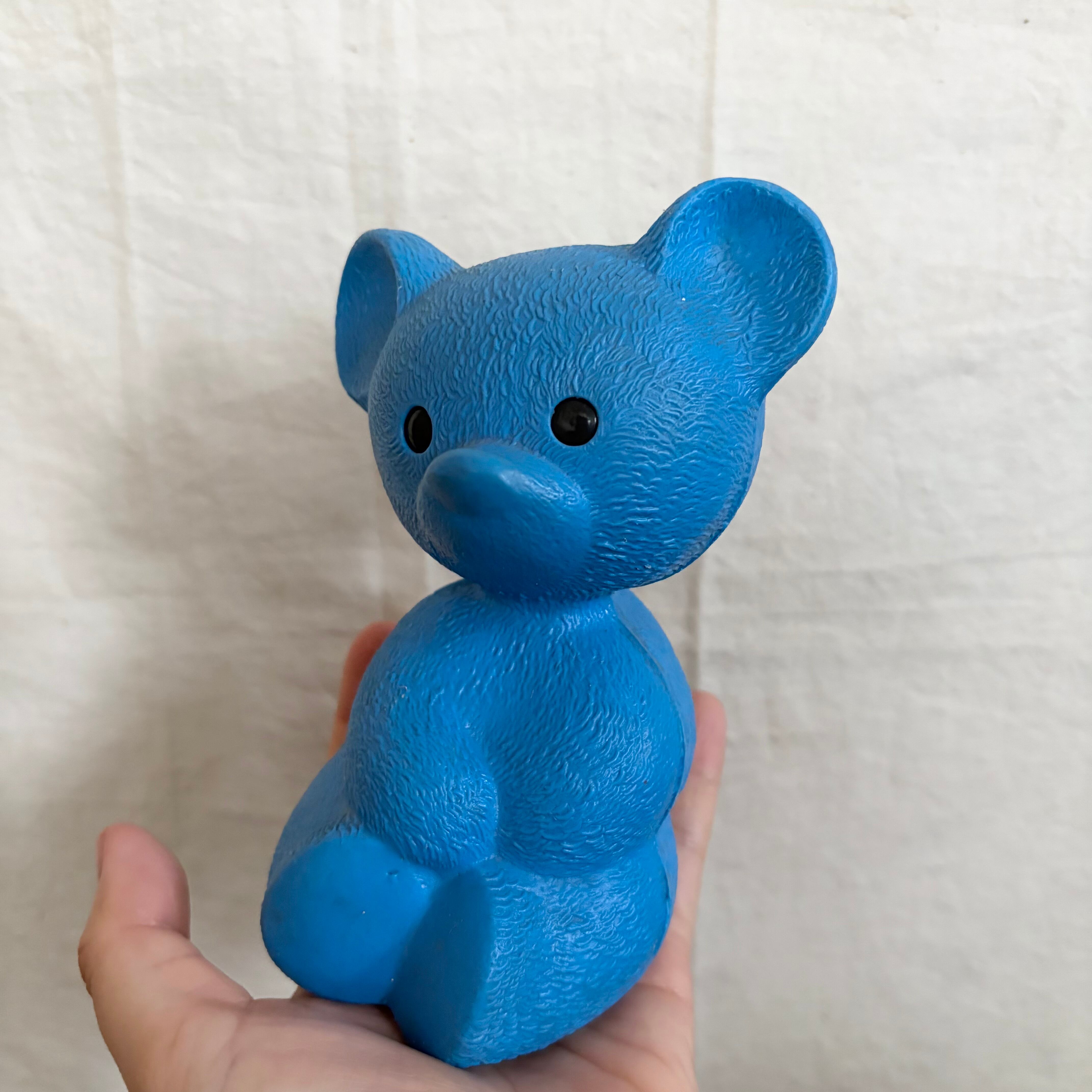 レトロ感があって可愛らしい鮮やかなブルーのくまです。