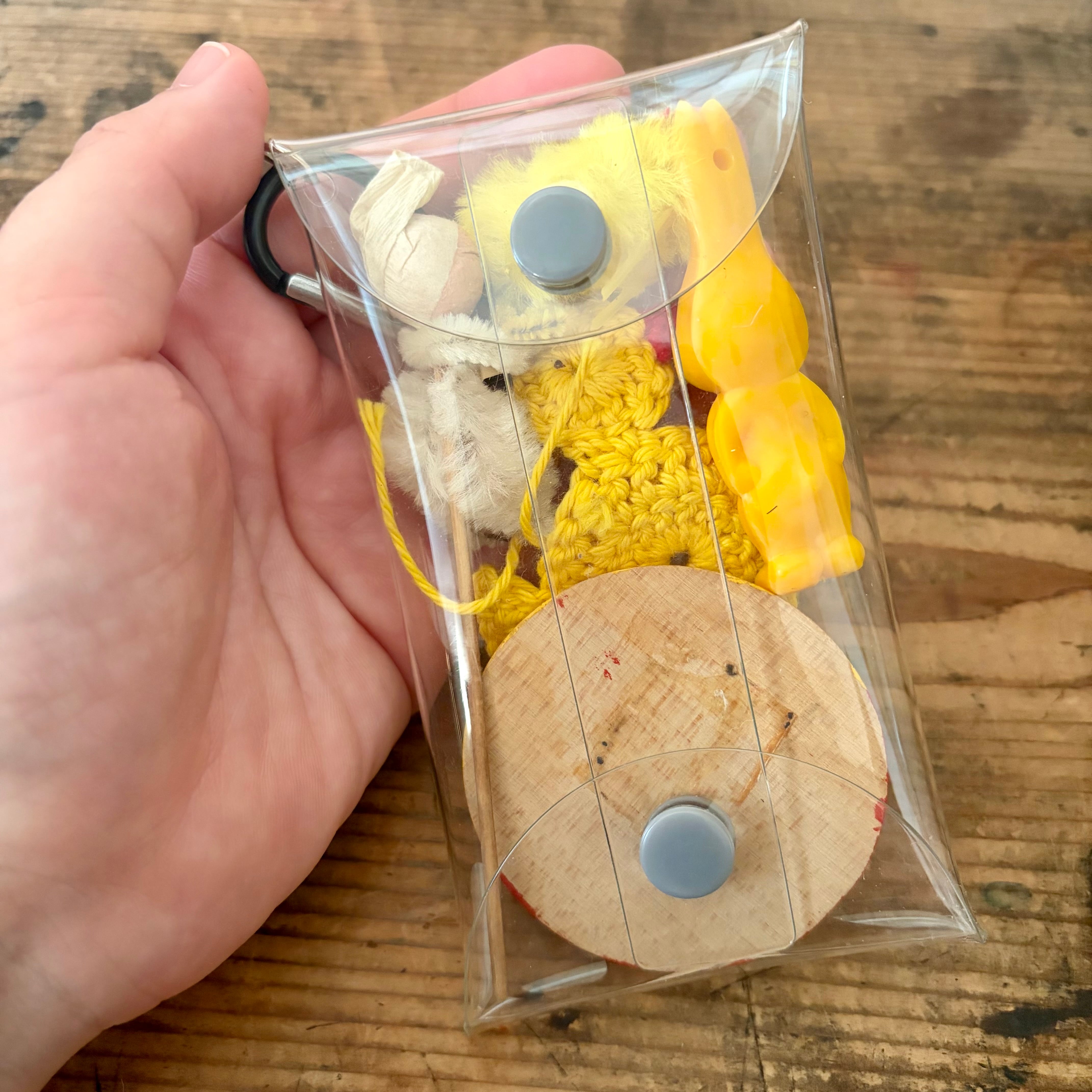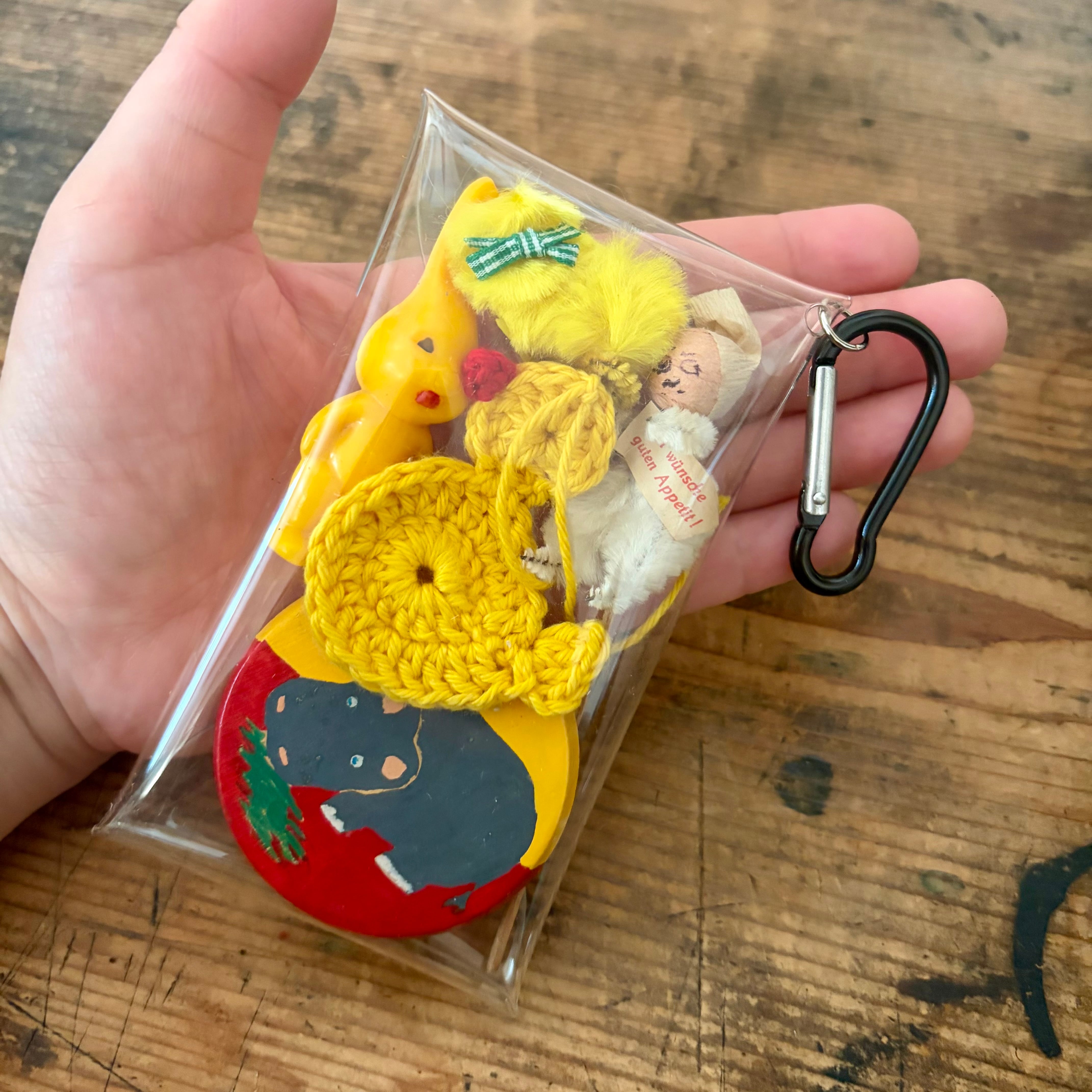 tsuitachiが買い付けたものたちをビニール製のポーチタイプのキーホルダーにしました。