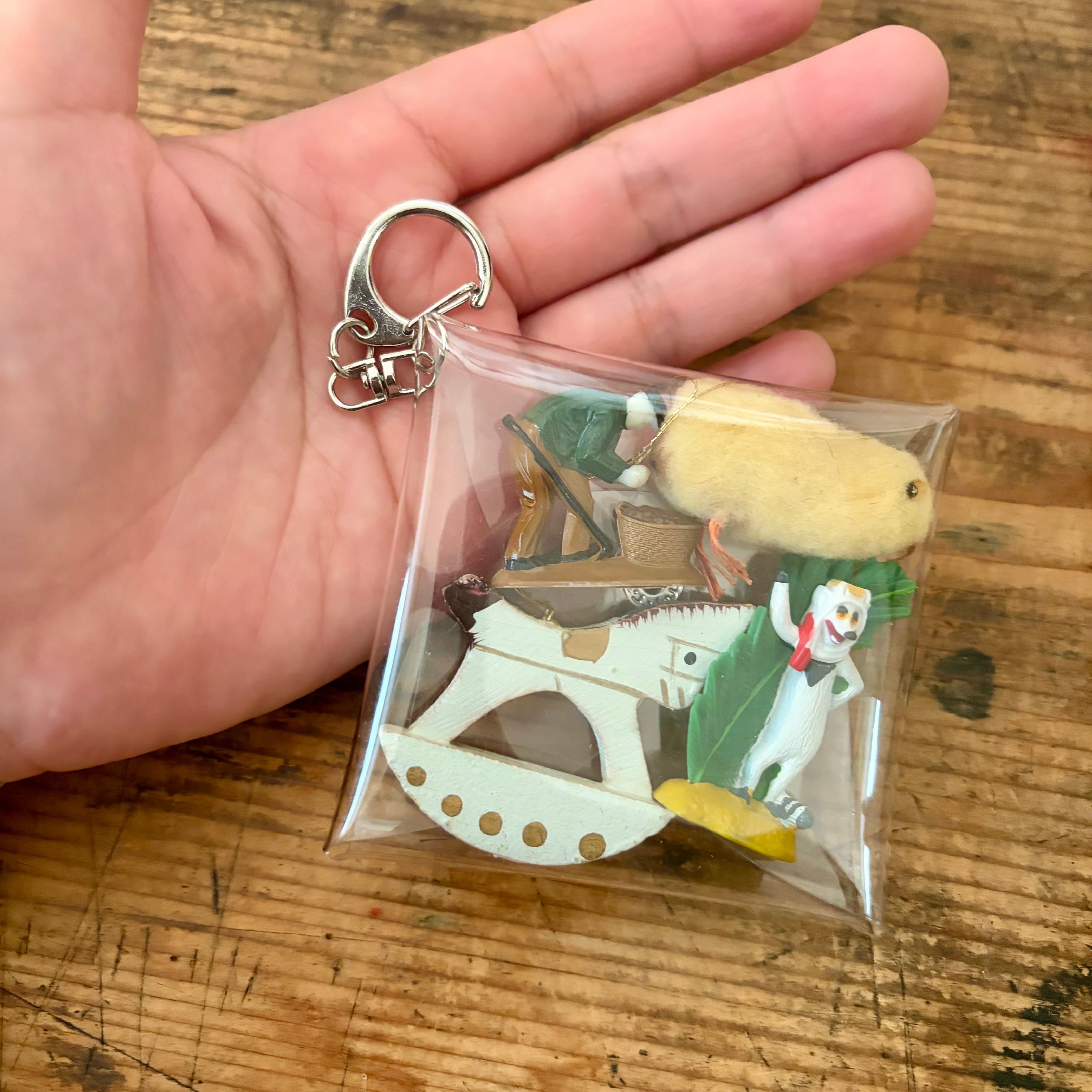 tsuitachiが買い付けたものたちをビニール製のポーチタイプのキーホルダーにしました。