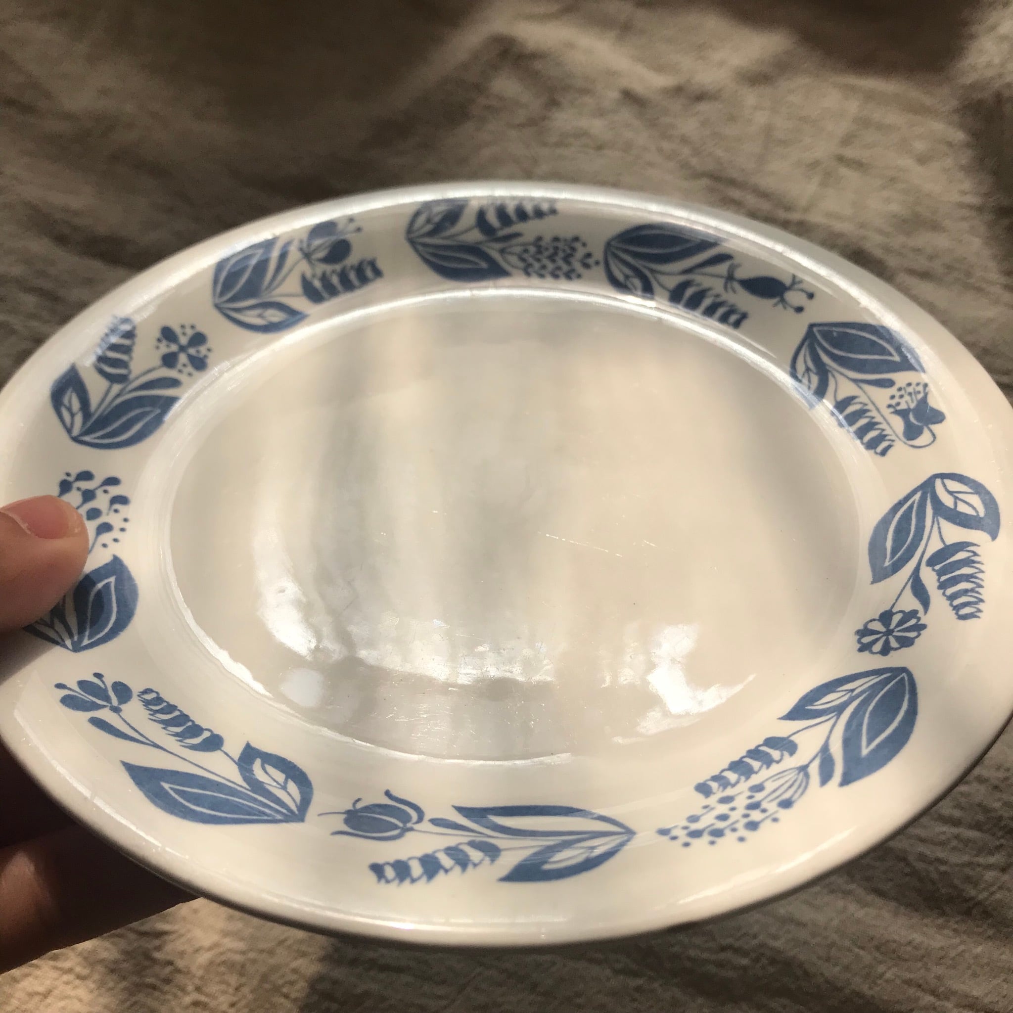 青一色で描かれた花模様はシンプルで、でもよく見ると凝っていて、どんなものにも合いそうな気がします。