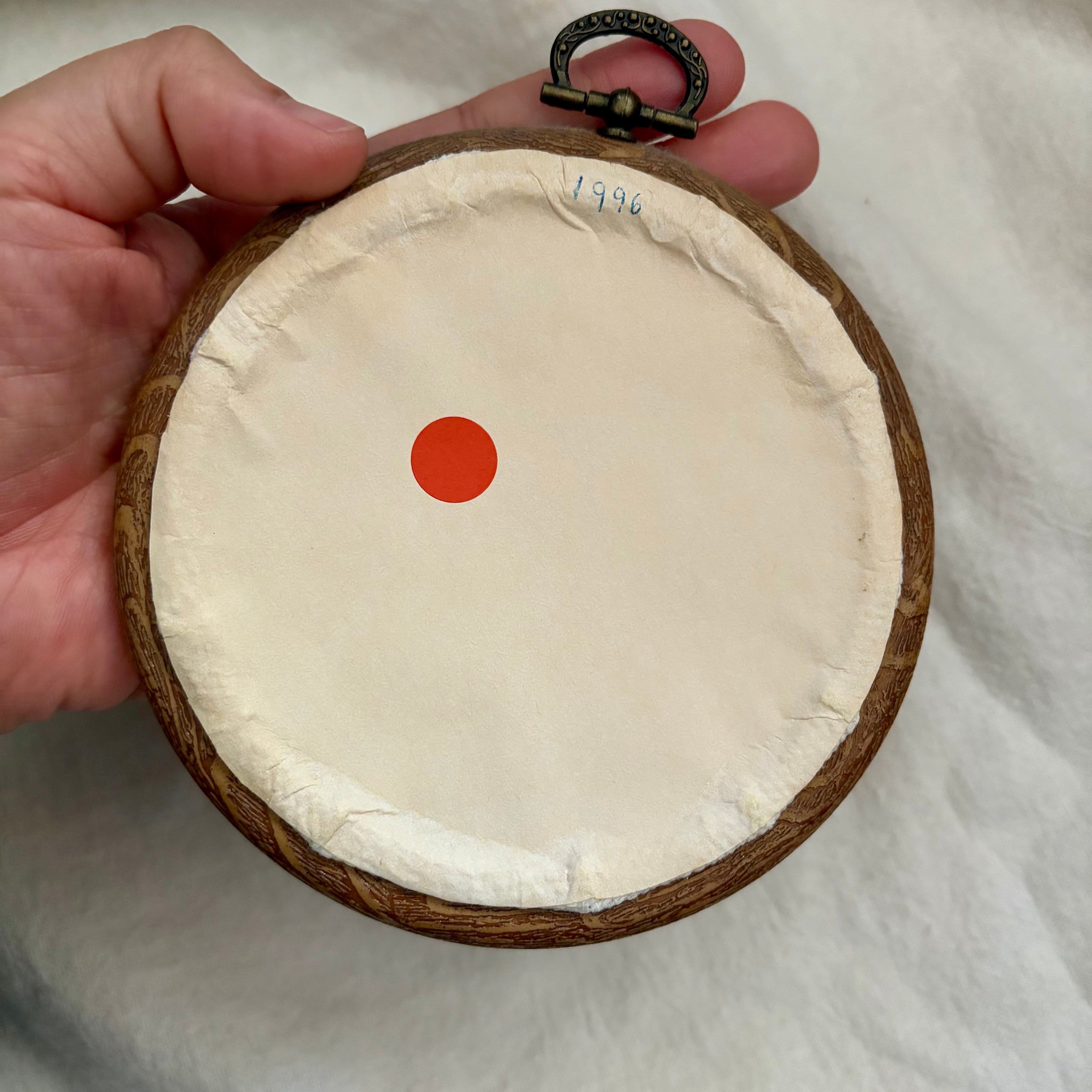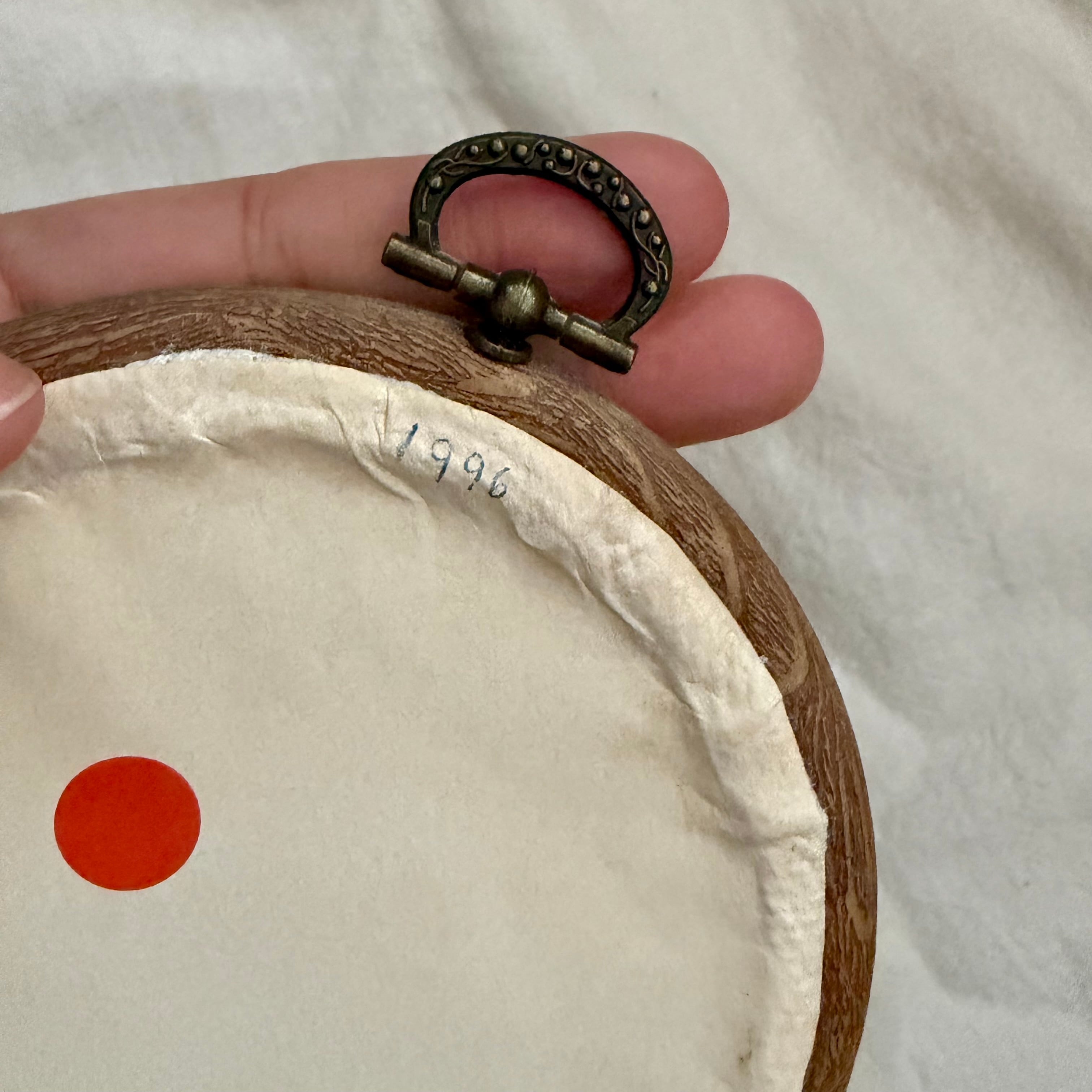 刺繍枠なのかな?フレームも雰囲気が合っていて、壁にちょこんと飾りたくなります。