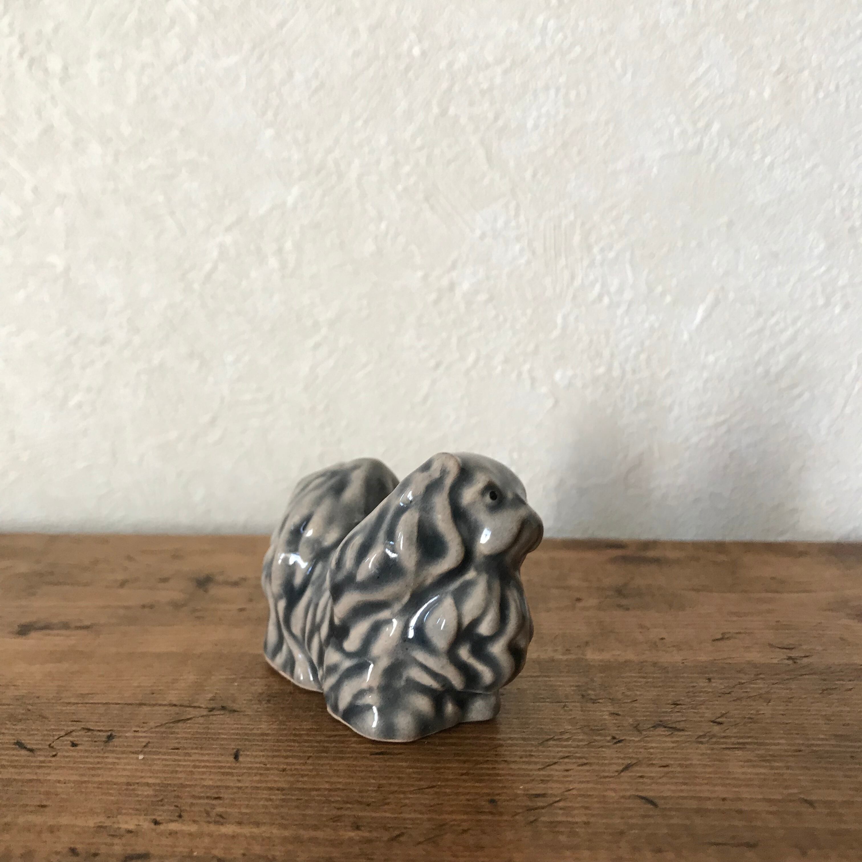 オランダで見つけたモフモフした毛が表現されたグレーの陶器の犬です。
