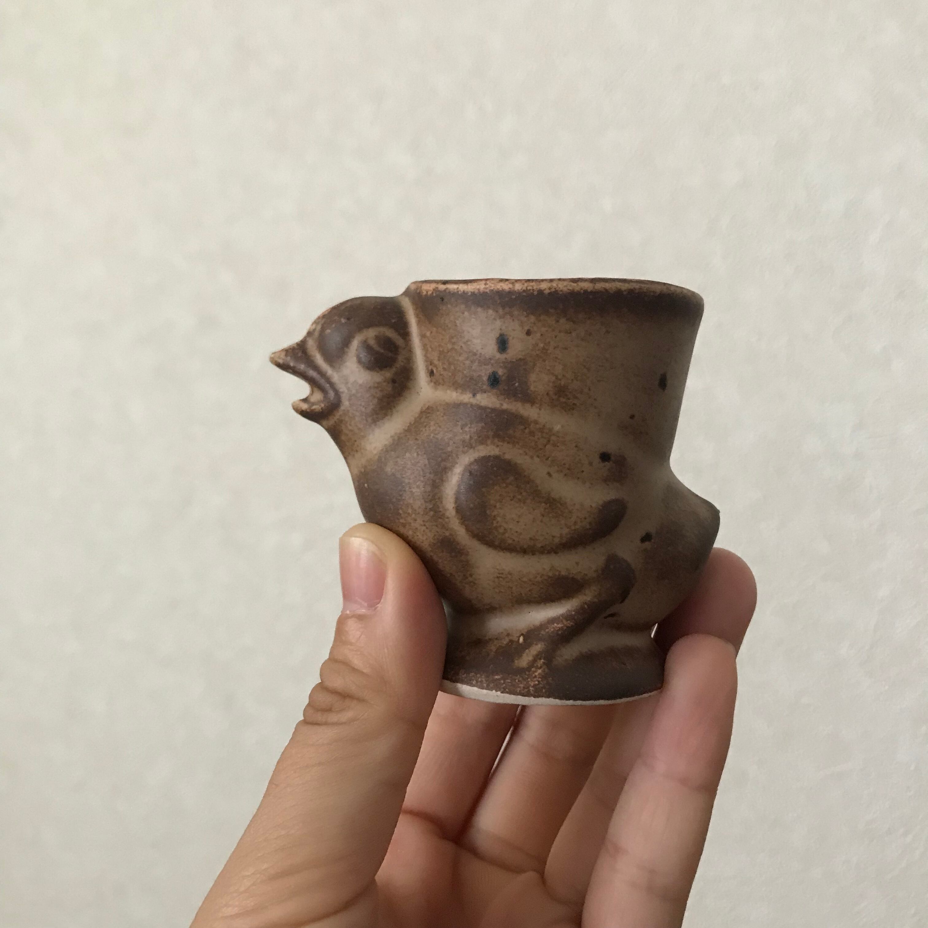 スウェーデンで見つけたマットな茶色の鳥のエッグスタンドです。