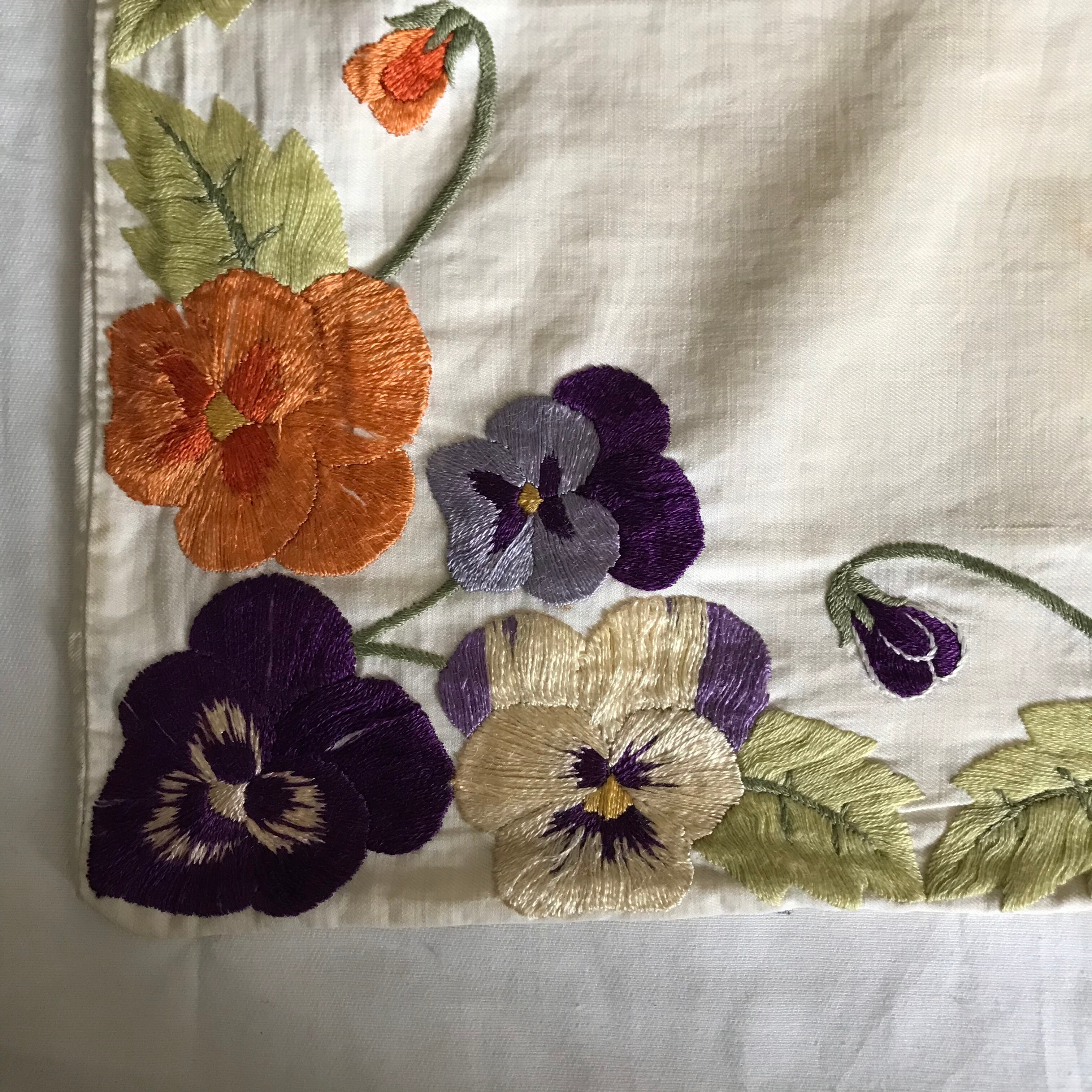 スウェーデンで見つけたパンジーがたくさん刺繍された大きめの封筒状のいれものです。