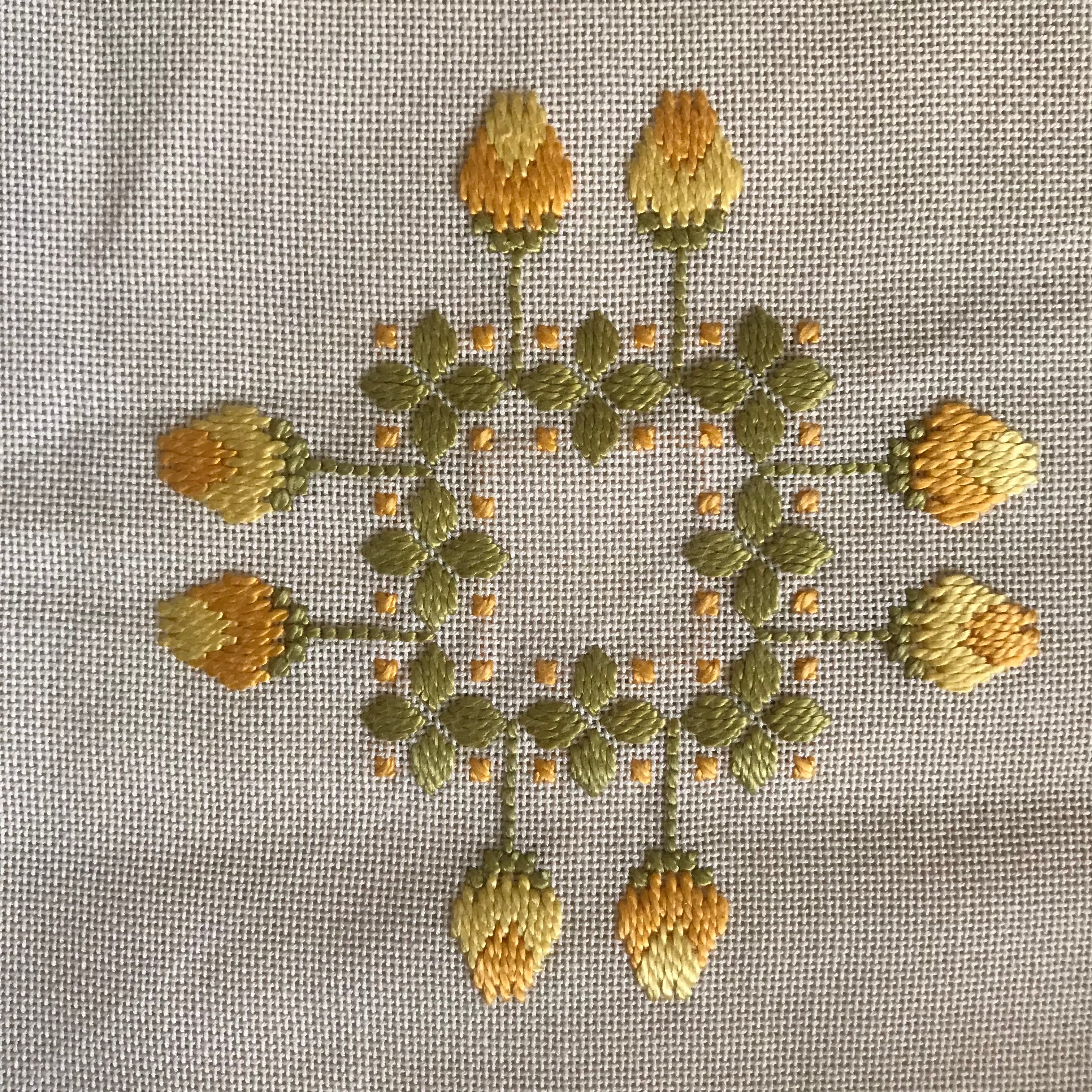スウェーデンで見つけた黄色い花が刺繍された小さな布です。