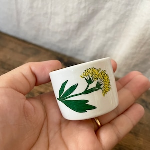 スウェーデンで見つけた黄色の花が描かれたエッグカップです。