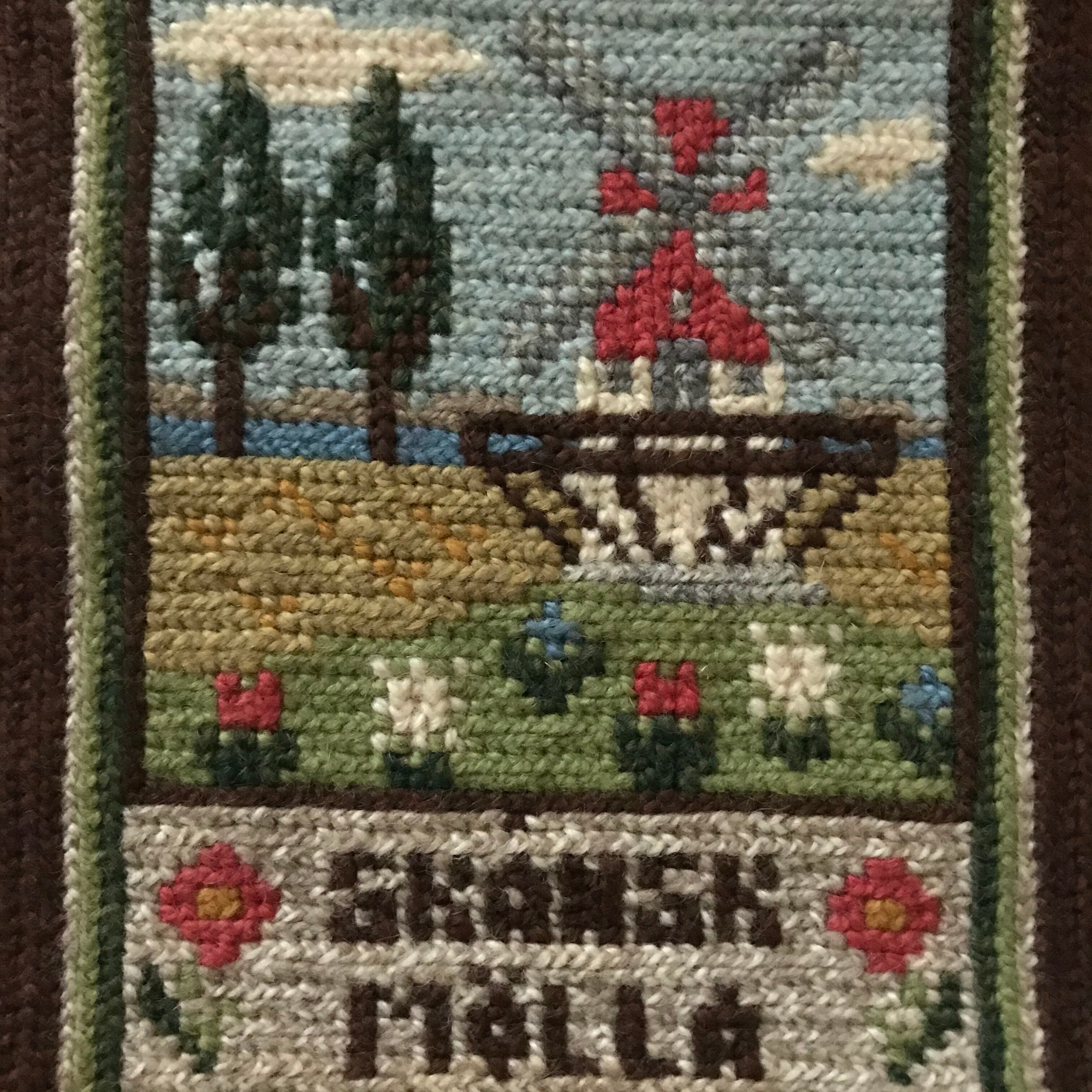 スウェーデンで見つけた風車のある風景の描かれた編み絵です。