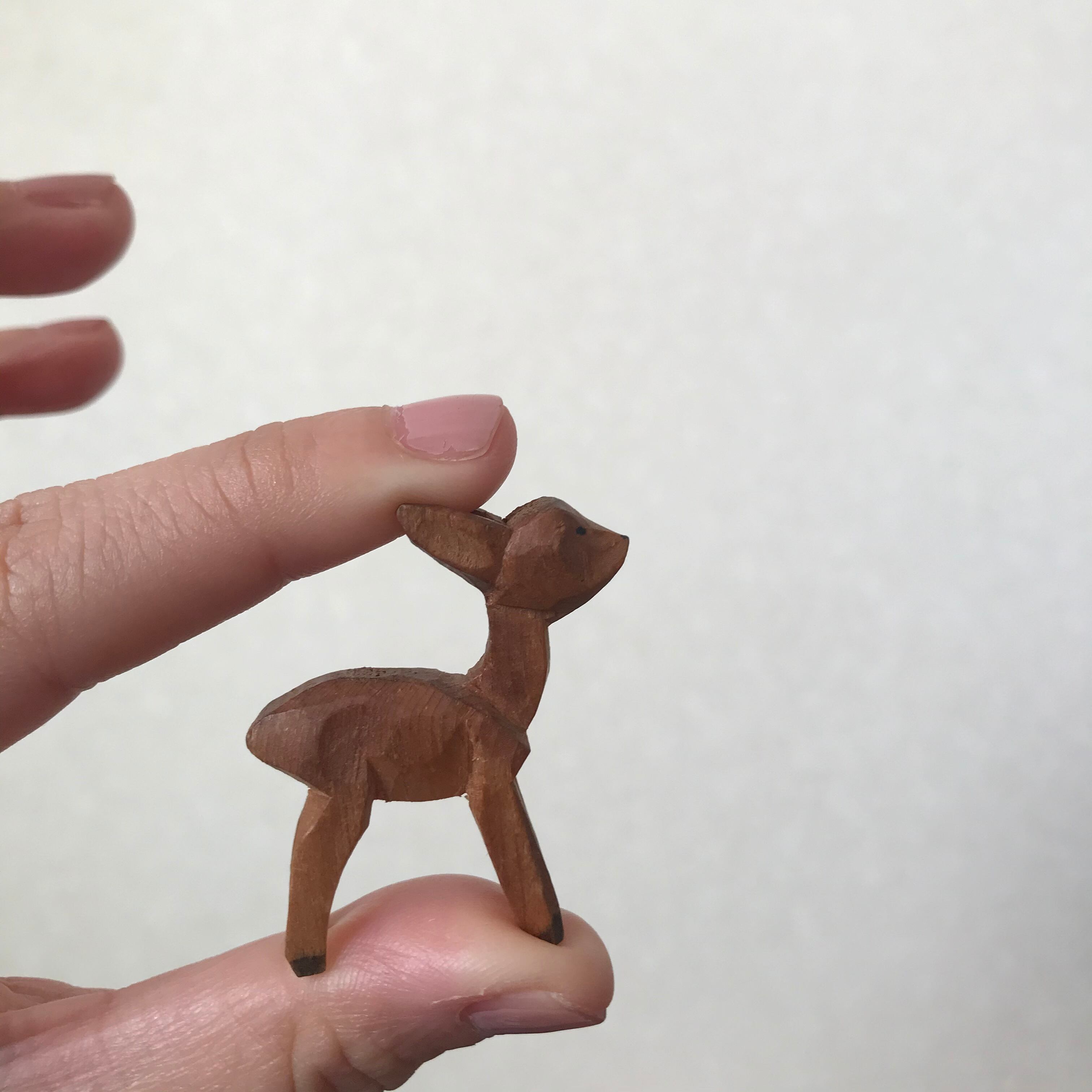 木彫りの小鹿はシンプルで彫りのラインも少なく、全体的に優しい雰囲気を醸し出しています。