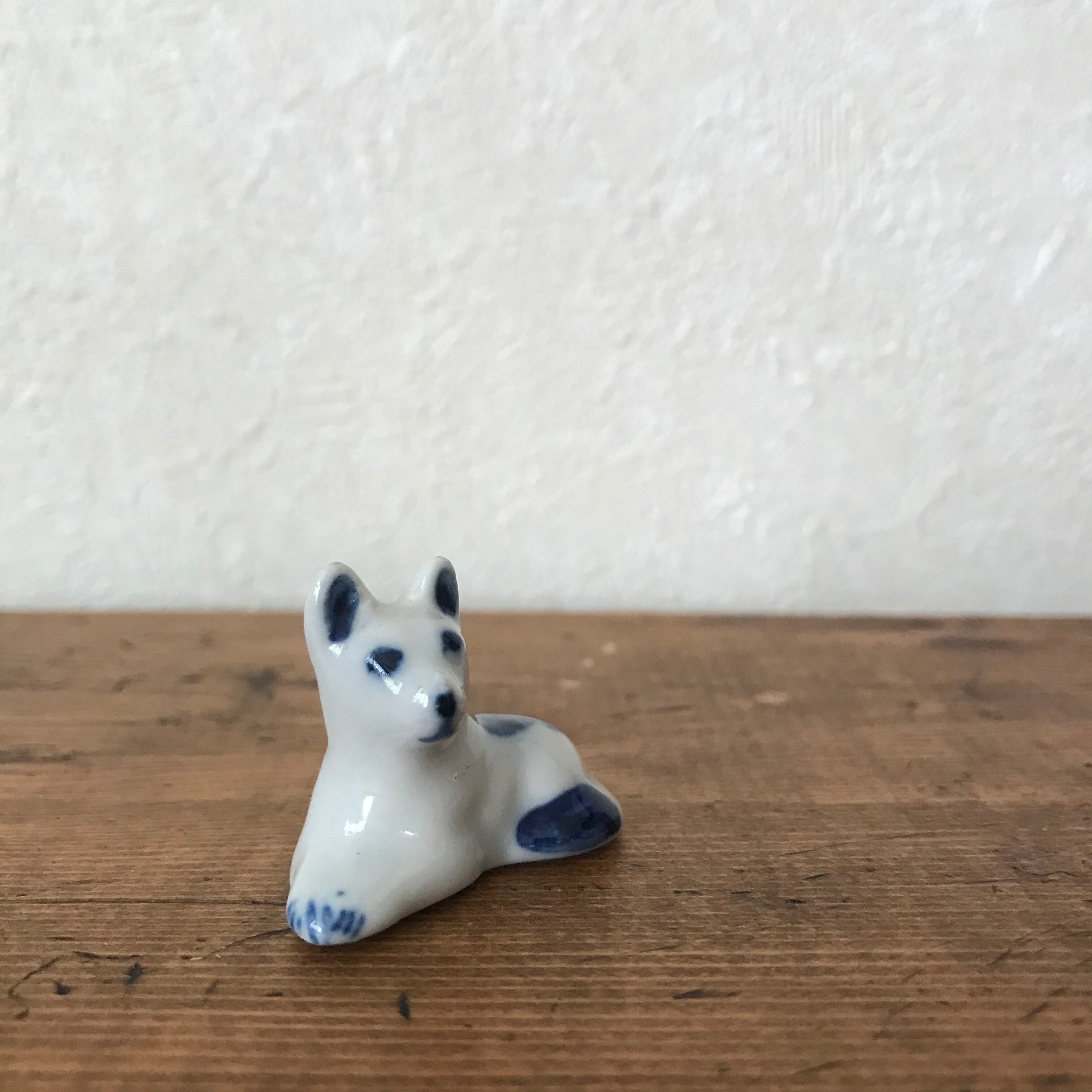オランダらしいデルフトブルーが鮮やかな犬は、ちょこんと伏せた佇まいが可愛いです。