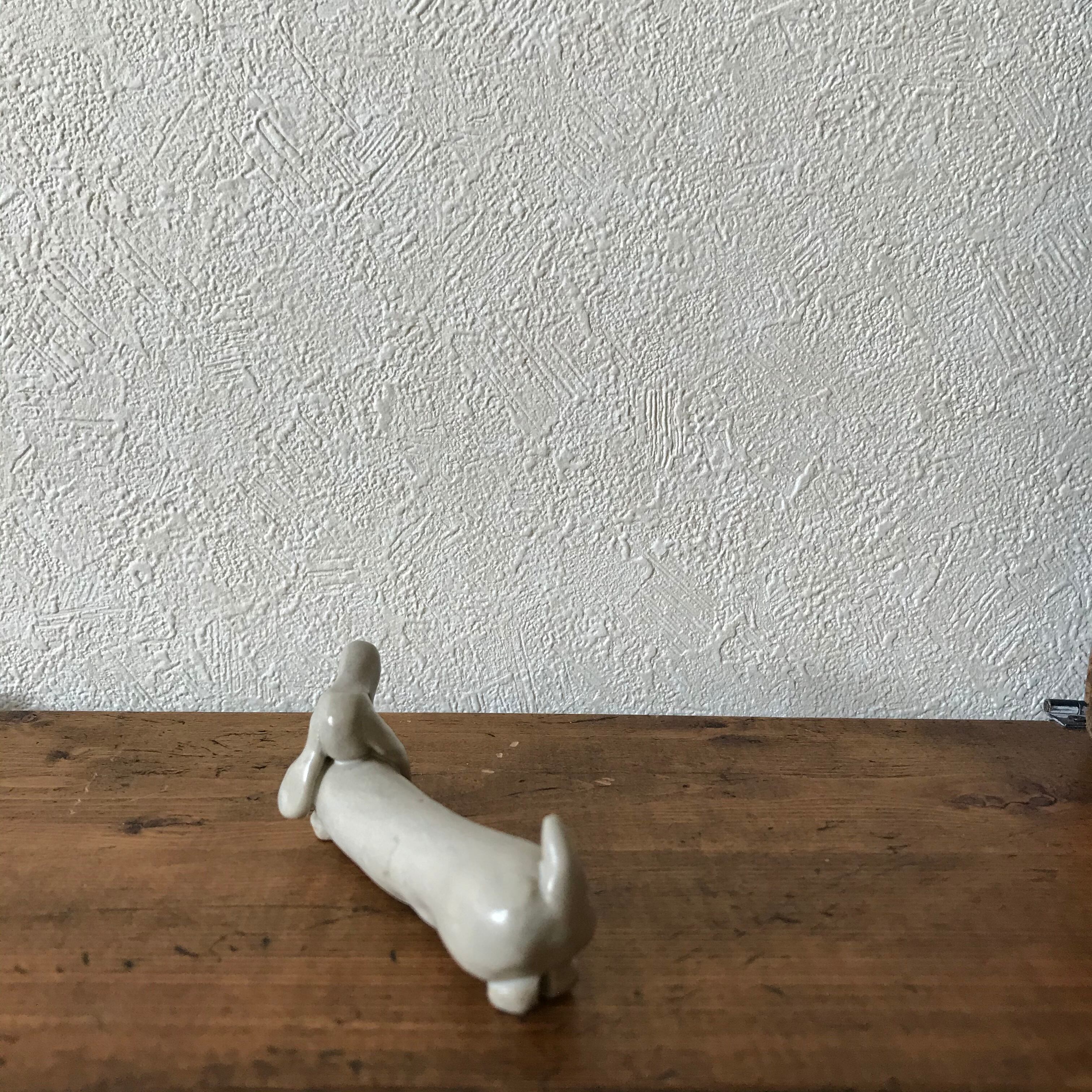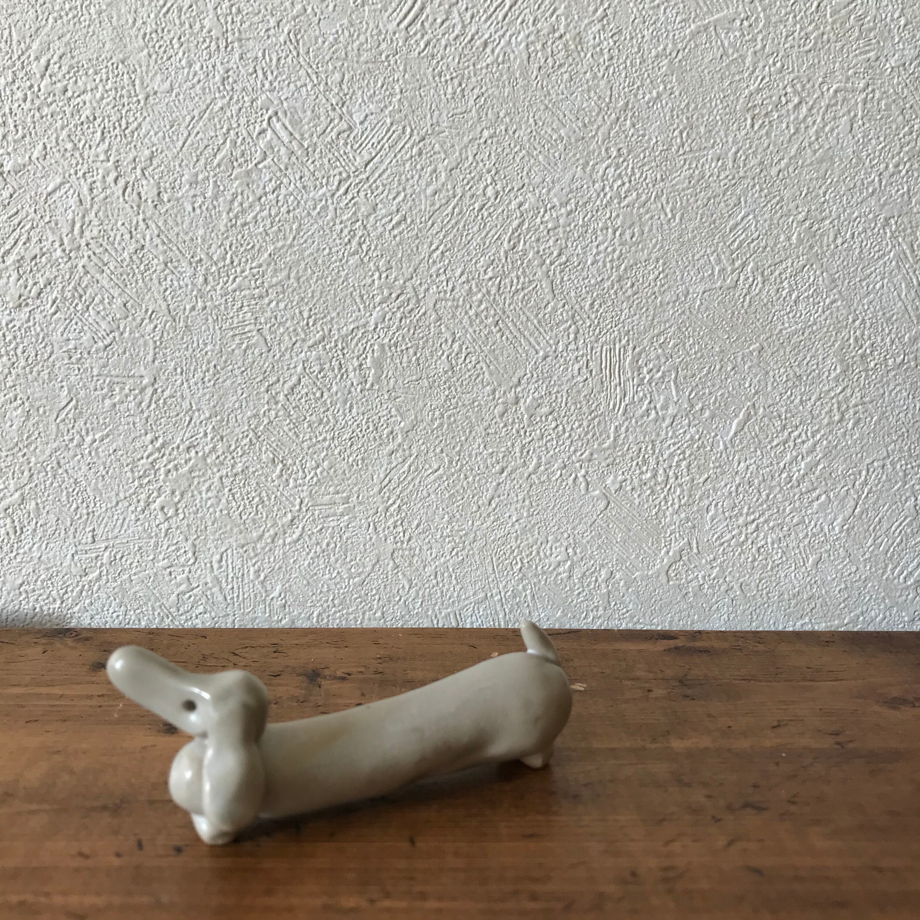 スウェーデンで見つけた陶器製の白くて長い犬です。