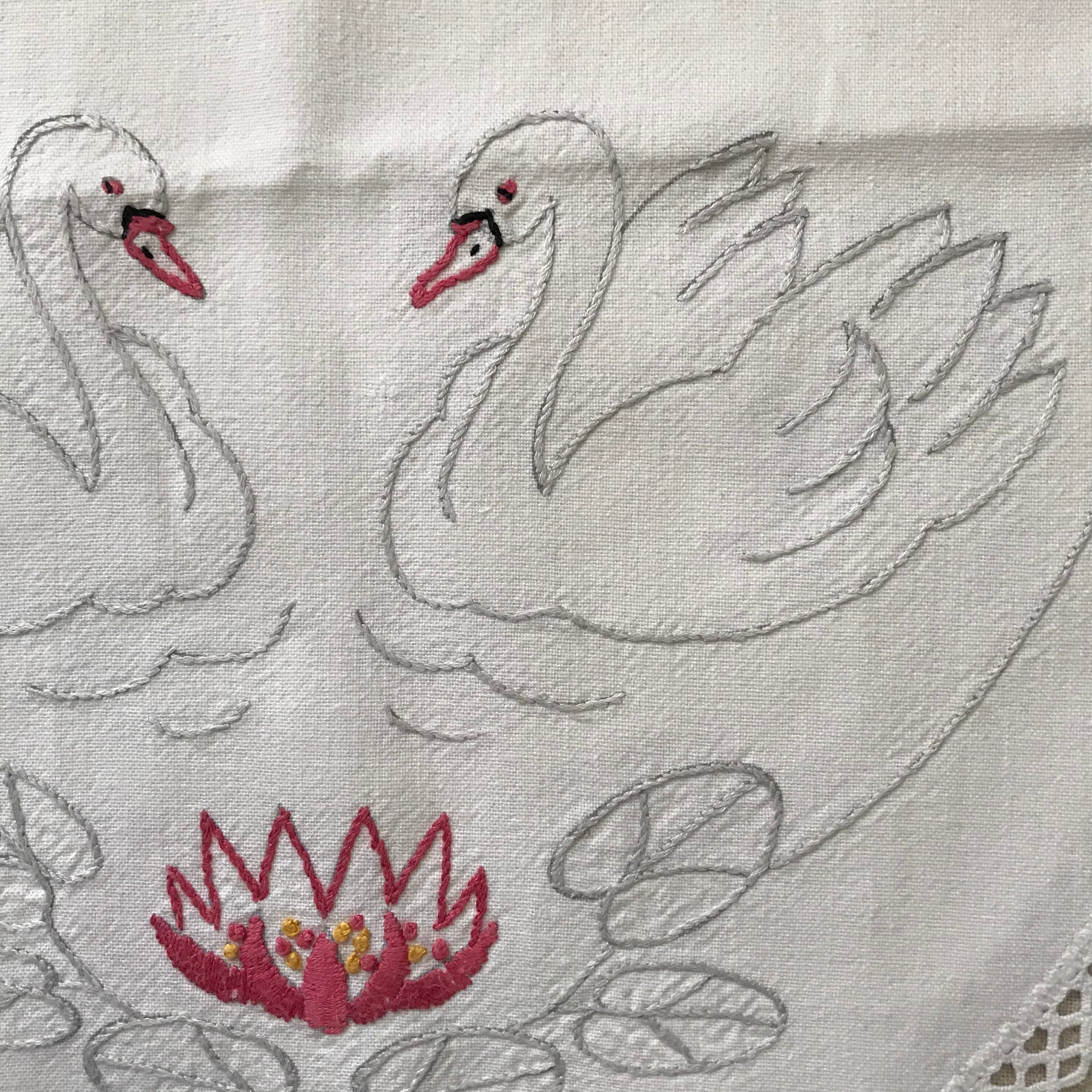 白地にグレーで刺繍されたスワンは可愛過ぎない少しシュール具合がいいです。