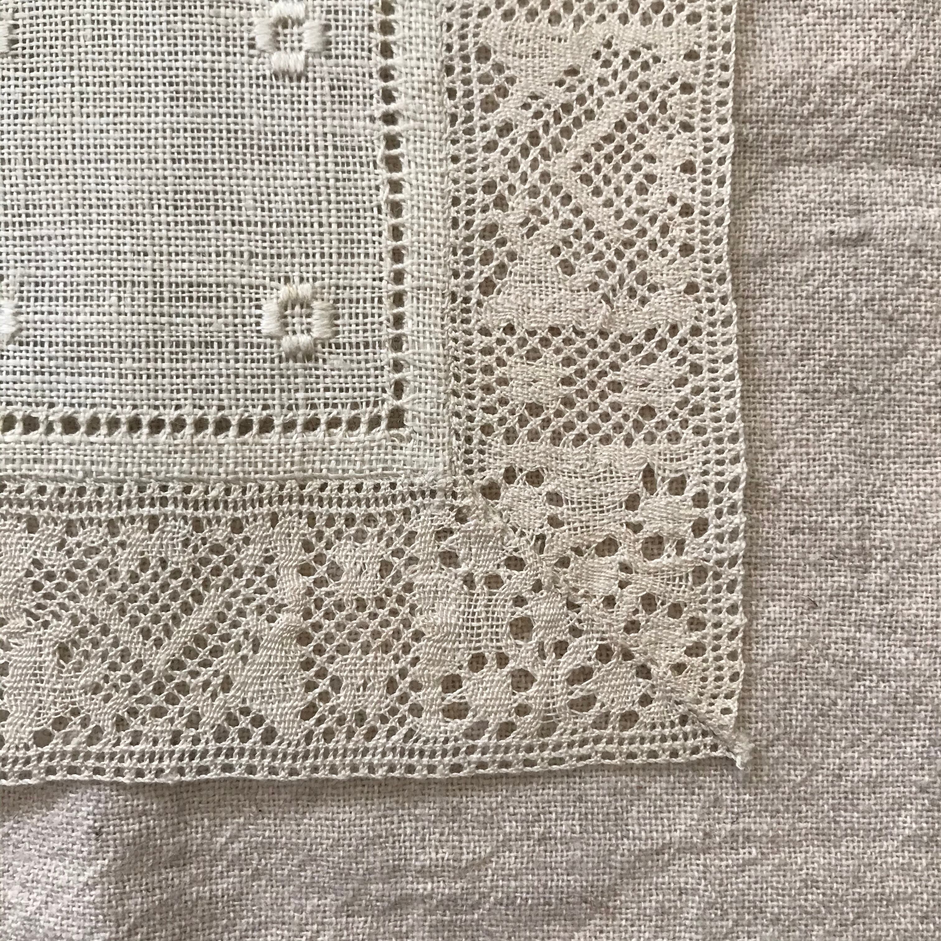 スウェーデンで見つけたフチに繊細なレースがほどこされた布です。
