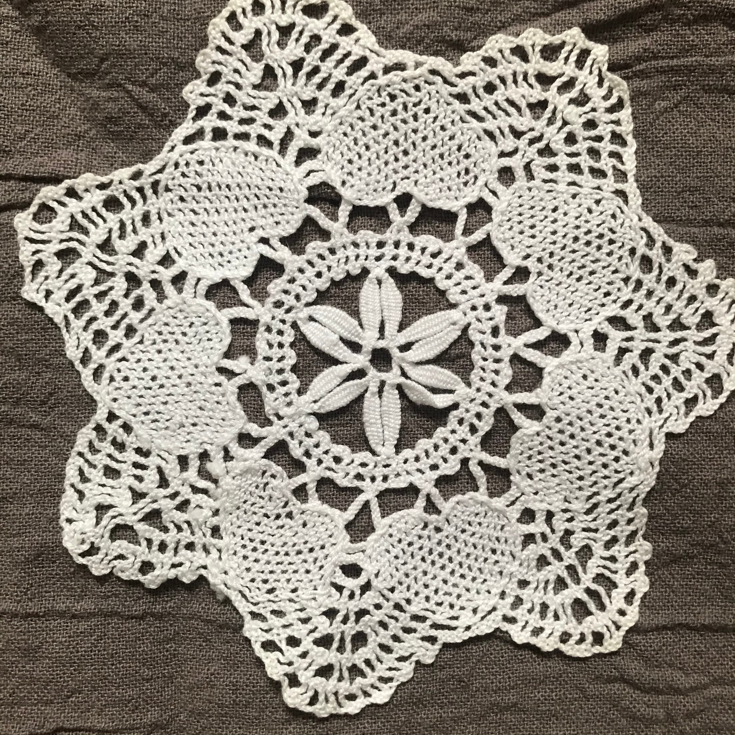 白い糸で編まれていて、よく見るとハートの模様がみえます。