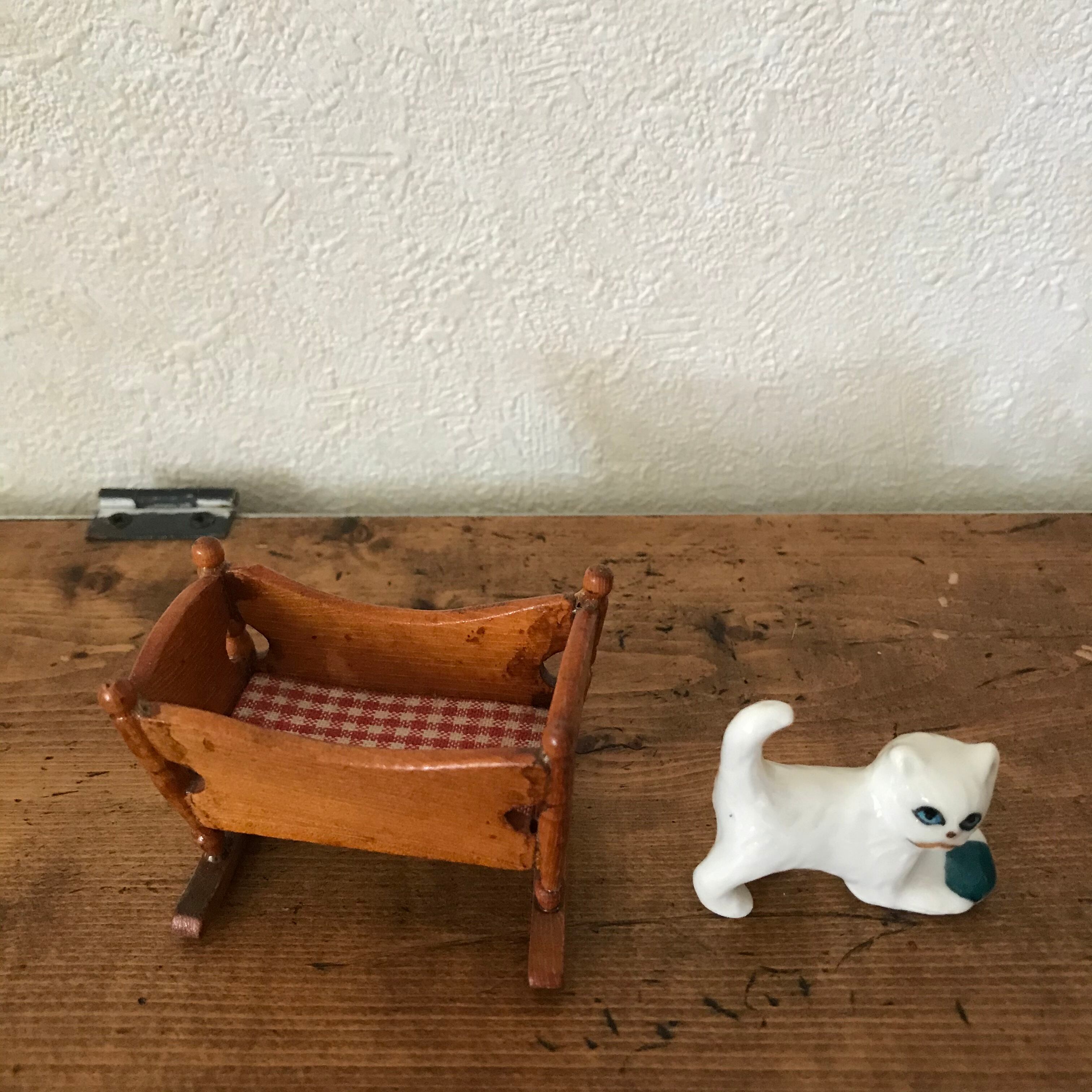 可愛らしいゆりかごにキリッとしたネコが案外合います。