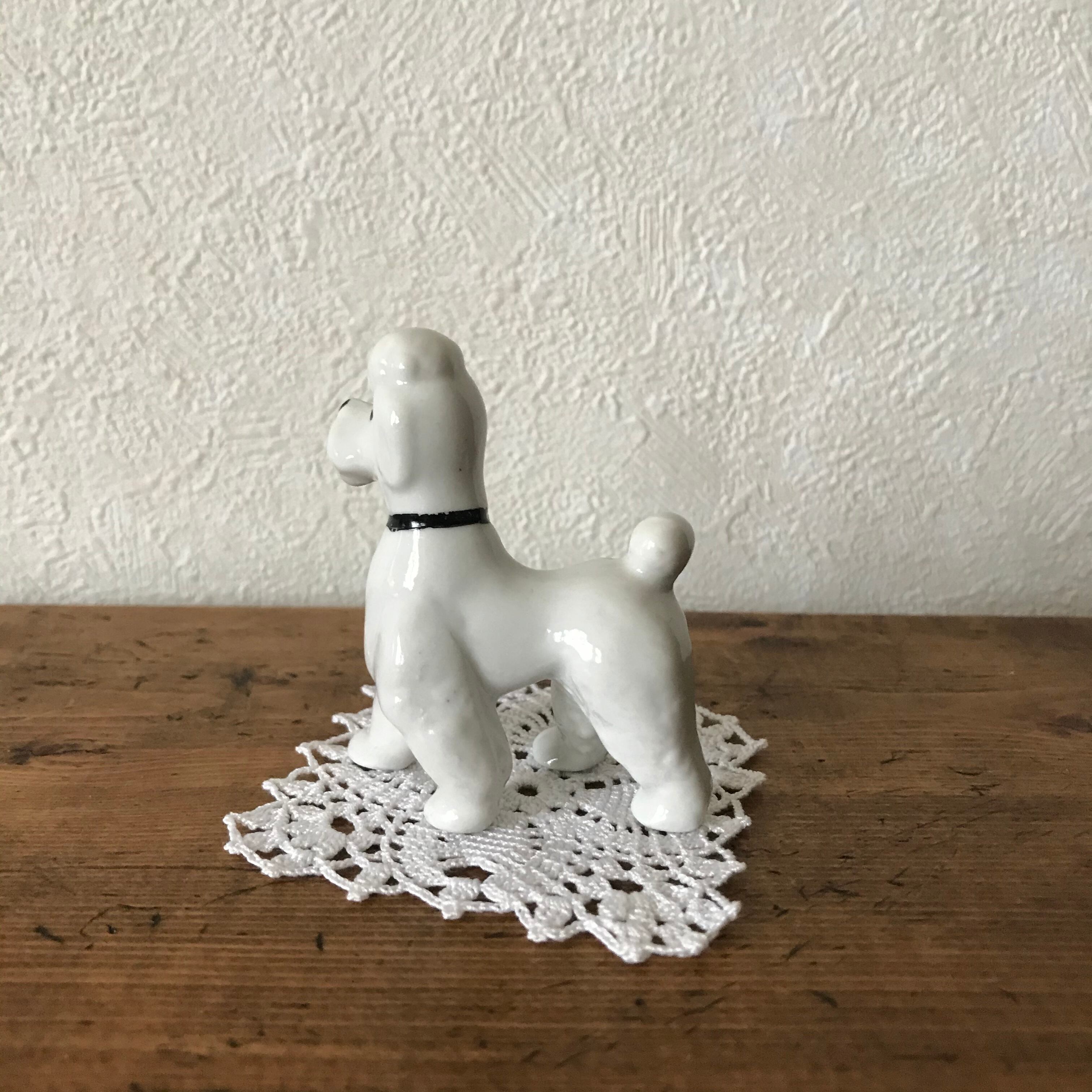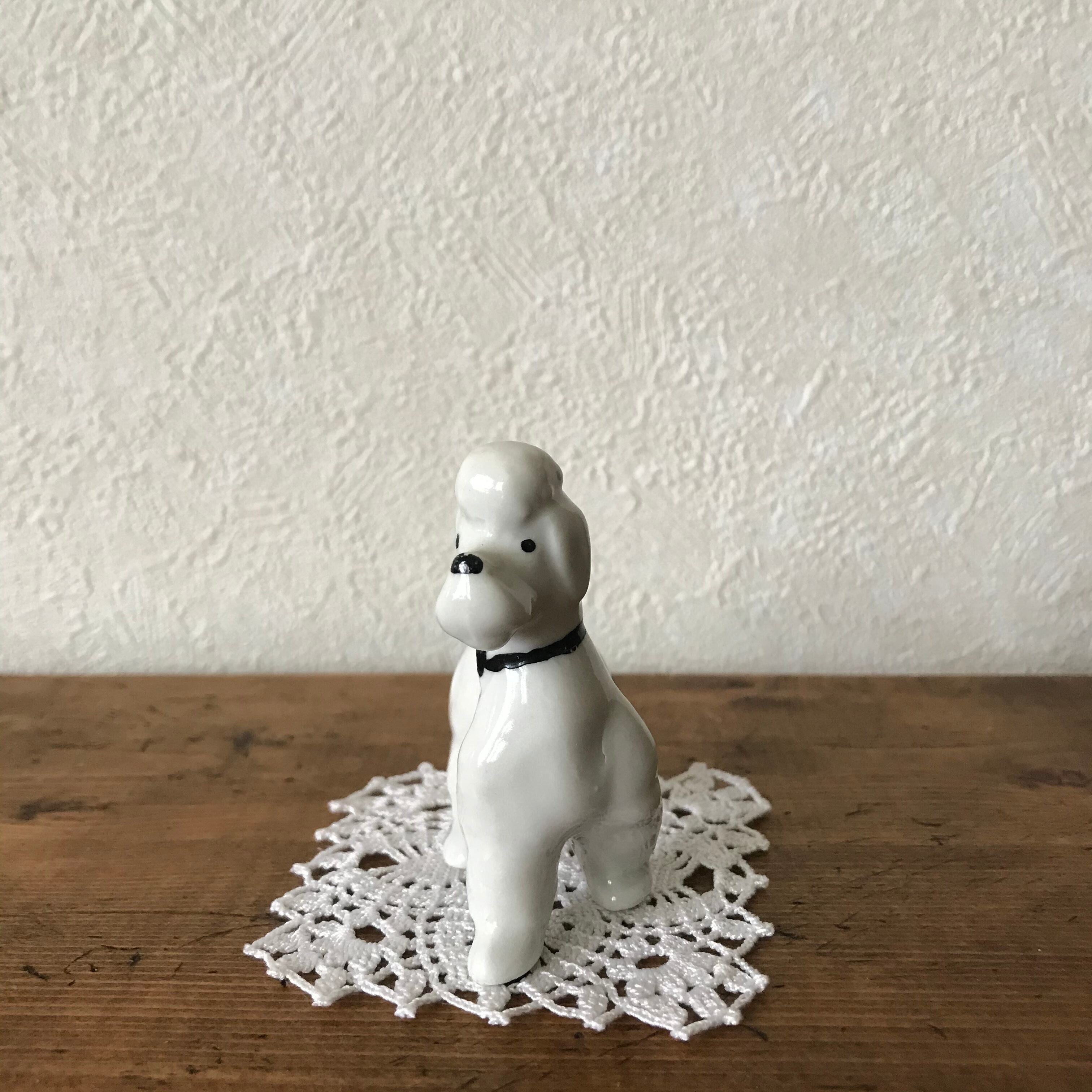 柔らかい小さなドイリーに陶器の白い犬は素材の違いもあり、同じ白だけどうまく共存していると思います。