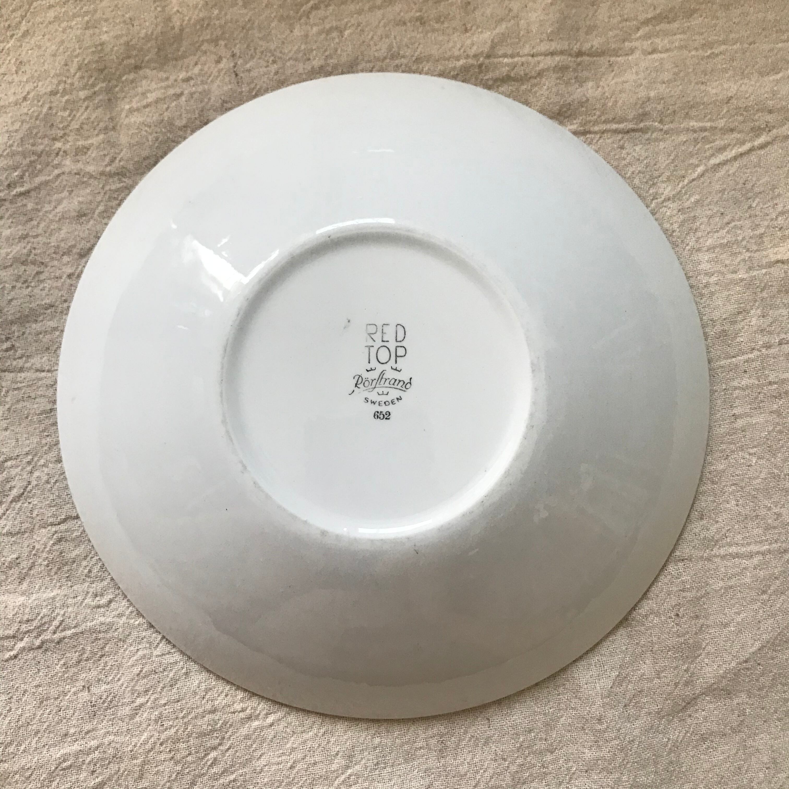 スウェーデンで見つけたロールストランド社の赤い線とダイヤ模様の深皿です。