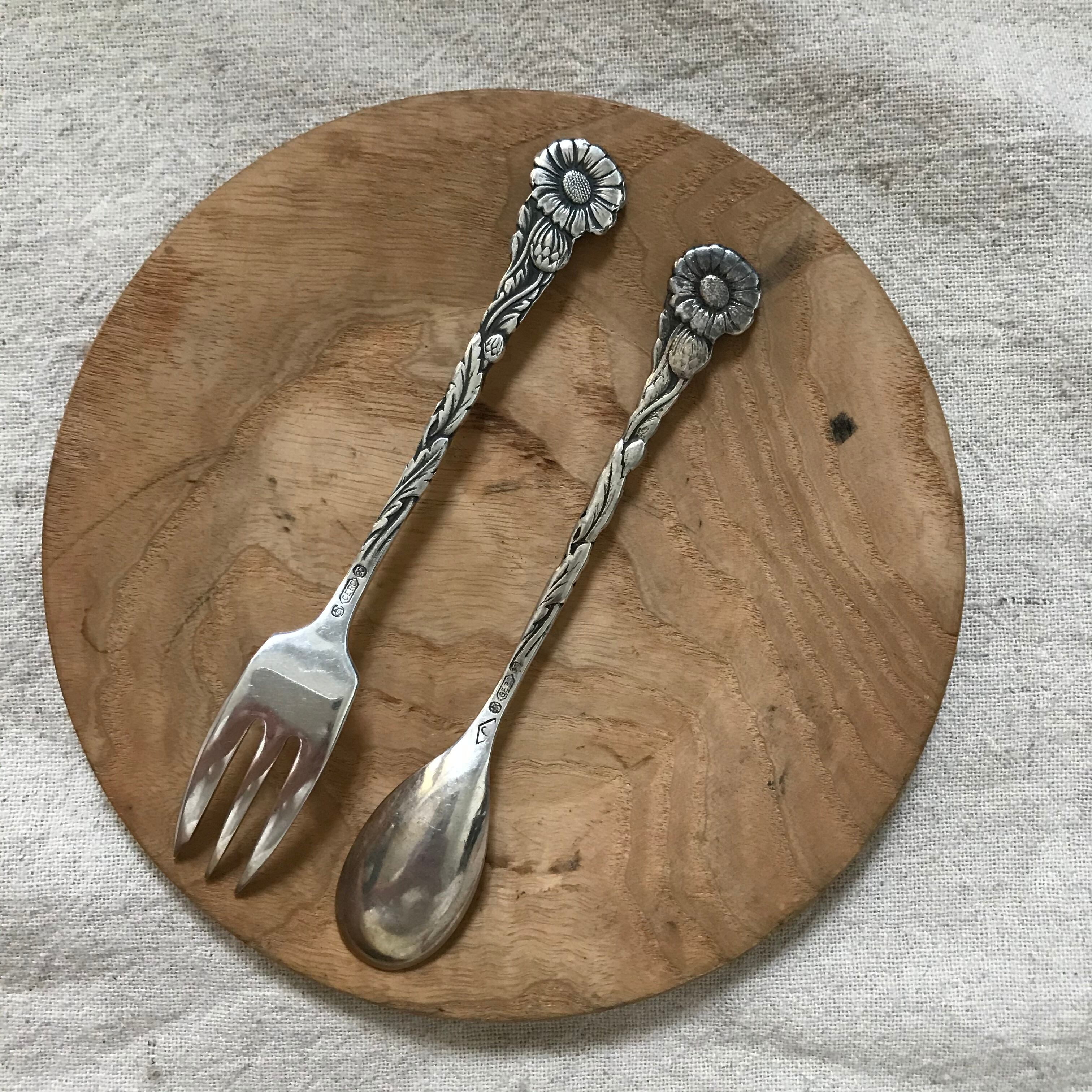 オランダの蚤の市で見つけた、シルバープレートのティースプーンとフォークのセットです。