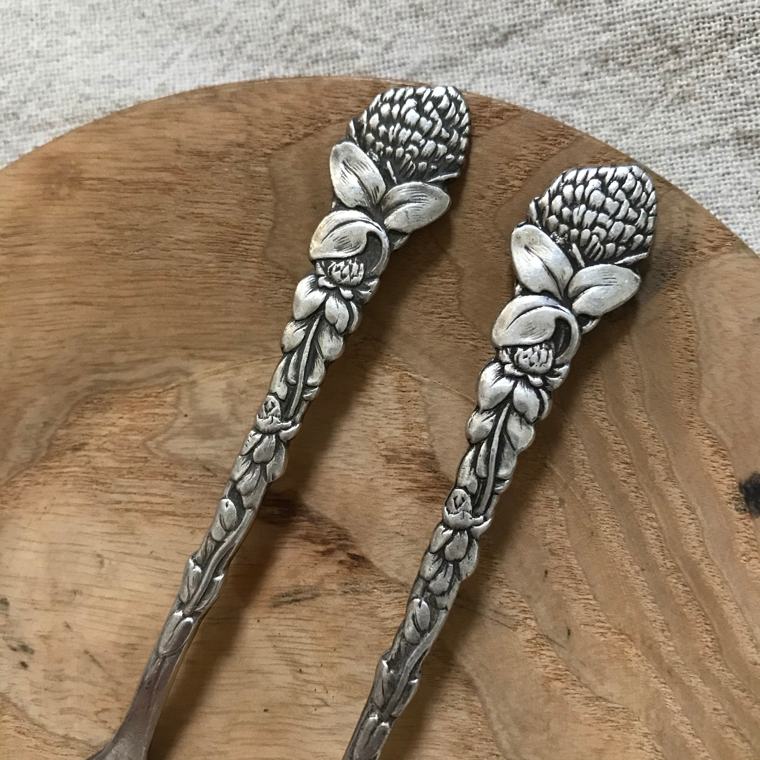 オランダの蚤の市で見つけた、シルバープレートのティースプーンとフォークのセットです。