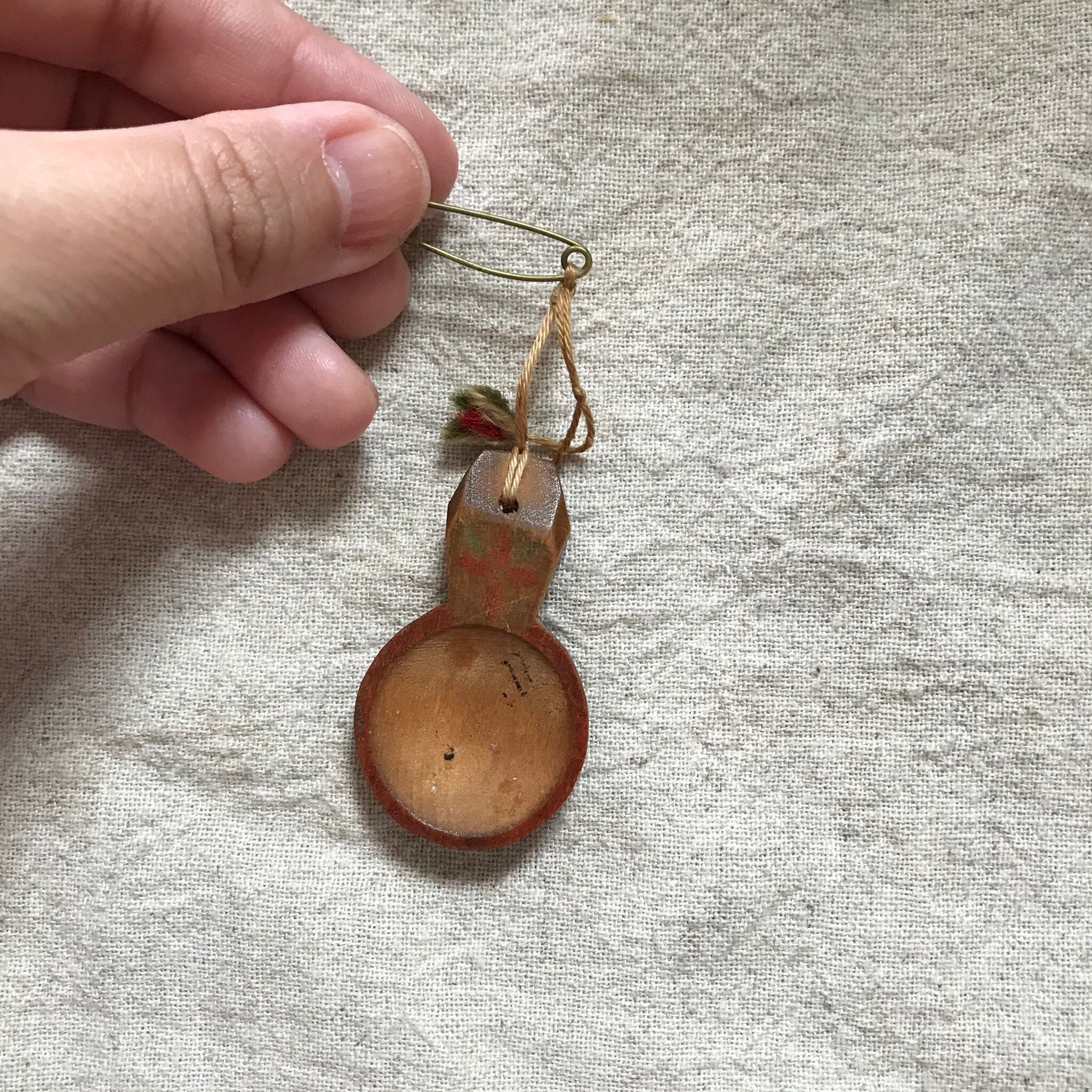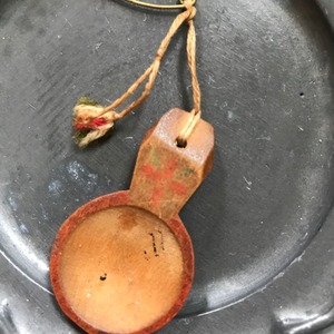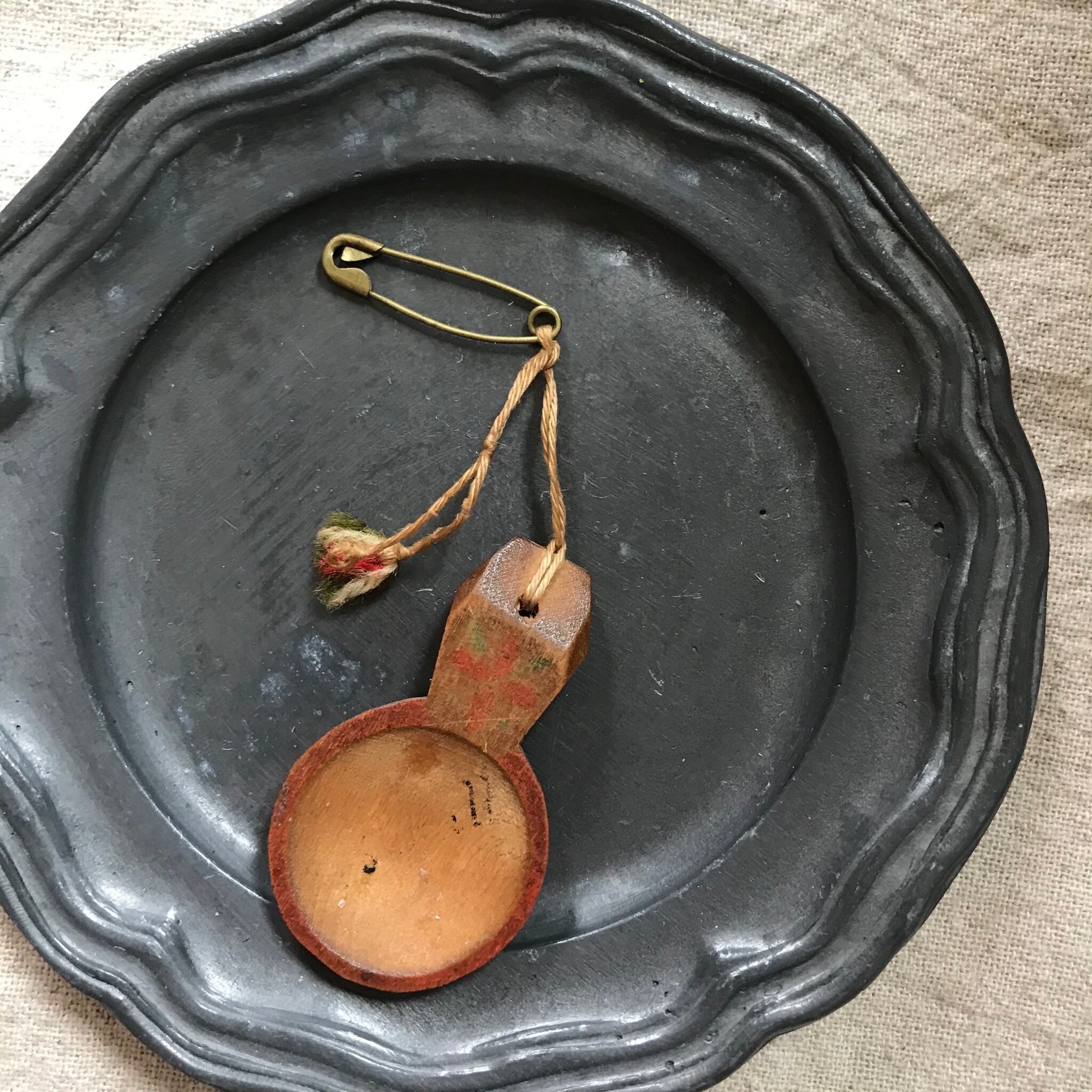 小さな木彫りのサジのようなクサクのようなブローチです。