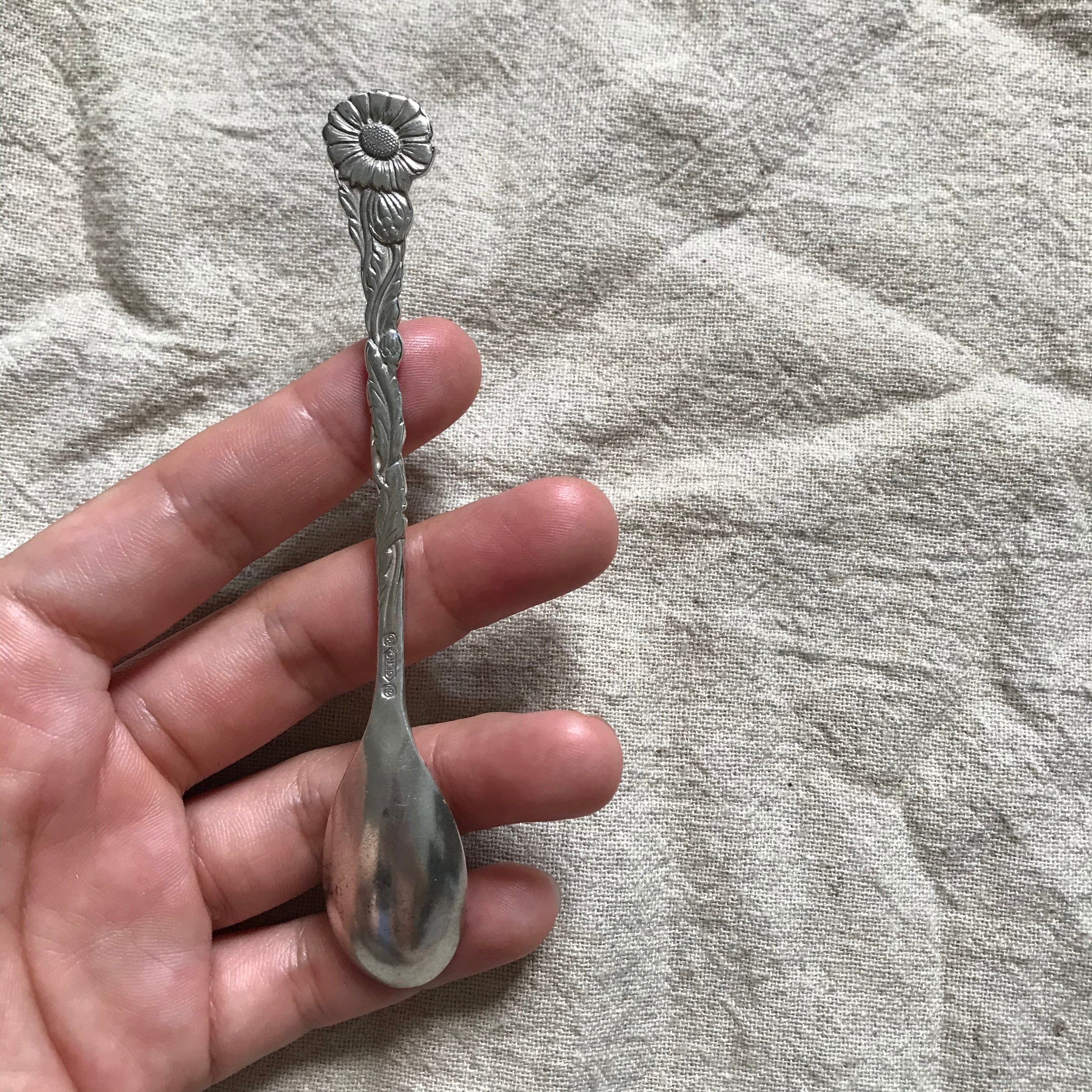 ブローチのクリーム色の部分は貝かな、優しく輝いています。