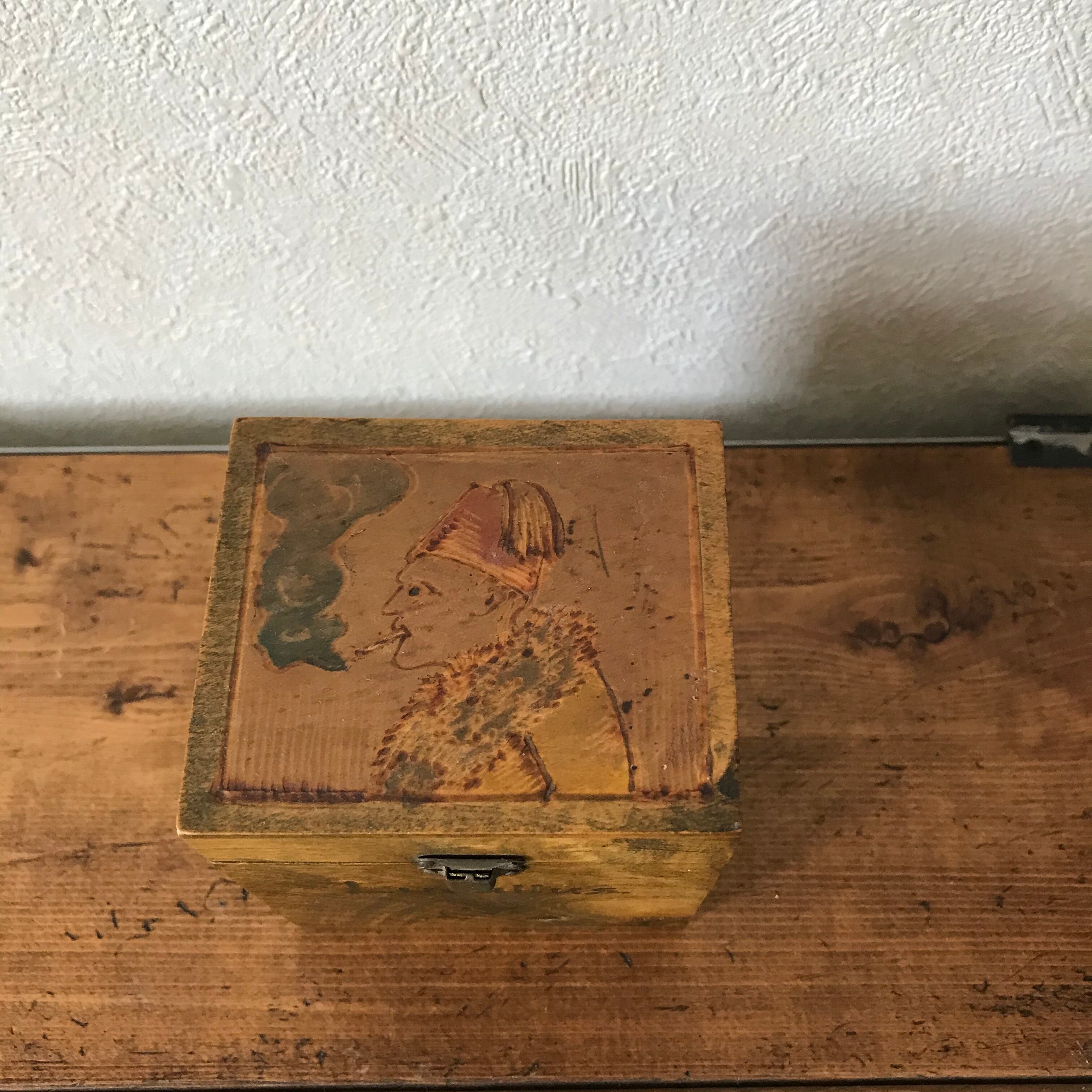 スウェーデンで見つけたタバコをふかしたおじさんが描かれた木箱です。