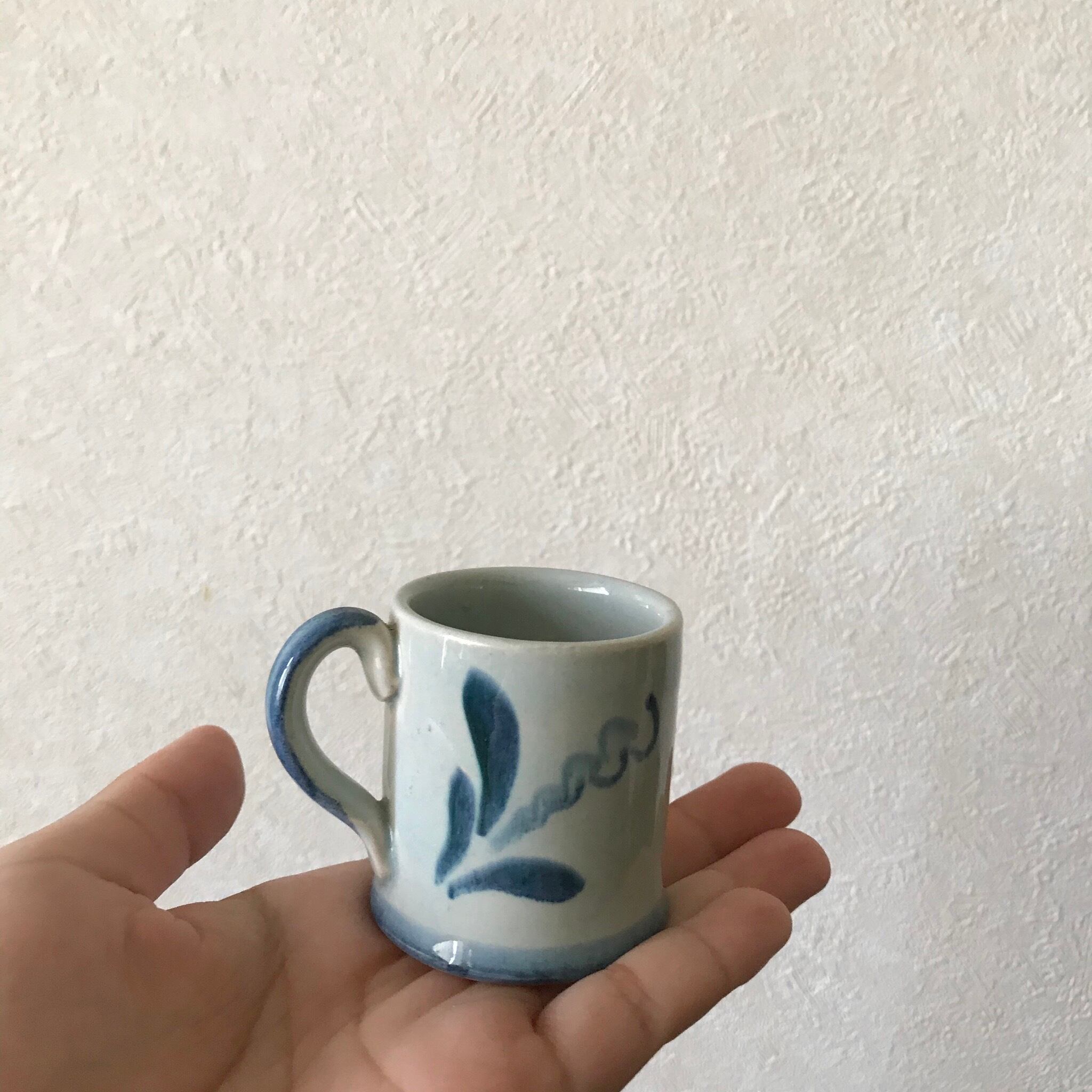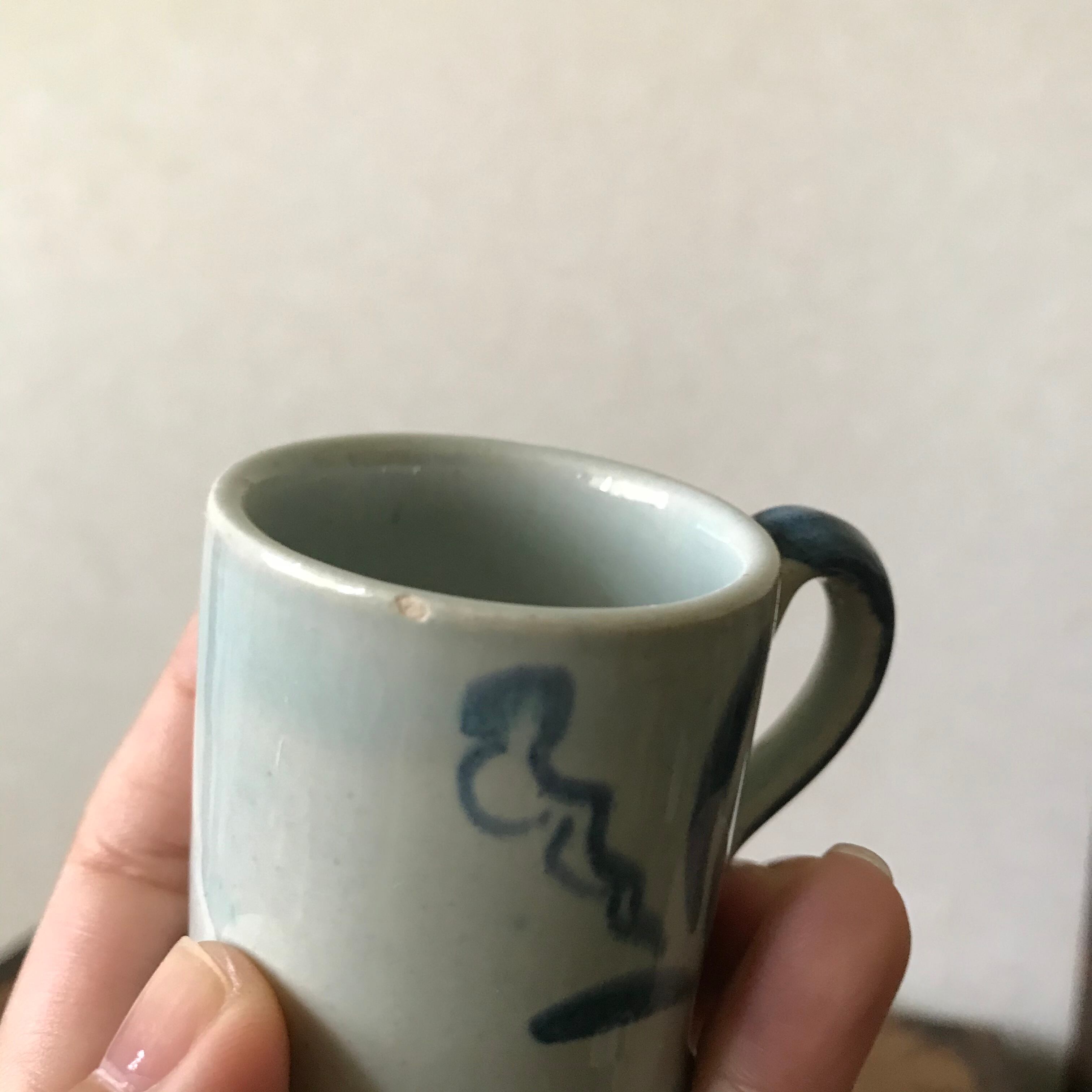 淡い水色に青い色でゆるい不思議な絵が描かれています。