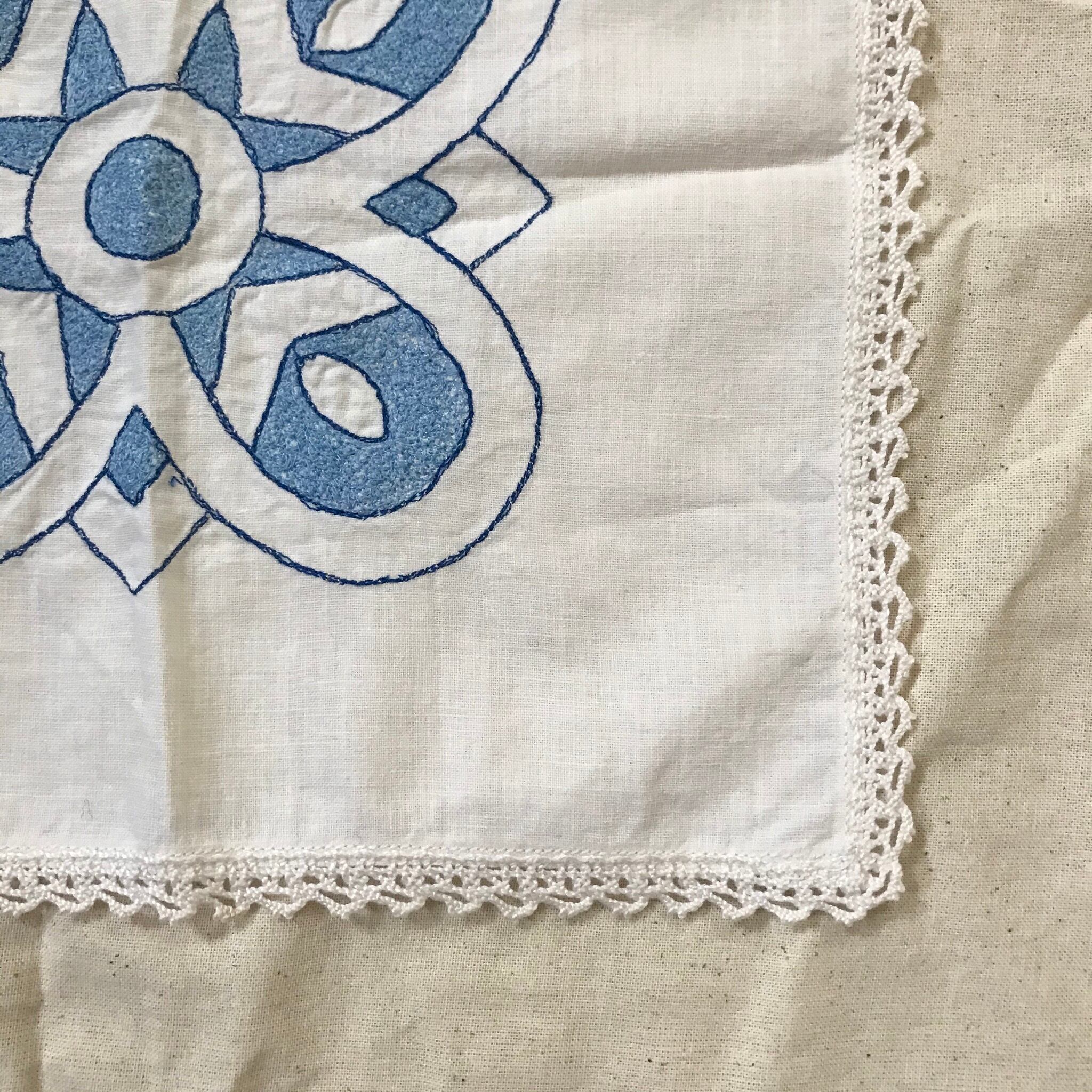 フチにレース、真ん中に不思議なマークのようなものが刺繍されています。